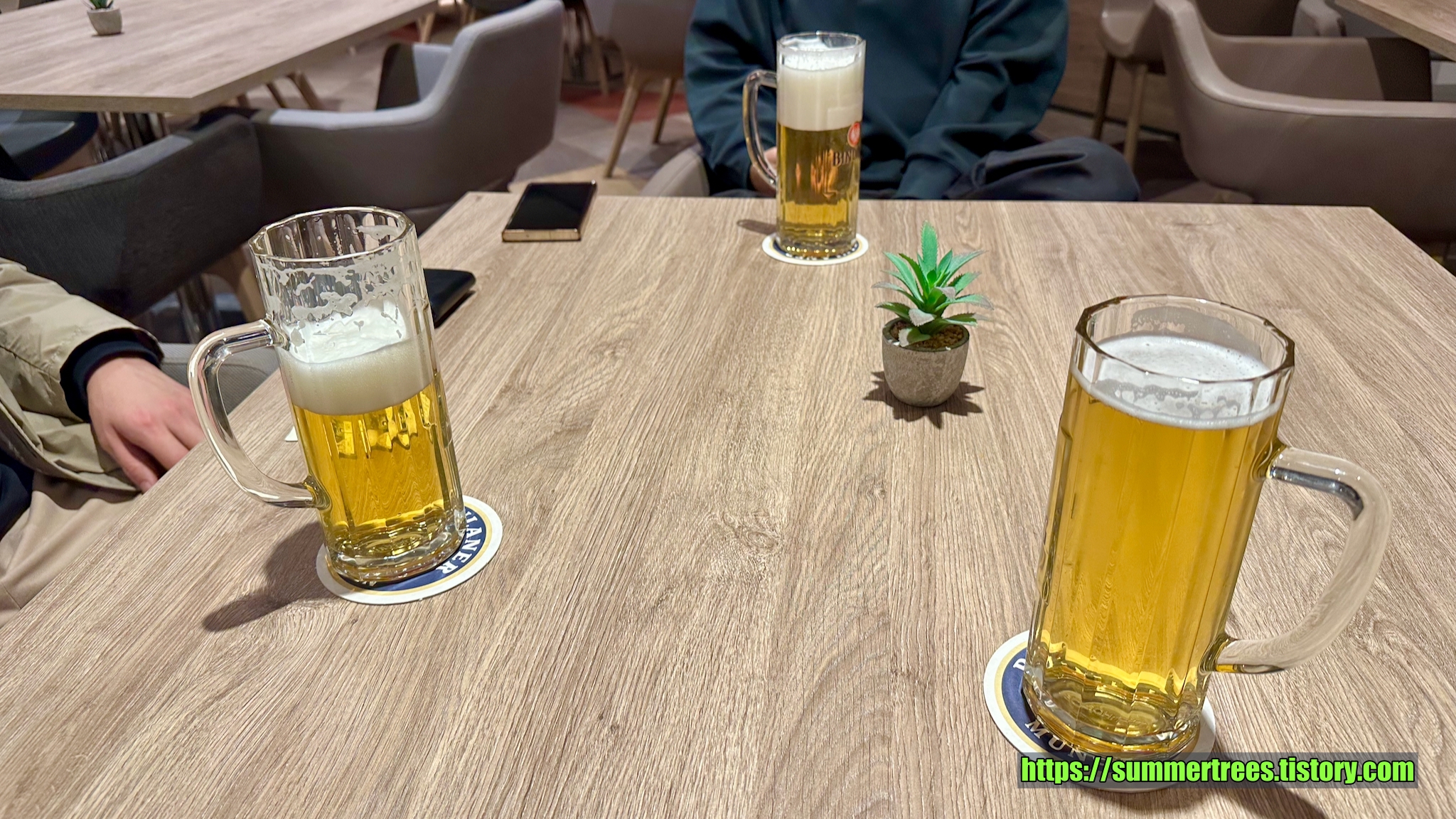 매일 방청소가 필요하냐고 묻는데, 필요없다고 하면 맥주 300 ml를 마실 수 있는 쿠폰을 준다. 쿠폰을 사용하니 300 ml 가 아니라 잔에 가득 채워주는데, 거품 때문에 사람마다 용량을 다르게 준다. 어떤 사람은 가득, 어떤 사람은 거품이 반. 그래도 공식적으로 300 ml라고 되어 있어서 항의를 못했다.