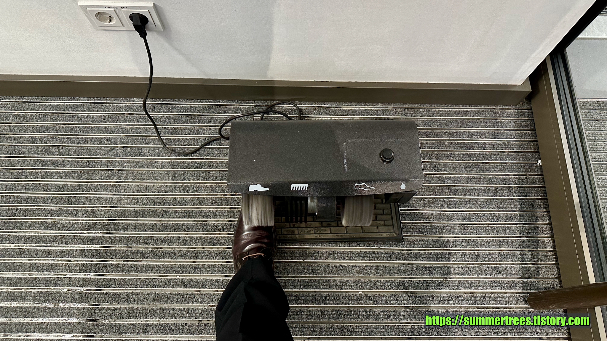 입구에는 구두를 닦는 신기한 기계가 계속 돌고 있다.