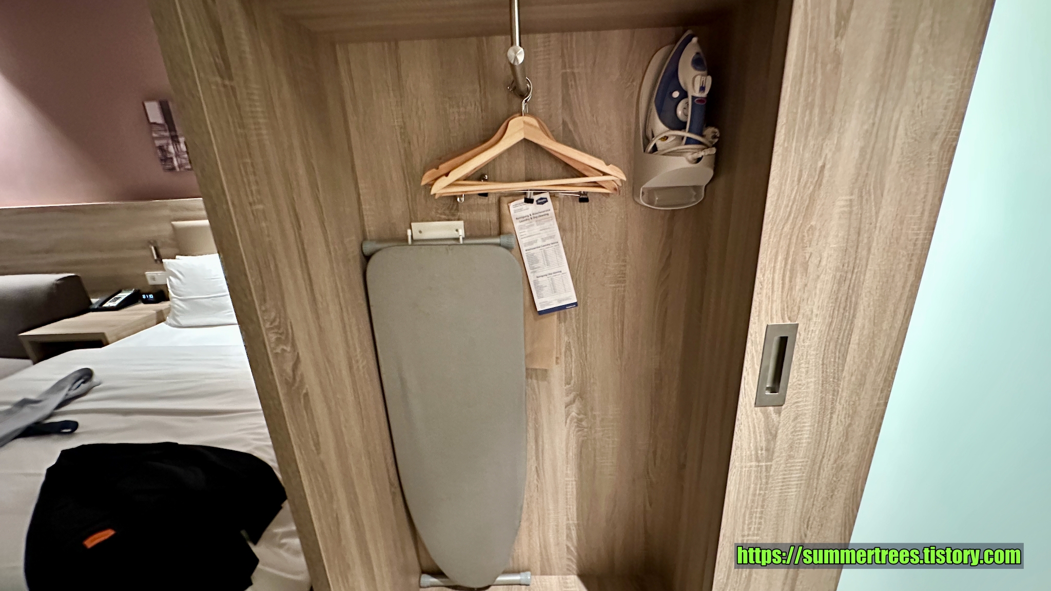 방에 다리미가 기본적으로 구비되어 있어서 따로 달라고 부탁할 필요가 없다.