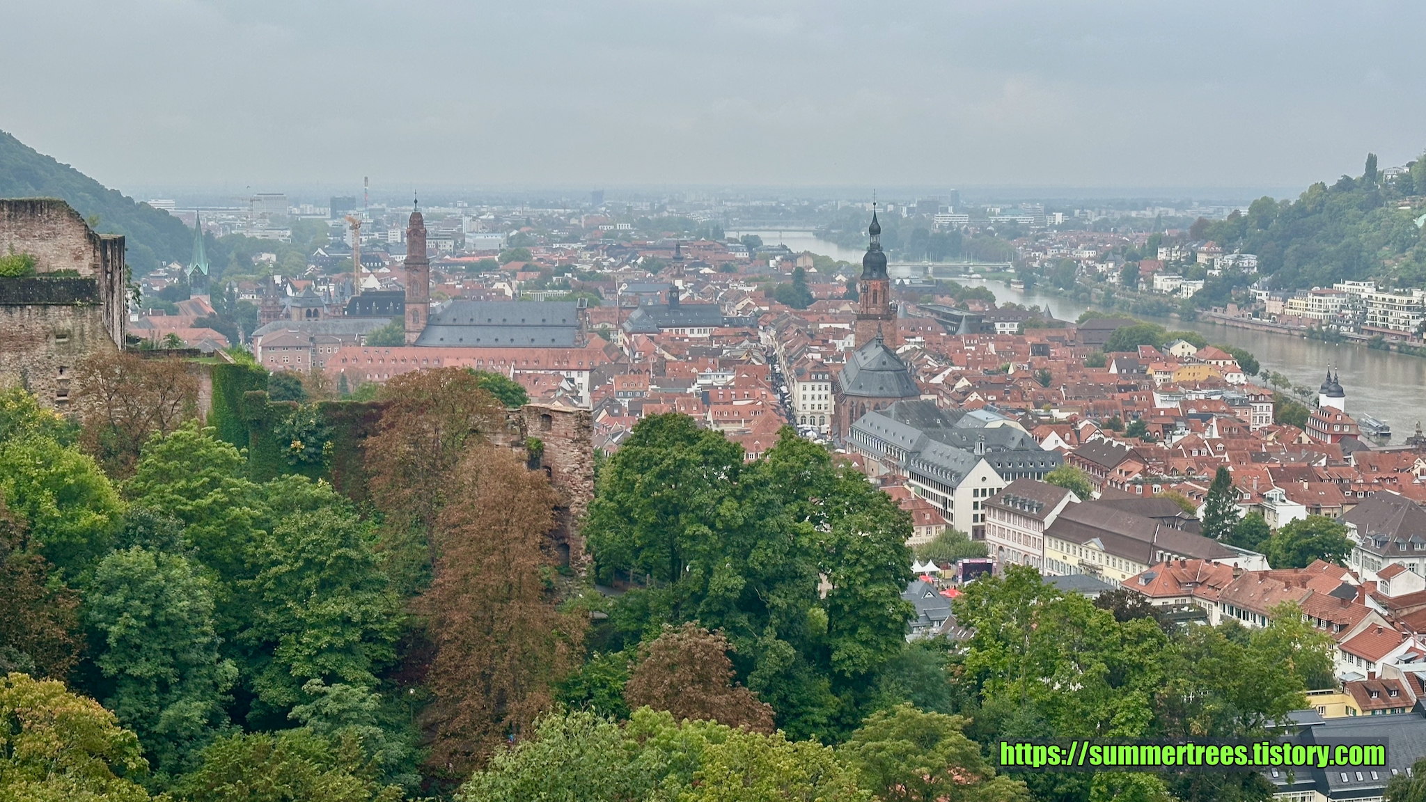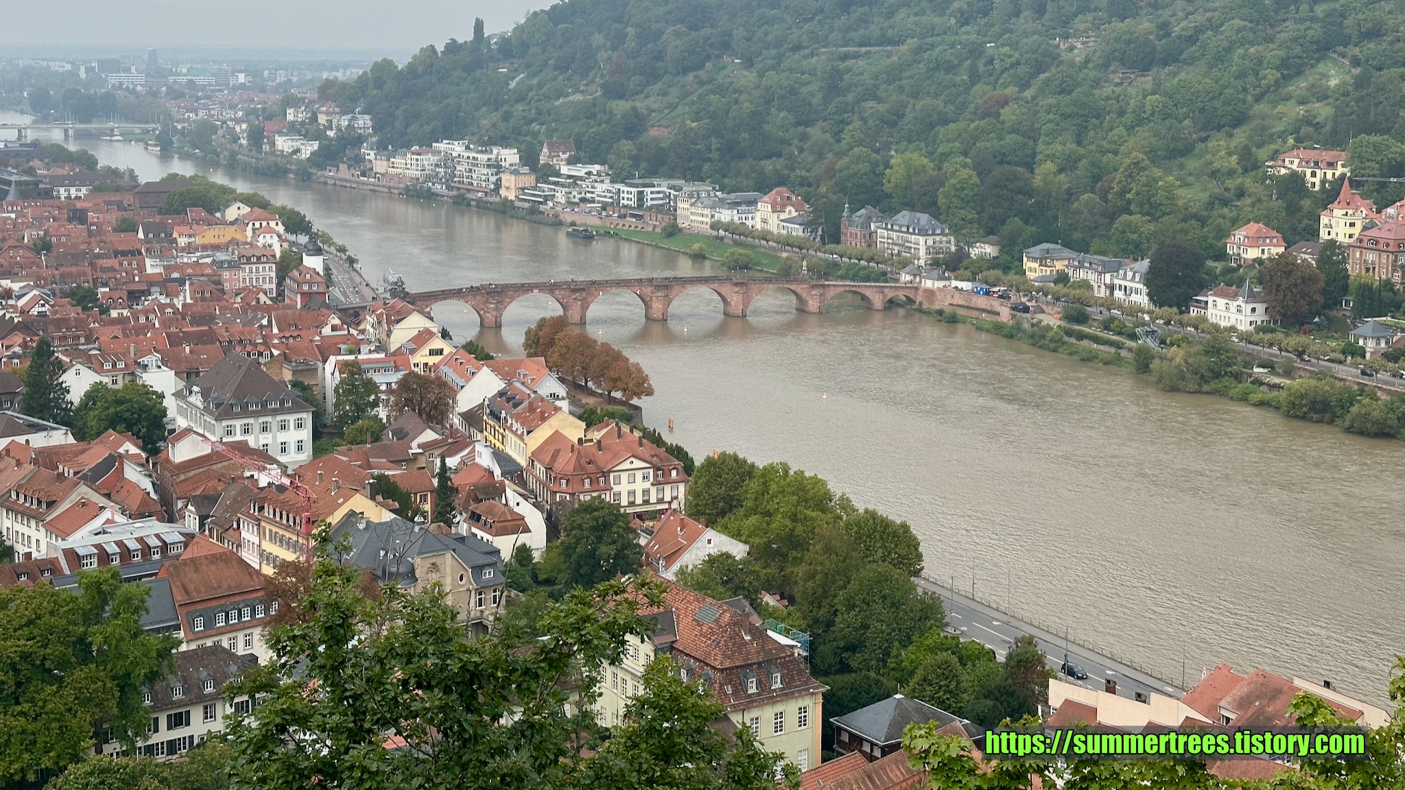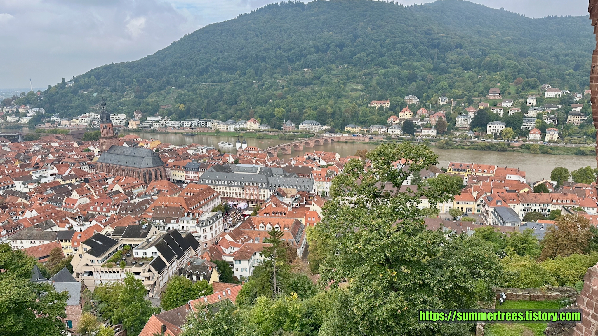 잔디밭을 돌아나가면 아래로 네카어강을 가로지르는 Old bridge와 마을을 볼 수 있다. 마을 전체가 전통양식의 집들이라 독일의 느낌을 잘 느낄 수 있다.