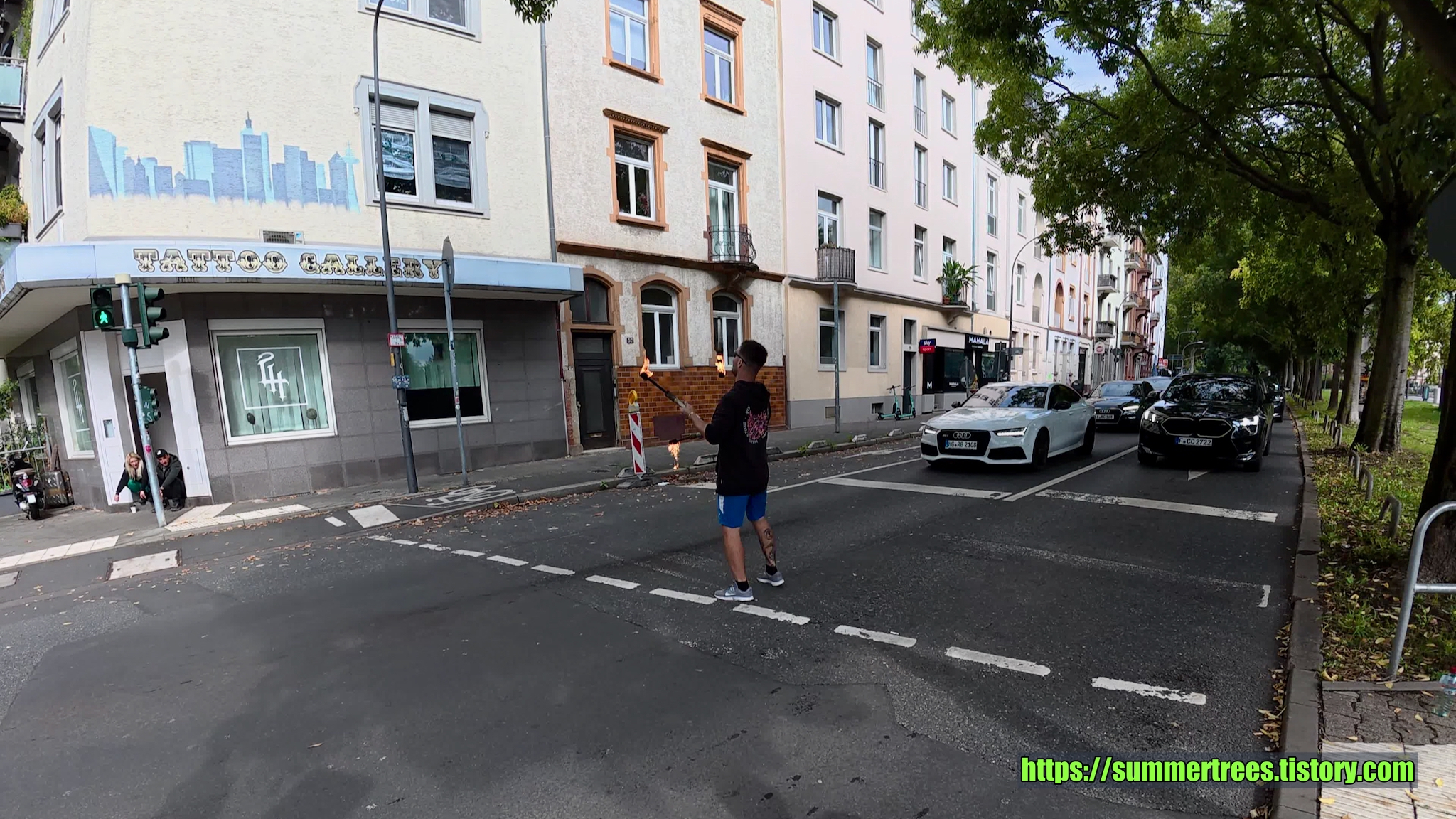 점심식사를 위해 한식당을 찾아 떠났다. 가는 길에 횡단보도 위에서 불꽃놀이 쇼를 하는 사람 발견. 희한했다. 운전자에겐 좋은 구경거리.