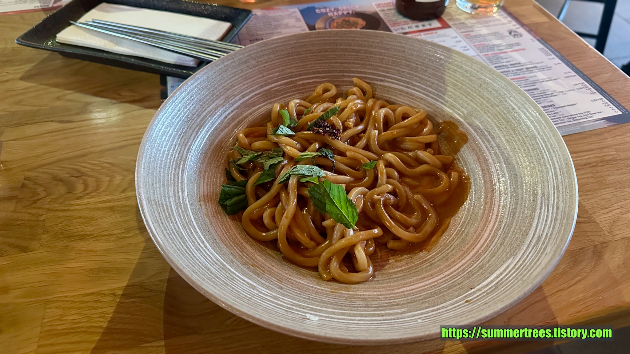 볶음우동이 맛있어 보여서 들어갔다. 땅콩을 좋아하는 사람은 이 메뉴로 마음껏 즐기라는데, 정작 땅콩을 집기가 어렵고 그리 많지도 않다.
