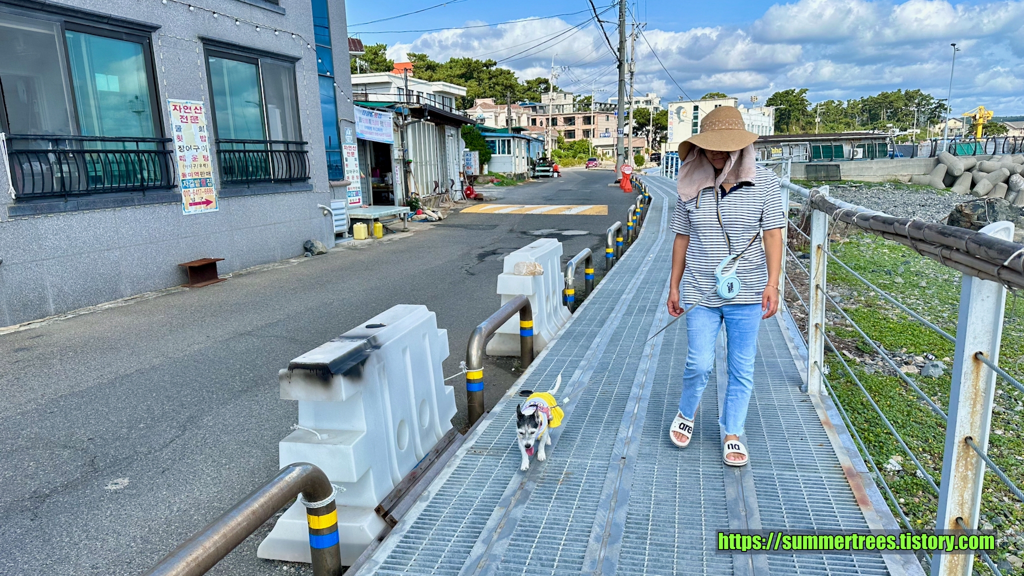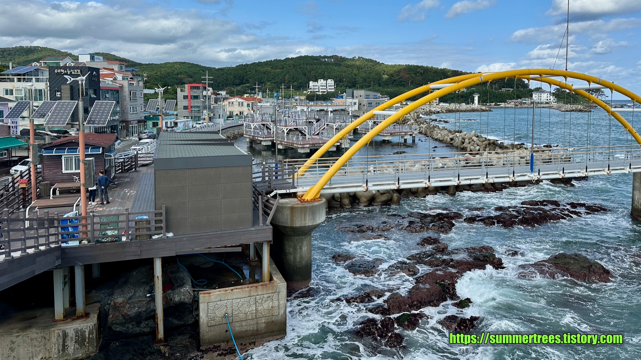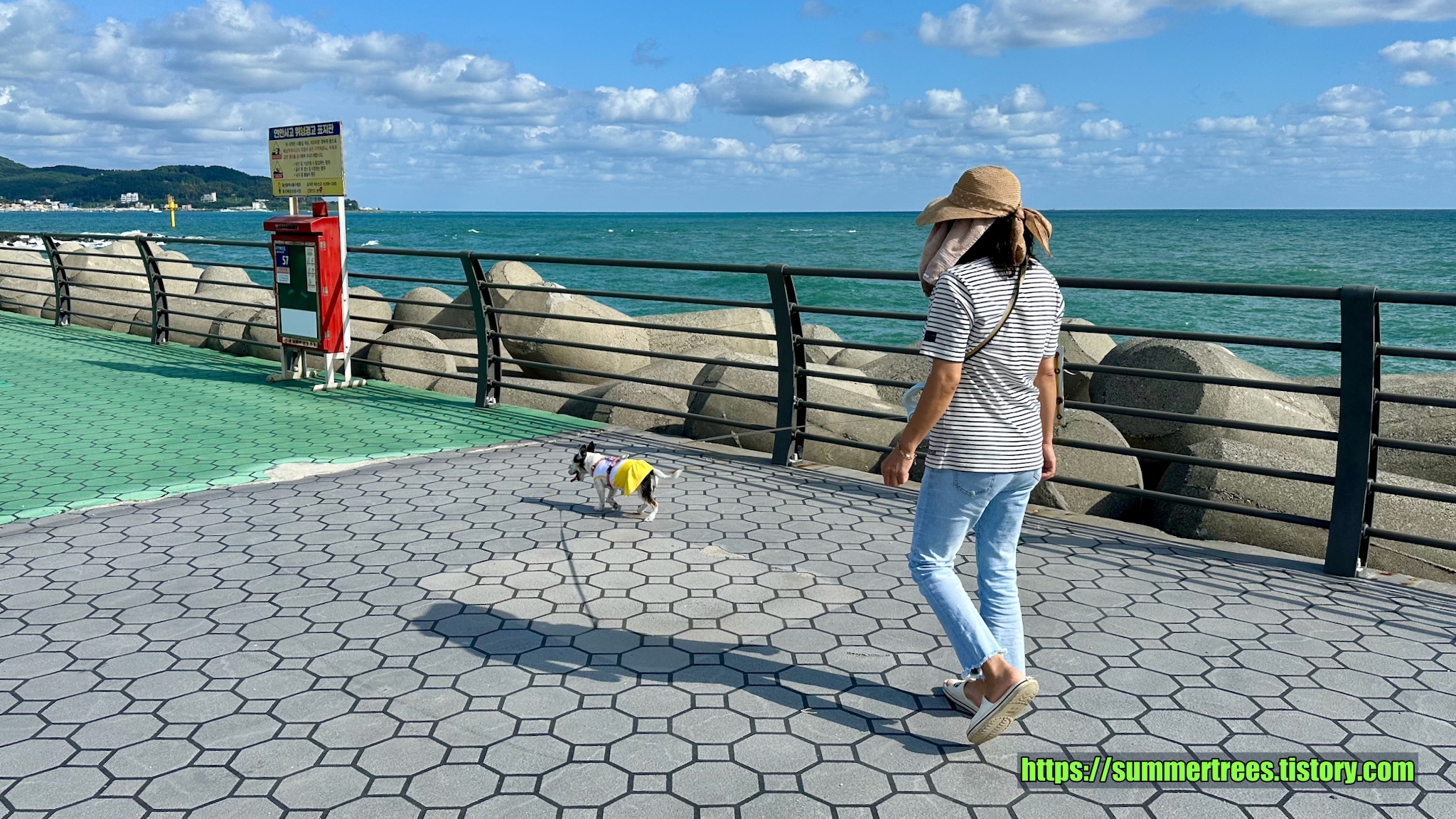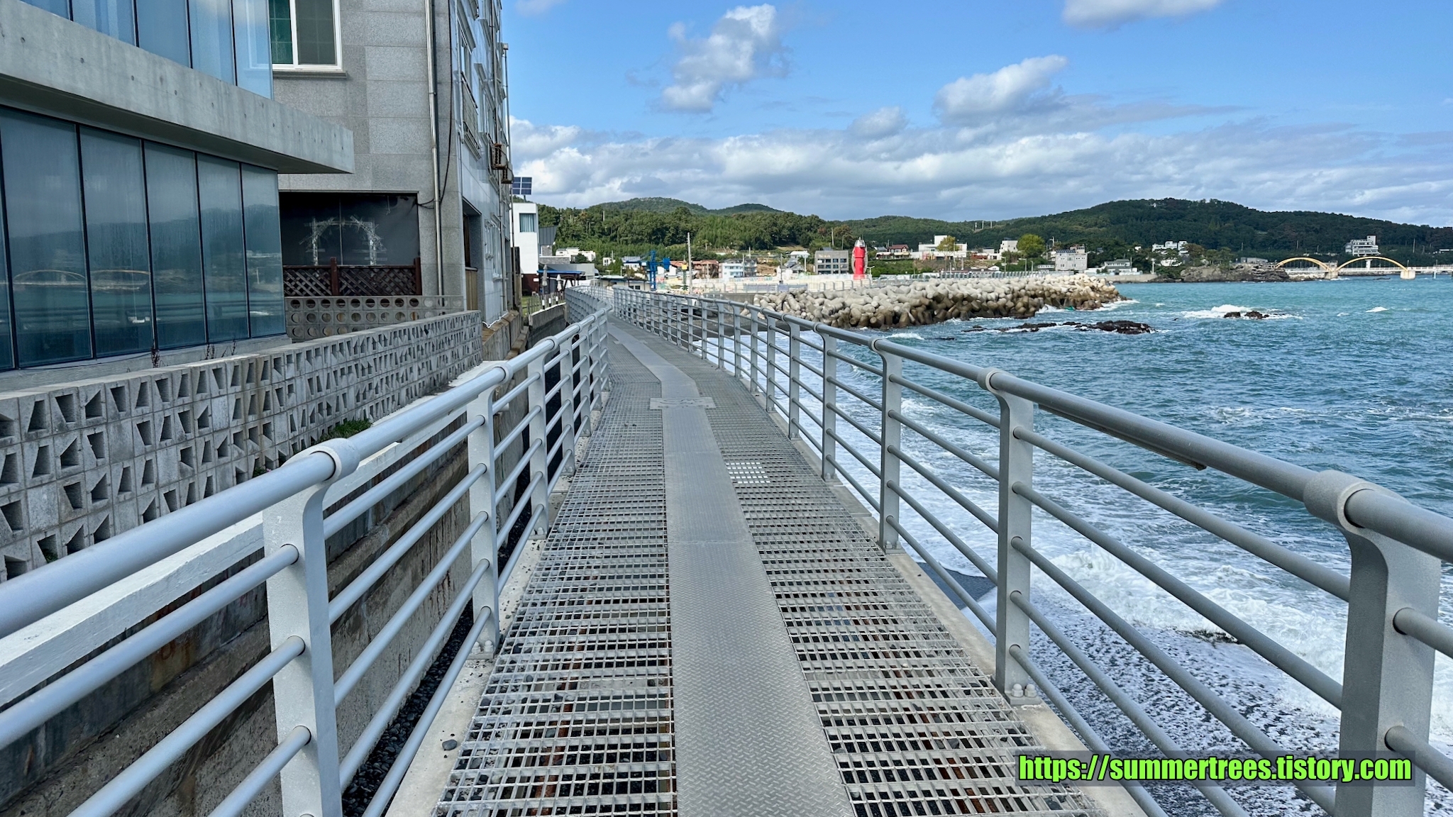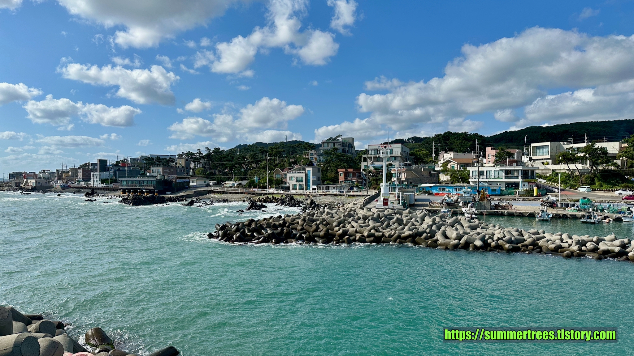 밥을 먹고 몽돌해변까지 산책을 했다. 몽돌해변의 편의점에서 커피를 사 마시고 돌아오면서 주전항을 둘러봤다.