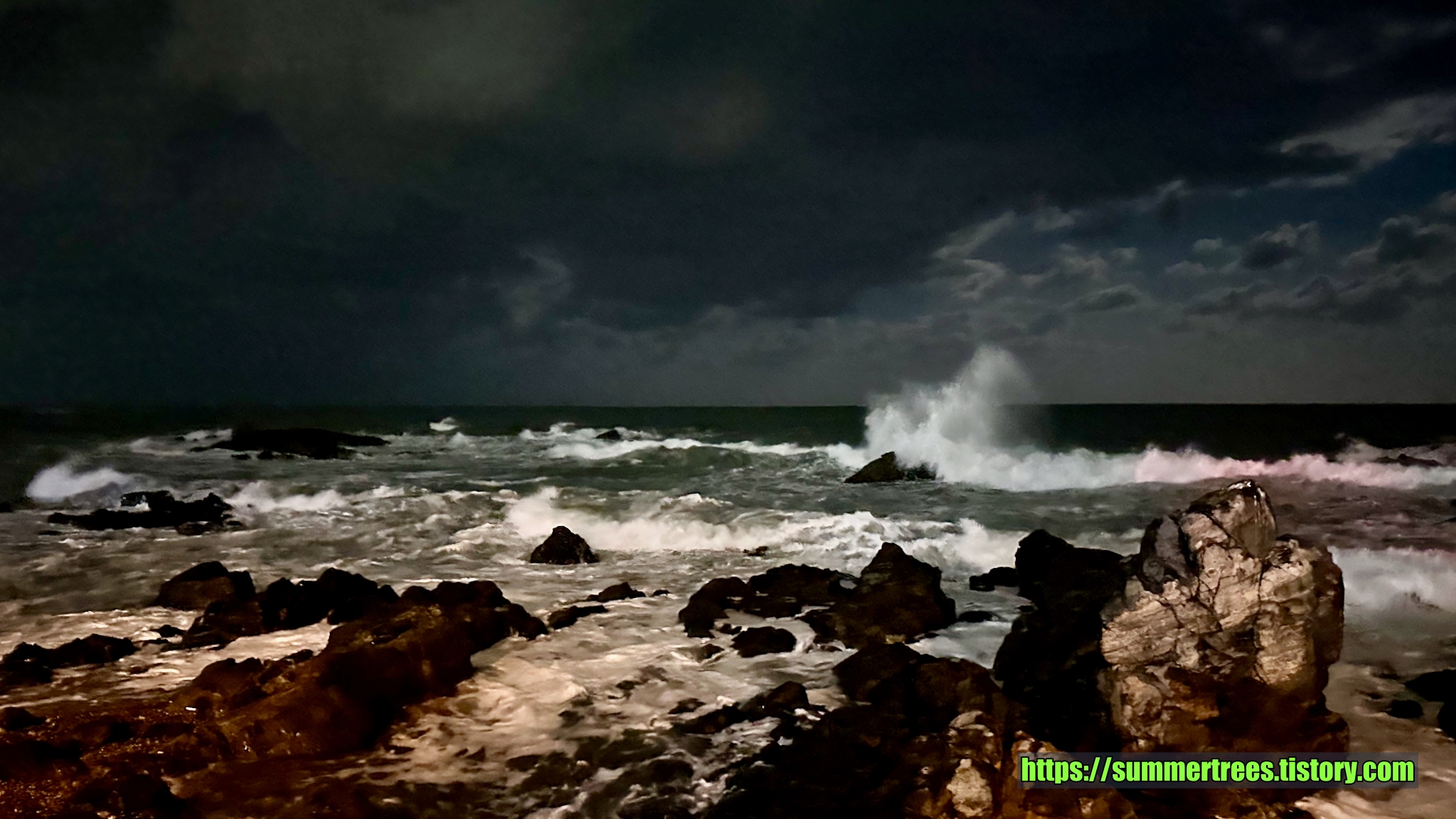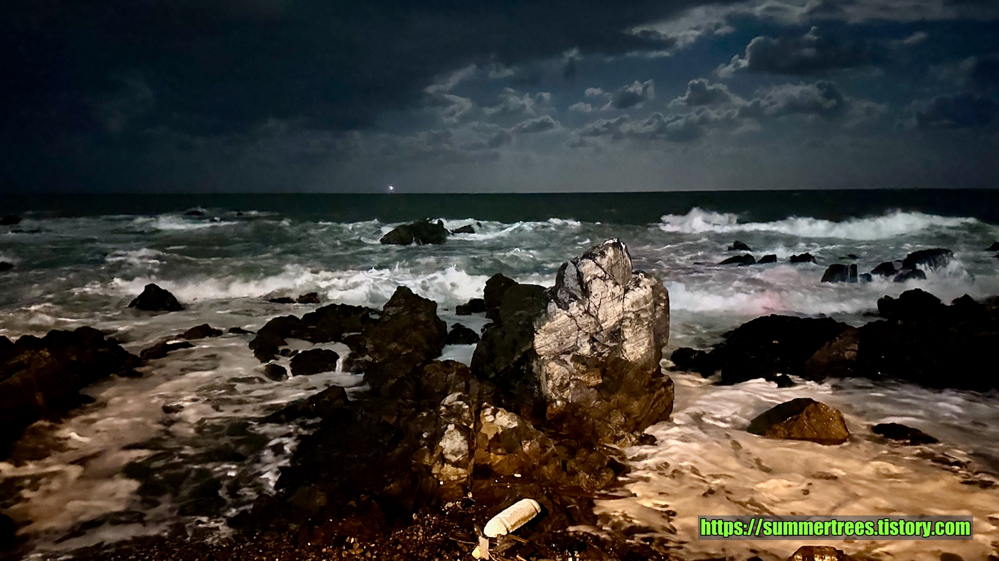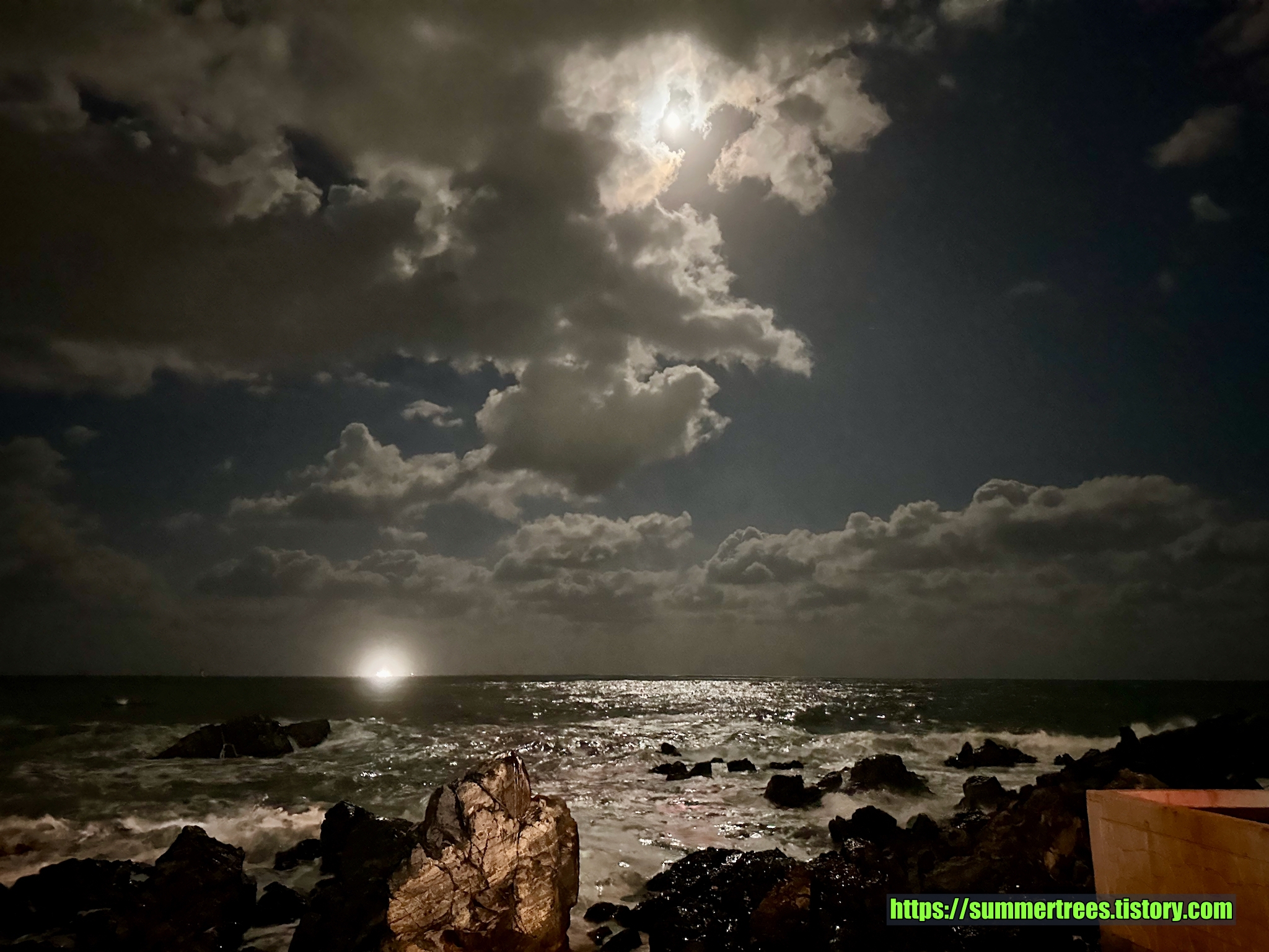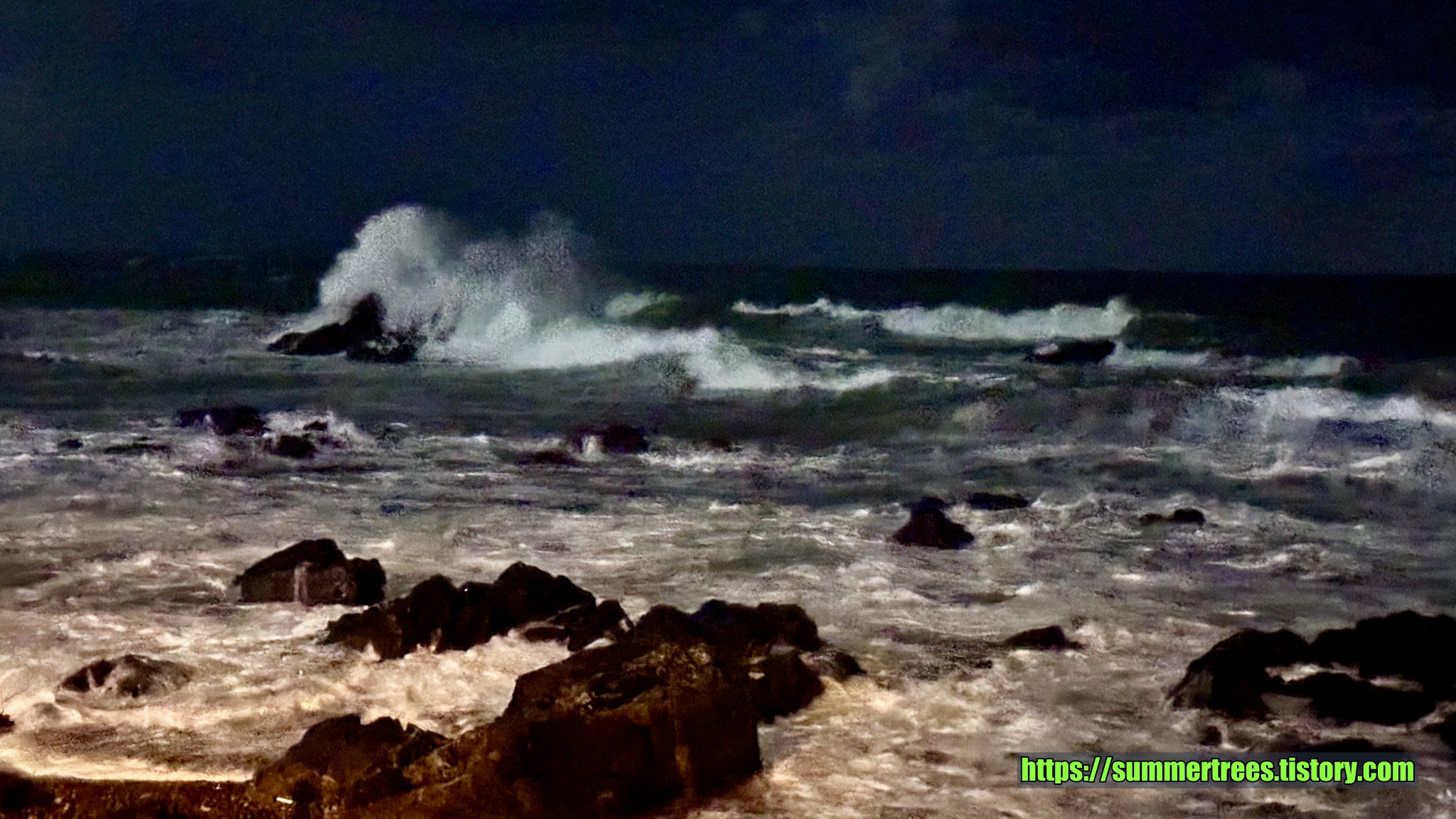 맥주 무제한을 즐긴 후 식당 건너편에 있는 마트에서 안주와 맥주를 더 사와서 파도를 구경하며 한 잔 더 했다.