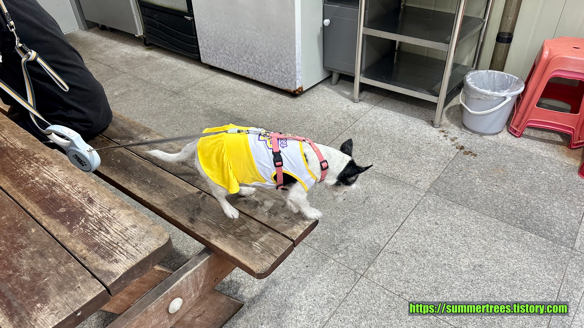 칼국수가 맛있긴 하지만 마야와 같이 먹을 수 있는 마당 앞 테이블이 있어 더 좋은 곳이다.칼국수 맛은 특별히 언급할 필요가 없이 먹기에 딱 알맞다. 과하지도 모자라지도 않아 물금에 놀러갔