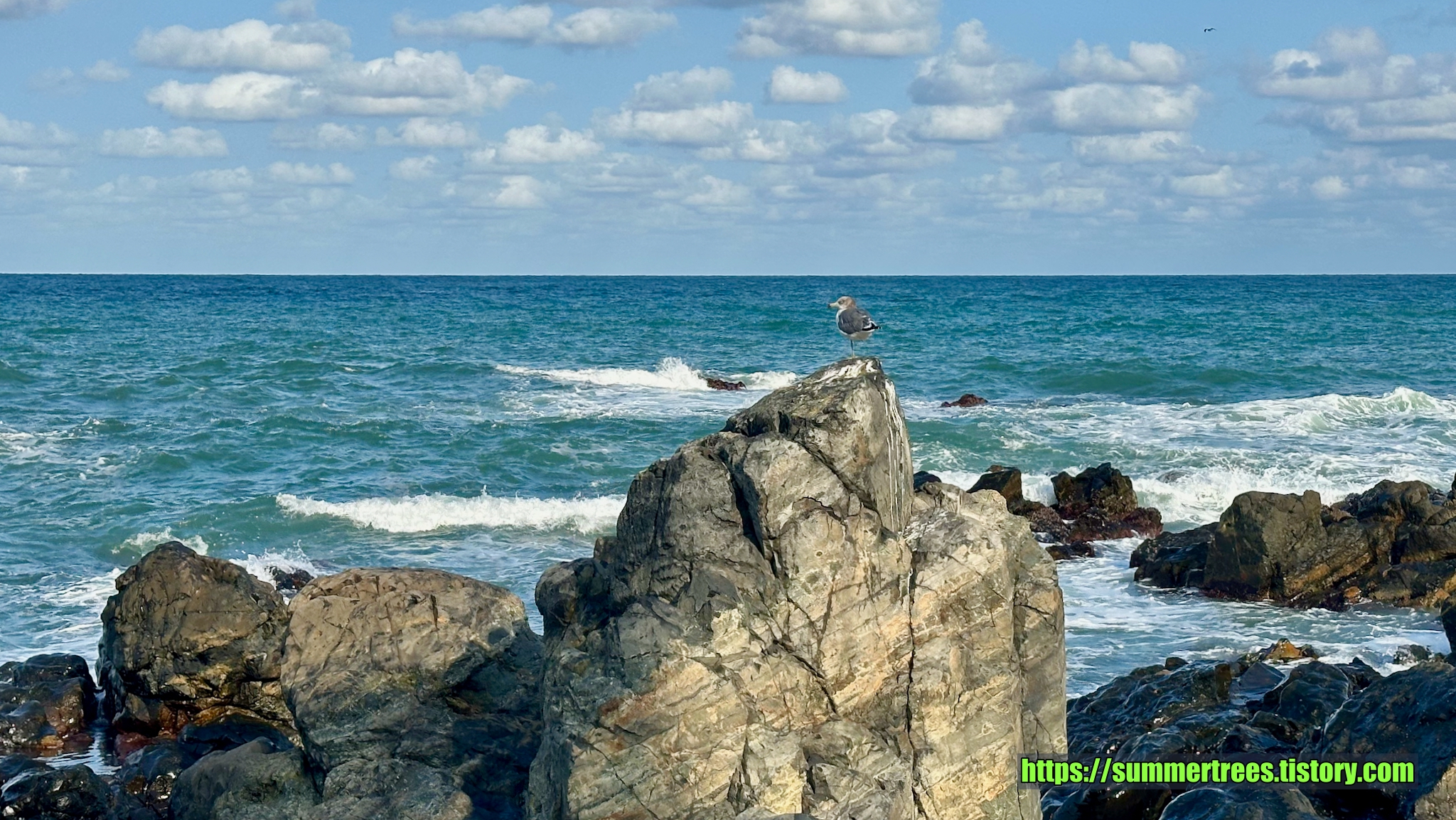 갈매기가 우리 차 바로 앞 바위에 앉아 휴식을 취한다. 좌우를 둘러보며 쉬는 게 귀여웠다.