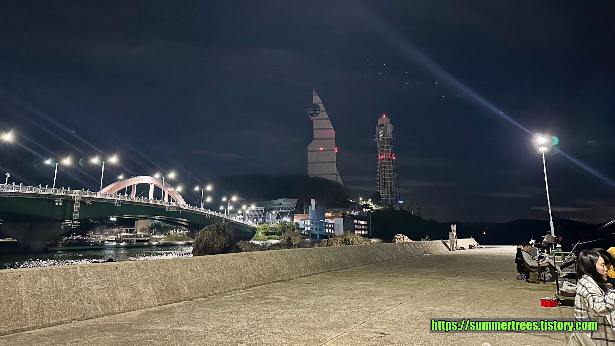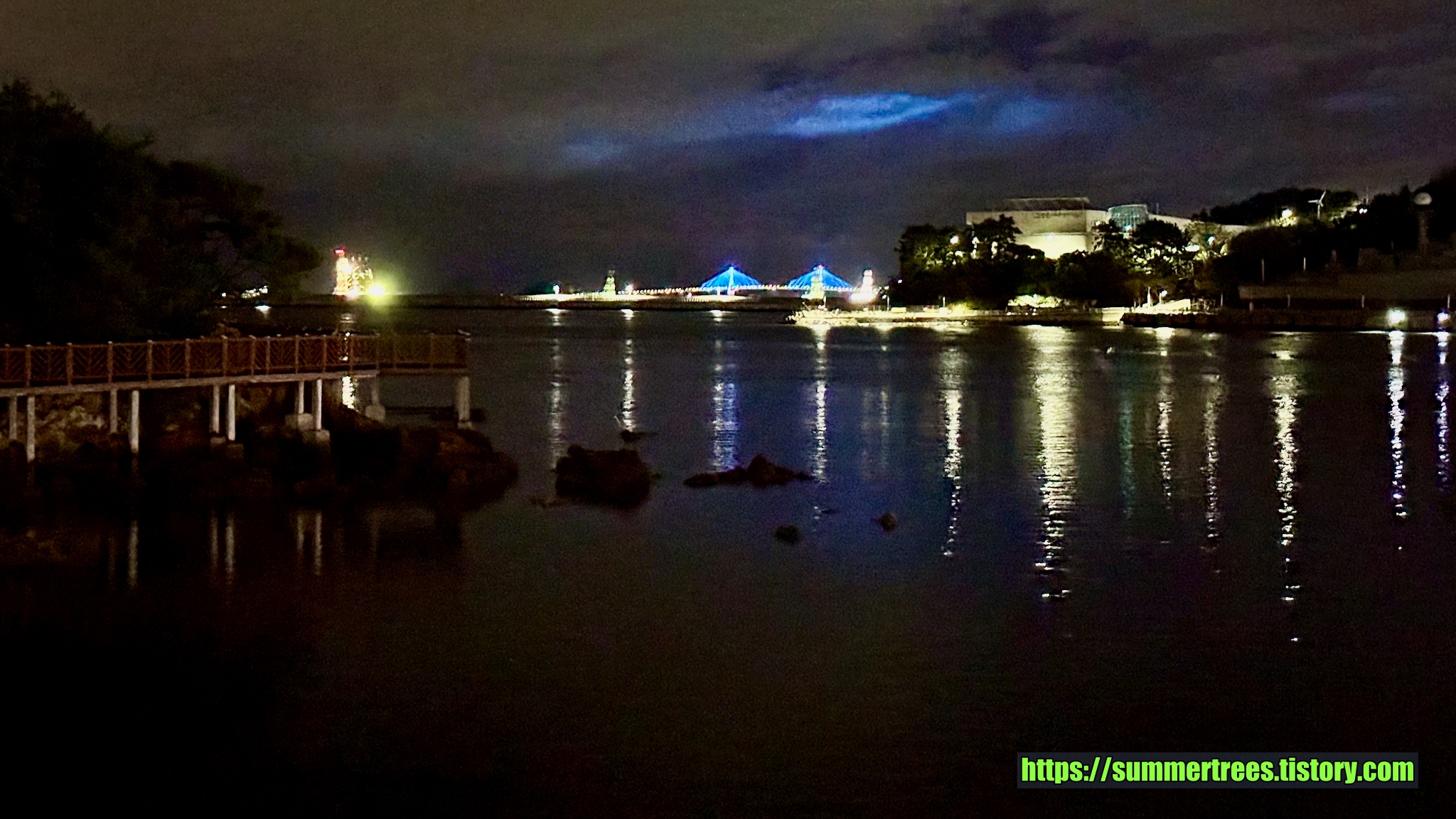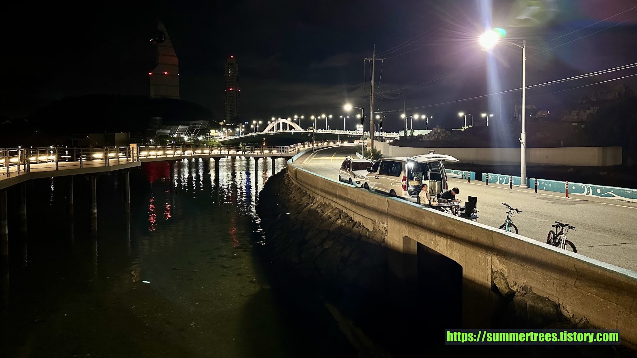 밥을 먹고 난 뒤 주변 산책. 도로변에 주차를 하고 밤바다를 즐기는 사람들을 보니 평화로워 보였다.