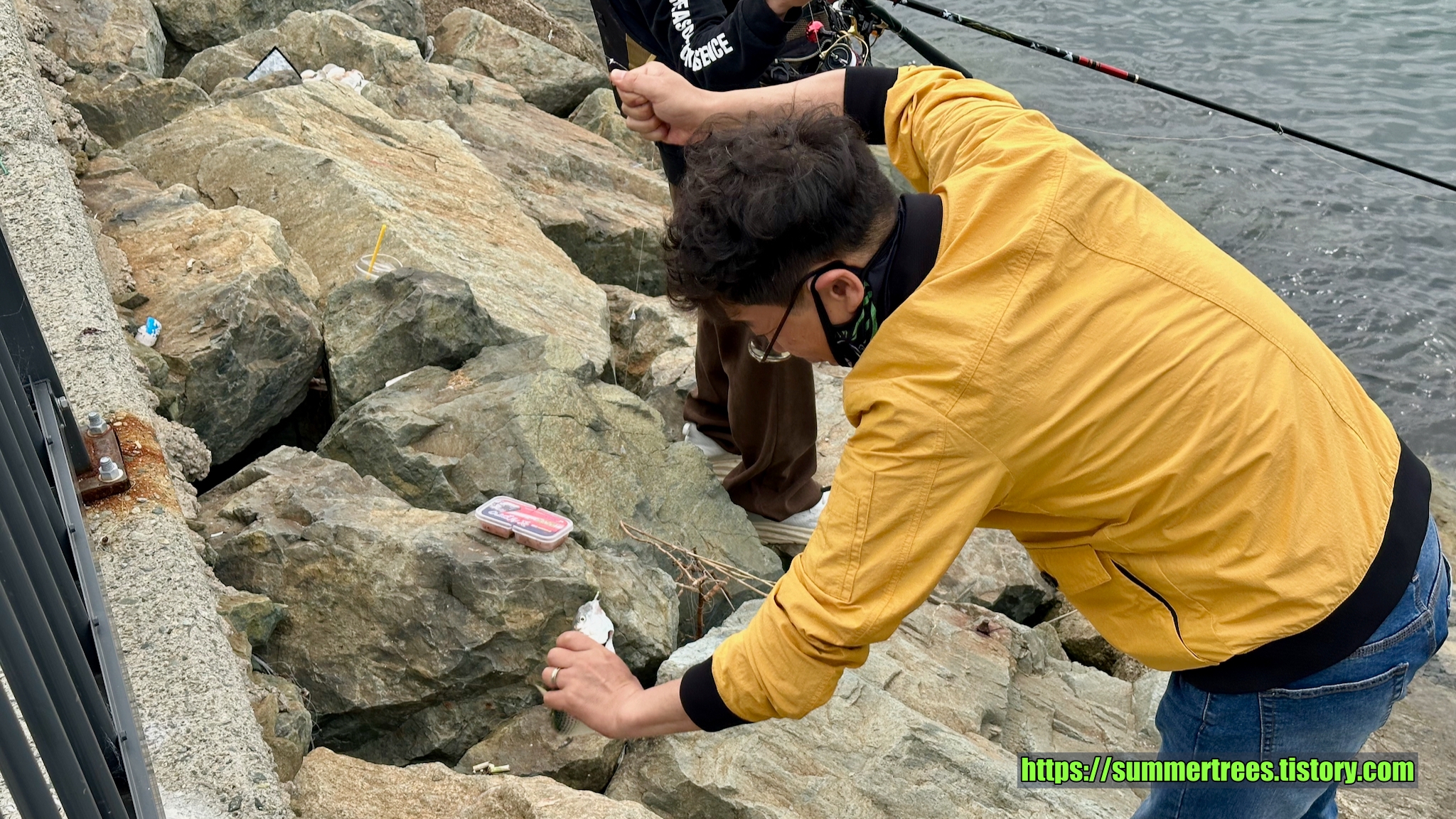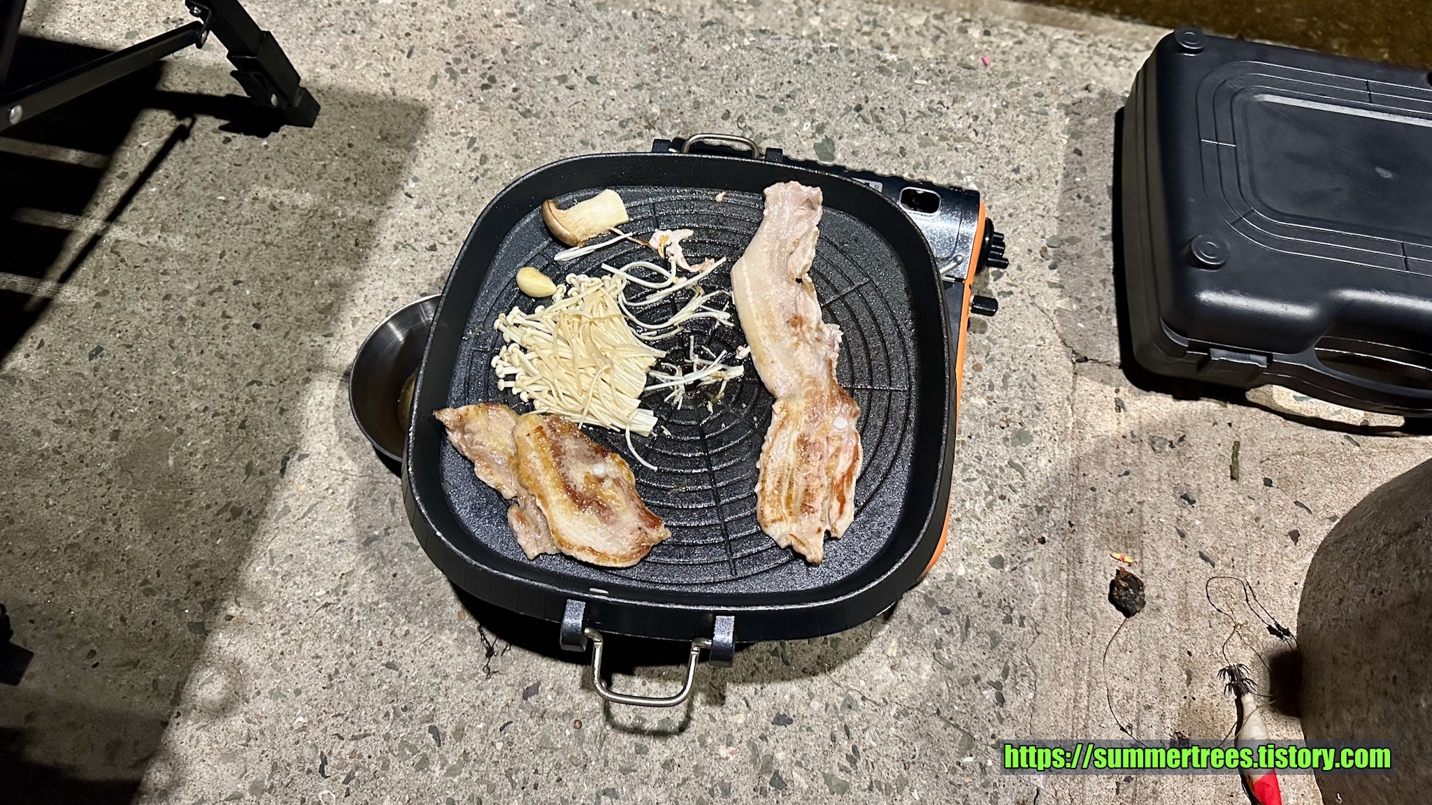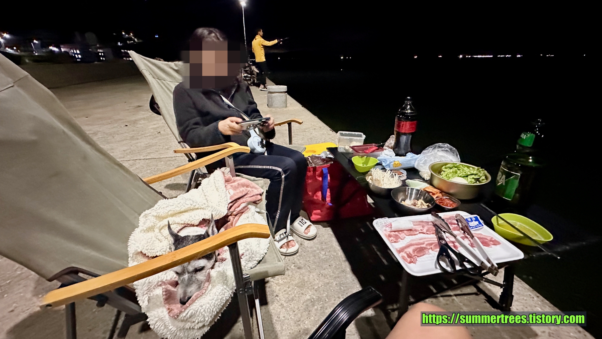 짐을 들고 방파제로 가서 삼겹살을 구웠다. 정말 오래간만에 명동항에서 삼겹살을 먹었다.