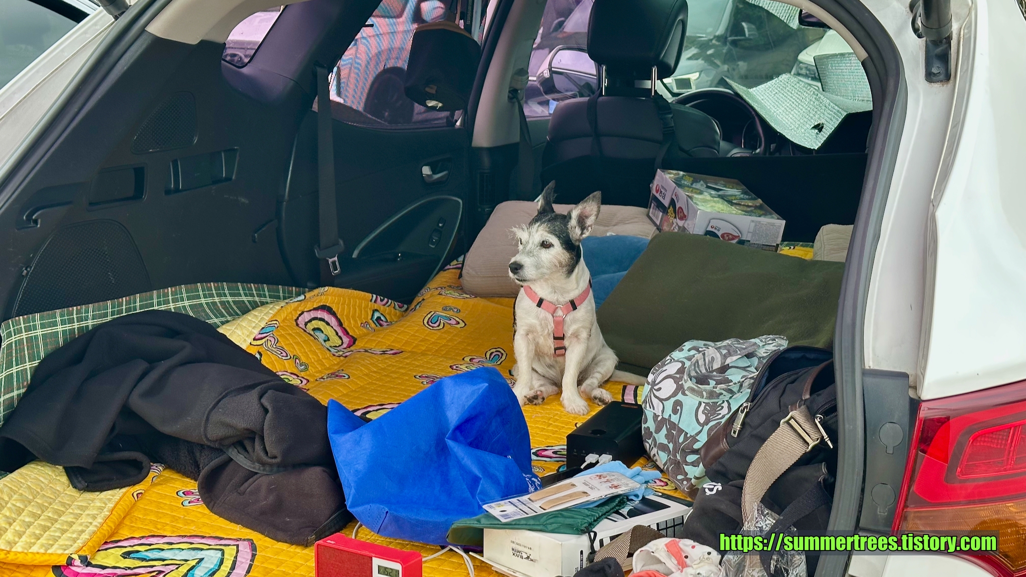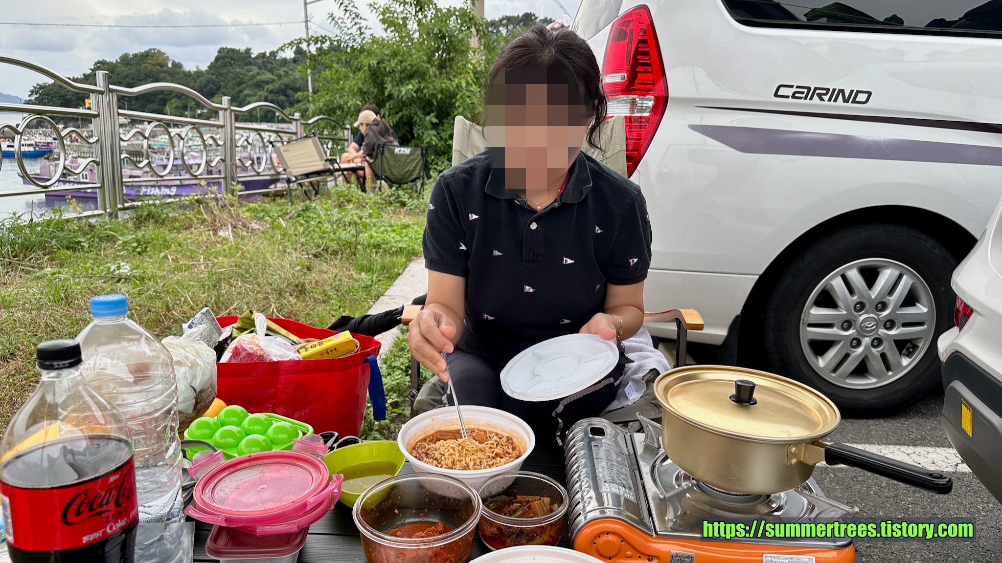 산책을 다녀온 뒤 왕뚜껑으로 점심을 먹고 정리한 후 철수.