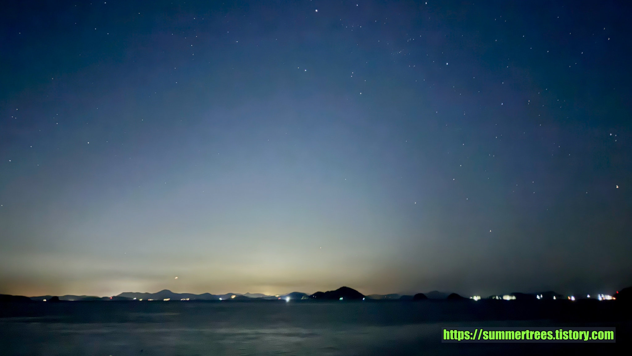 멀리 육지의 빛 때문에 약간 가려지긴 했지만 밤하늘에 별이 많았다.
