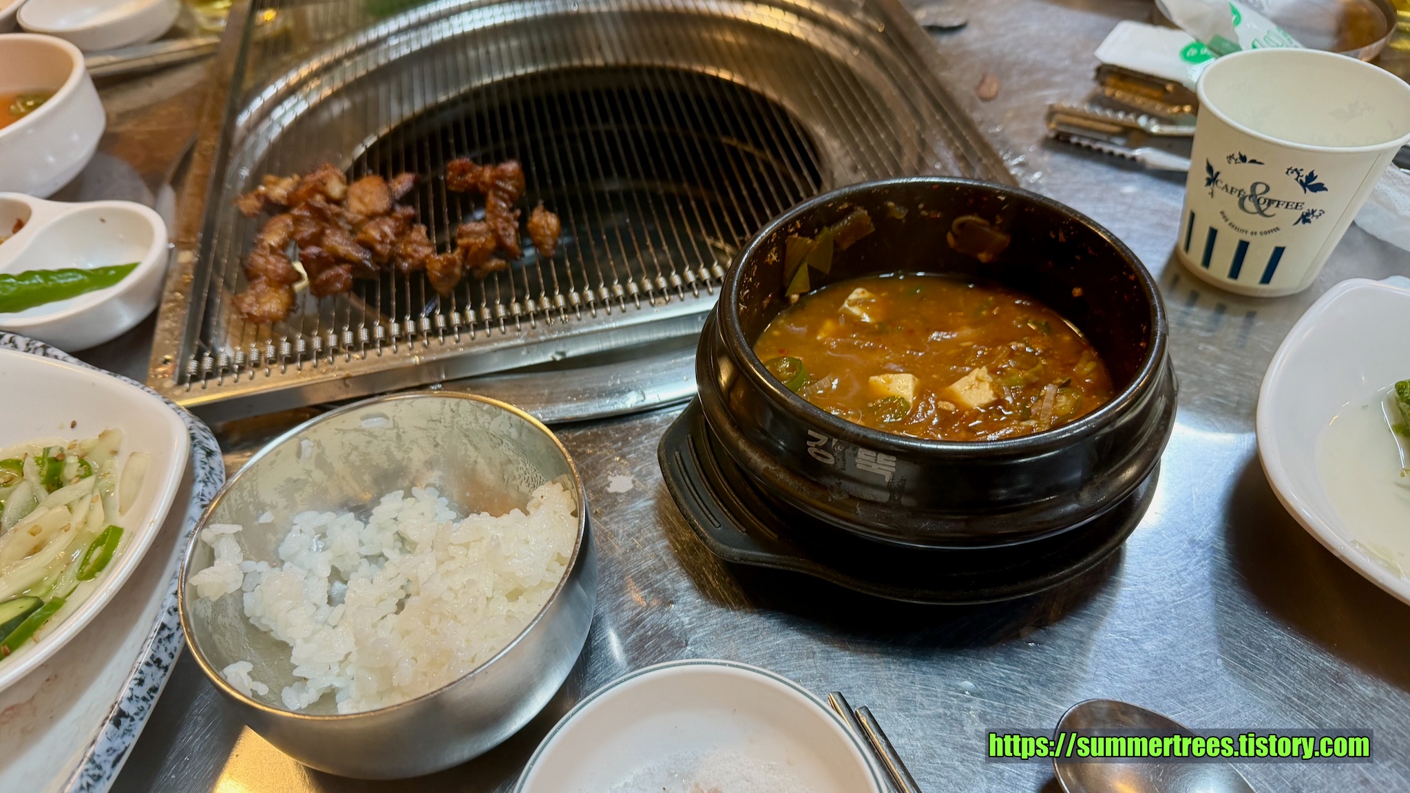 우리가 주문하고 나서 곧 생갈비가 다 팔려 주문불가란다. 우리가 거의 마지막 주문이었다.