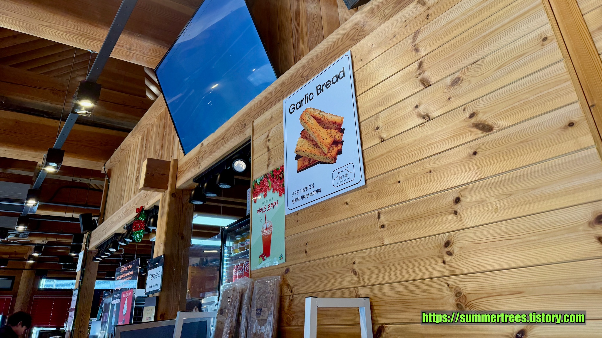 설악산이라 그런지 다 비싸다. 마늘빵 4조각 6000원, 커피 한 잔 5800원.