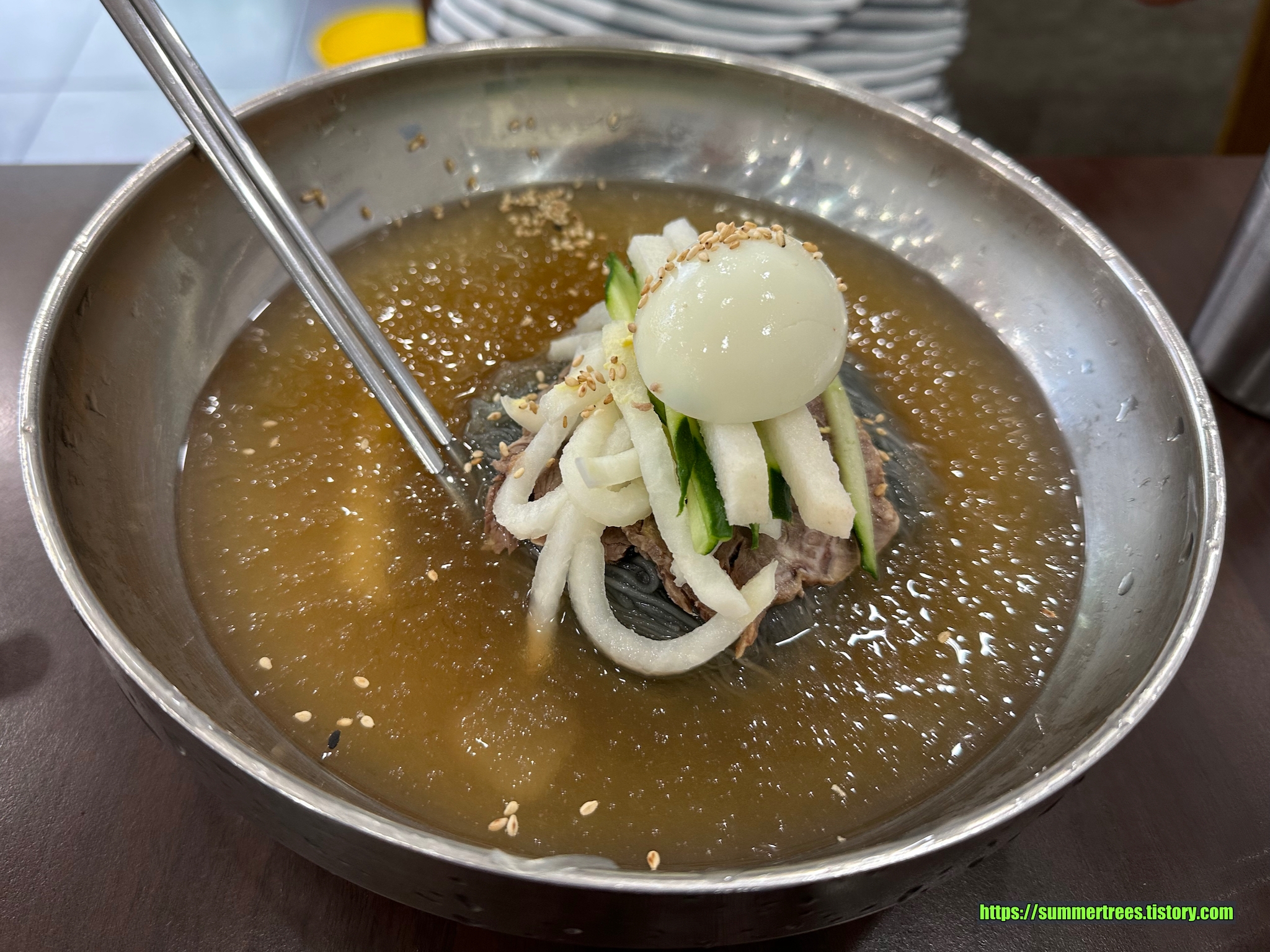 이 집은 물냉면보다는 비빔냉면 맛집이다. 같이 나오는 황태육수가 맛있다.