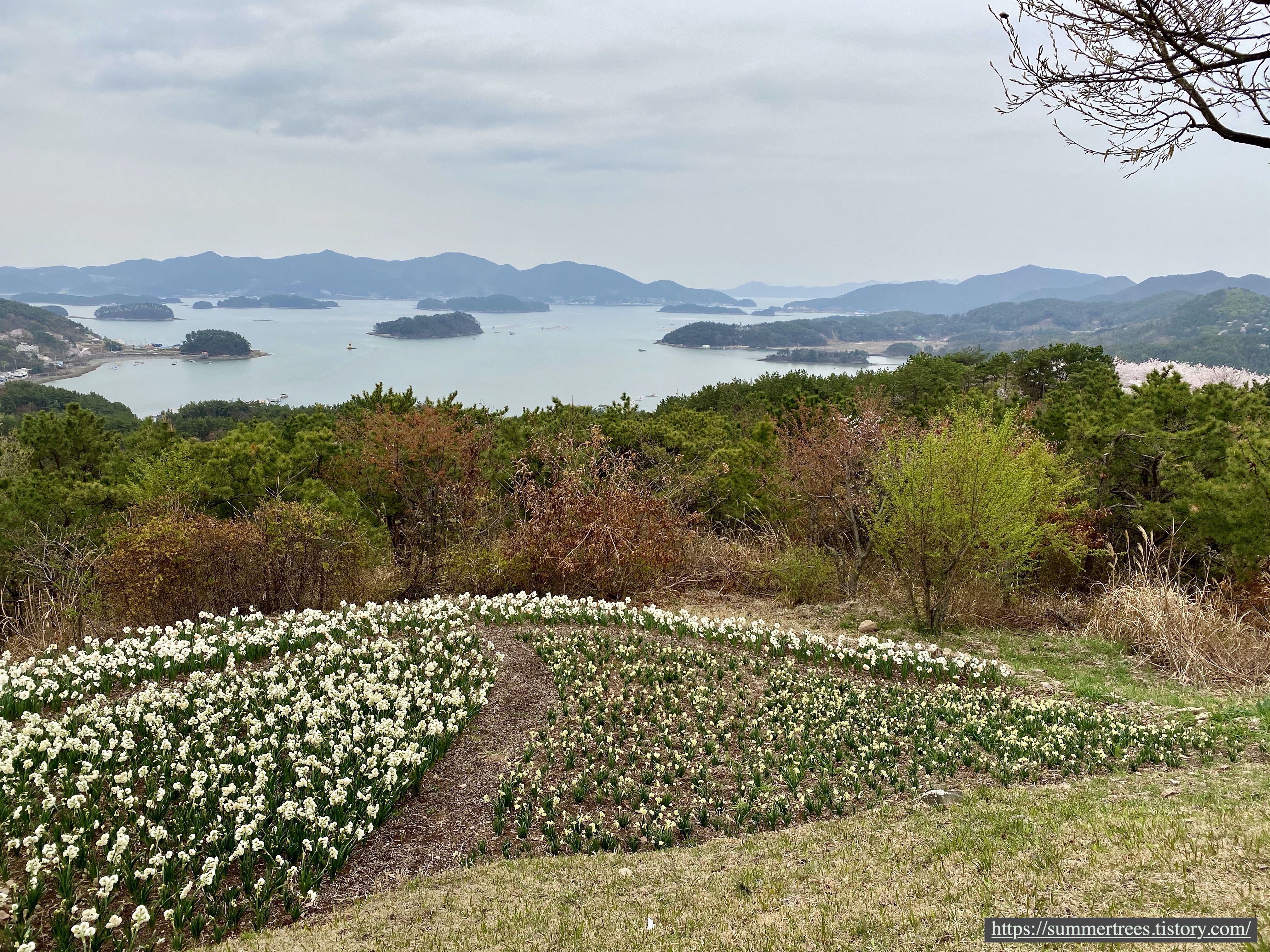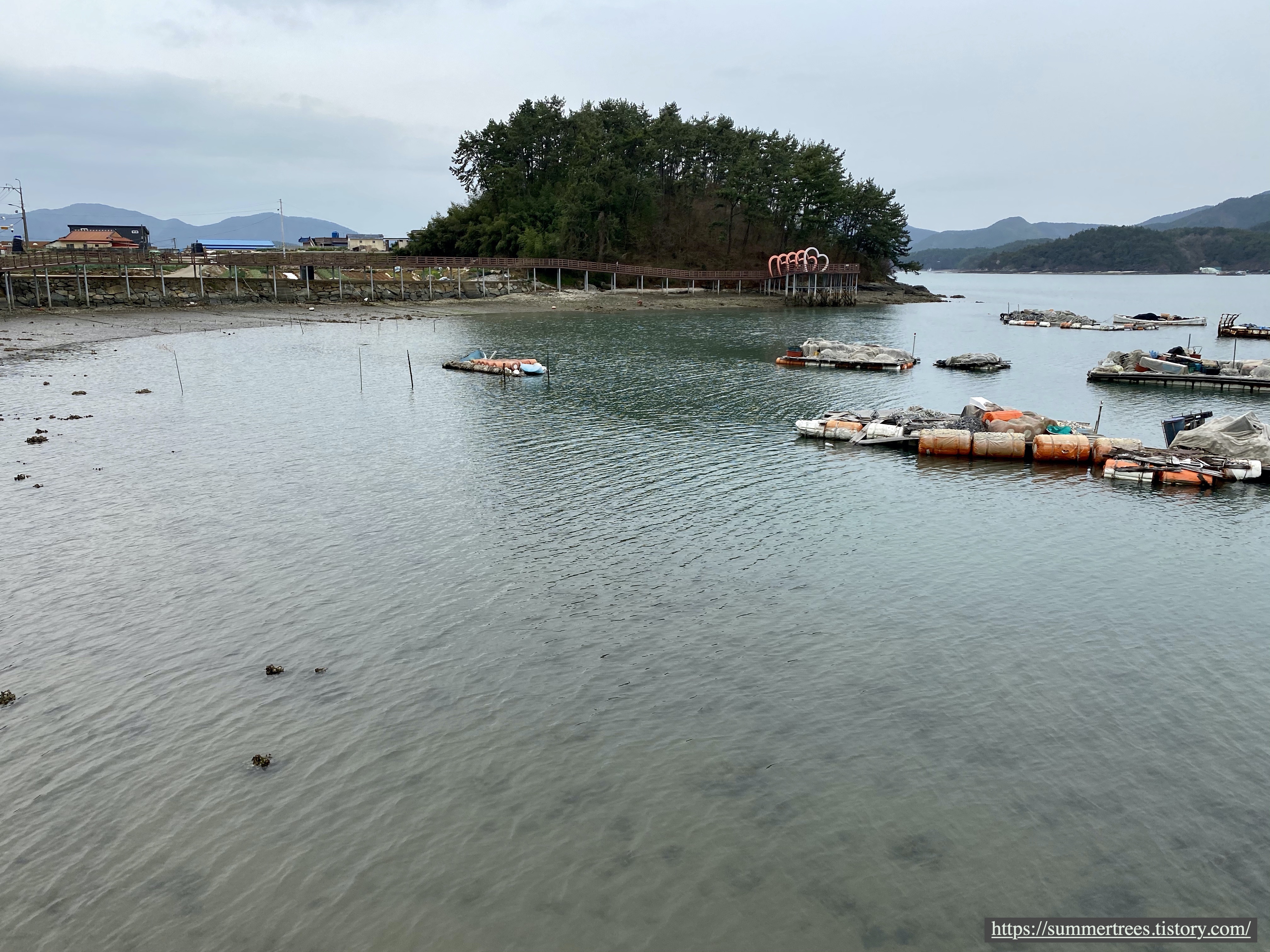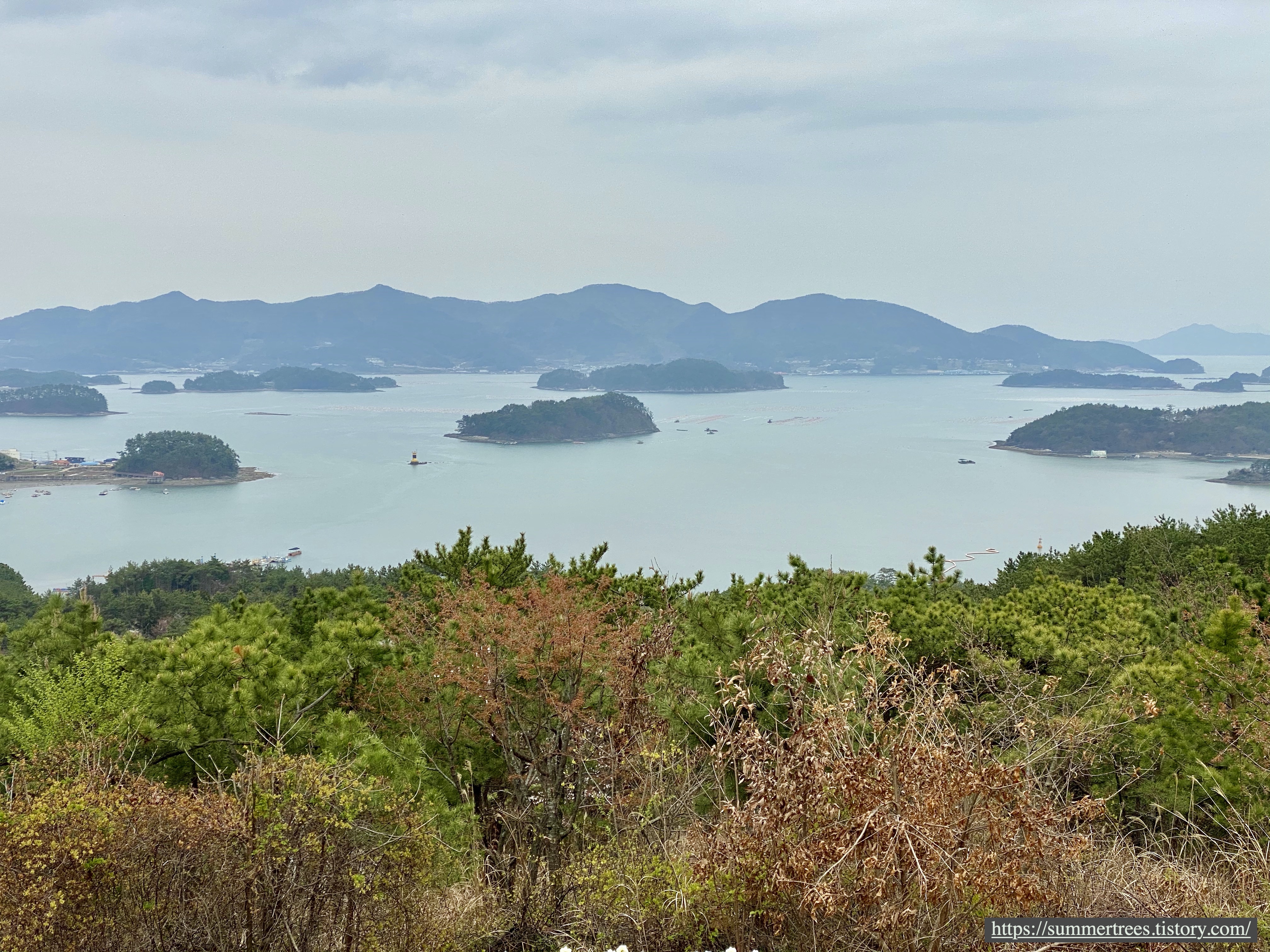 구름다리까지 가보진 못하고 가장 높은 곳에 있는 정자까지만 갔었는데 거기서 고성 앞바다를 훤히 볼 수 있었다.