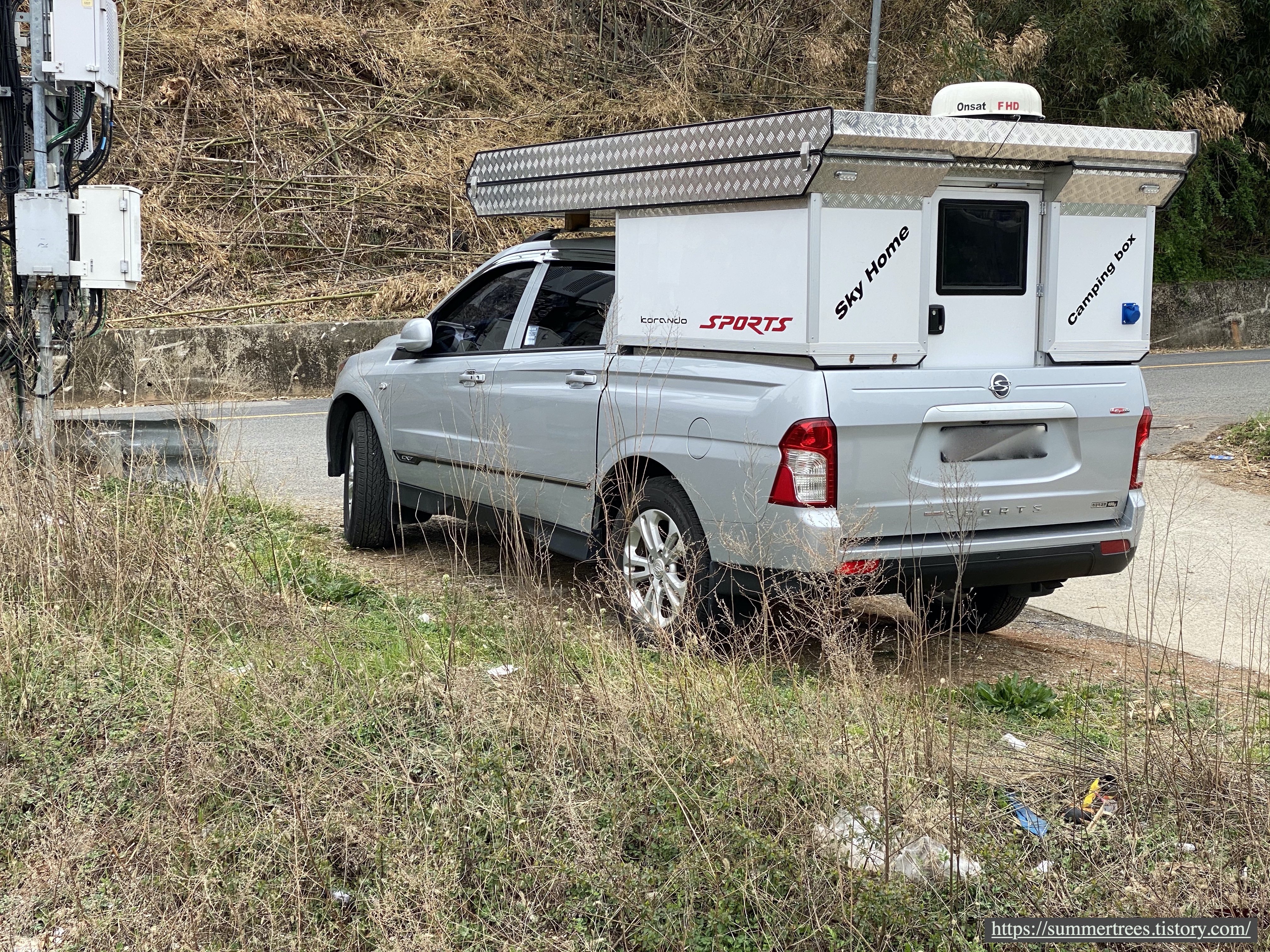 그곳에 자리를 막 잡은 캠핑카.