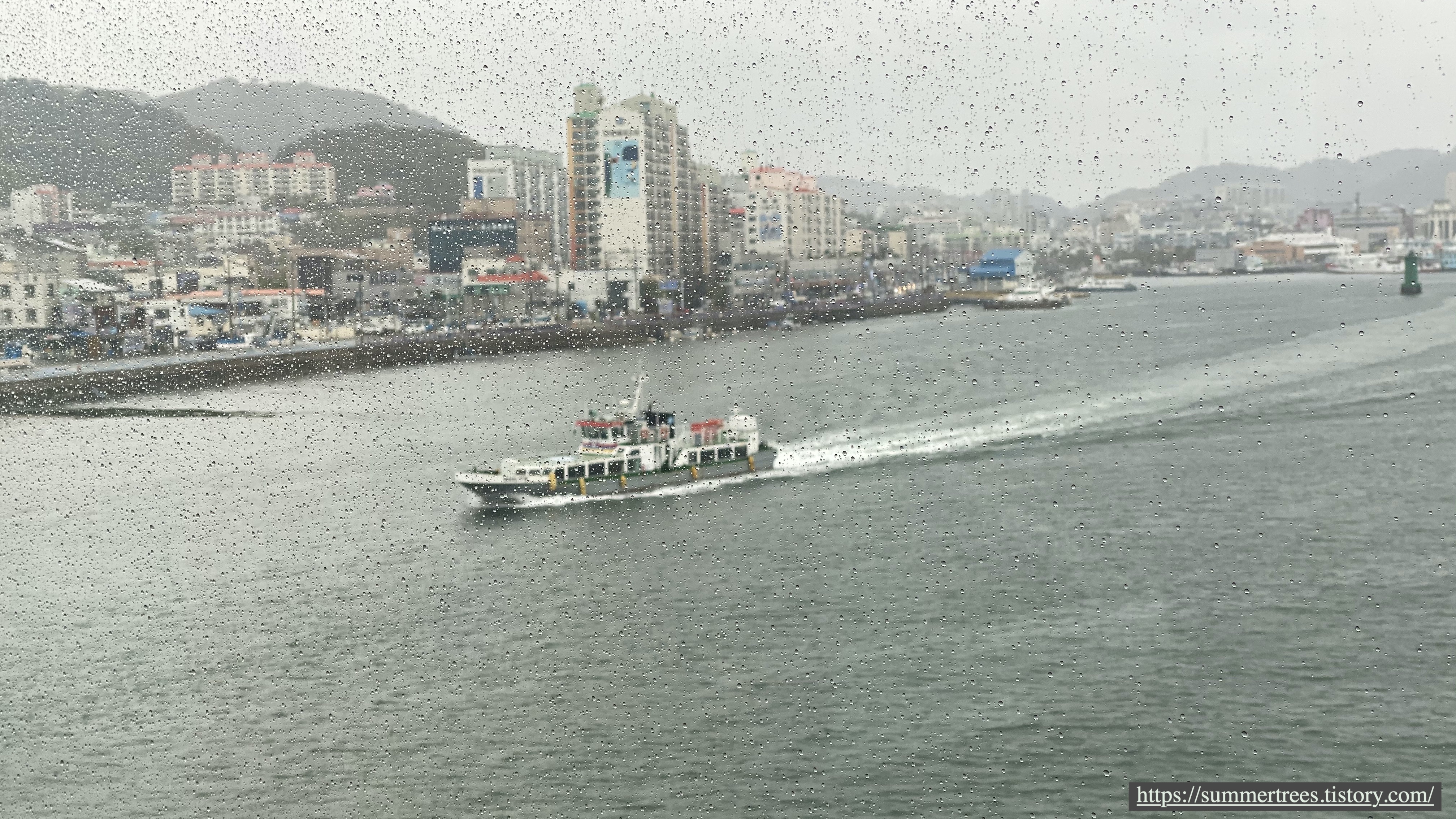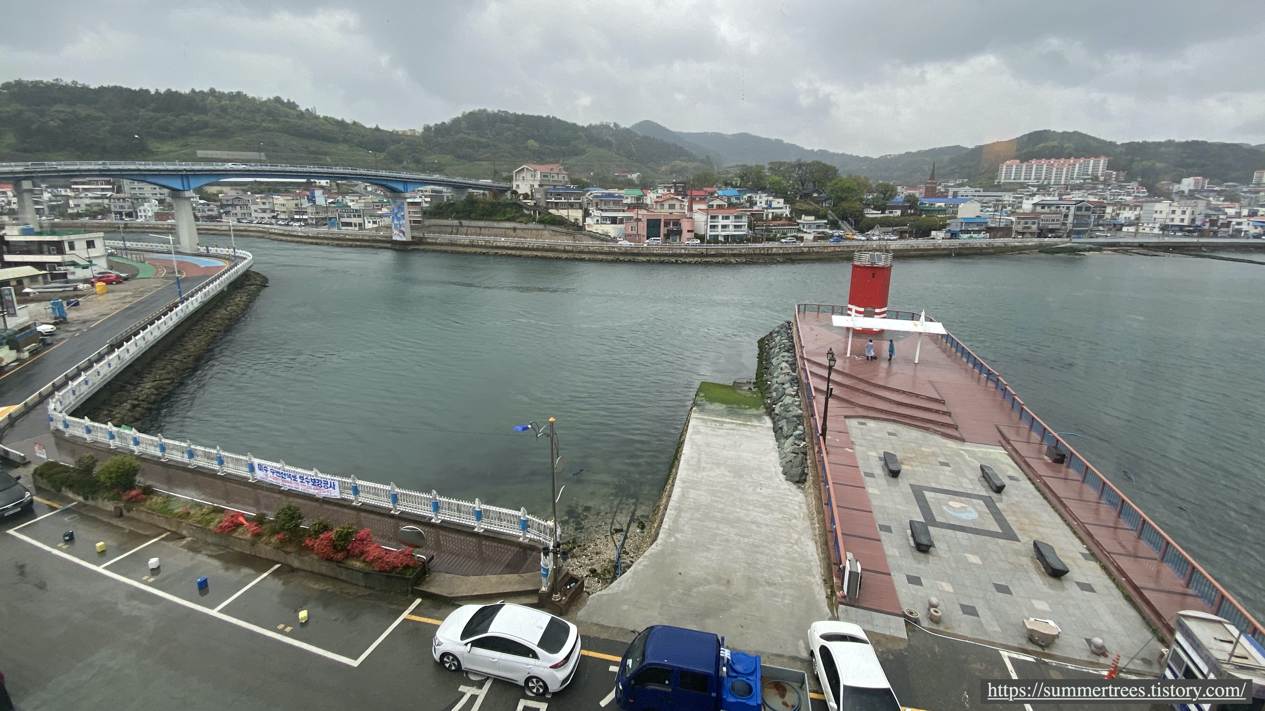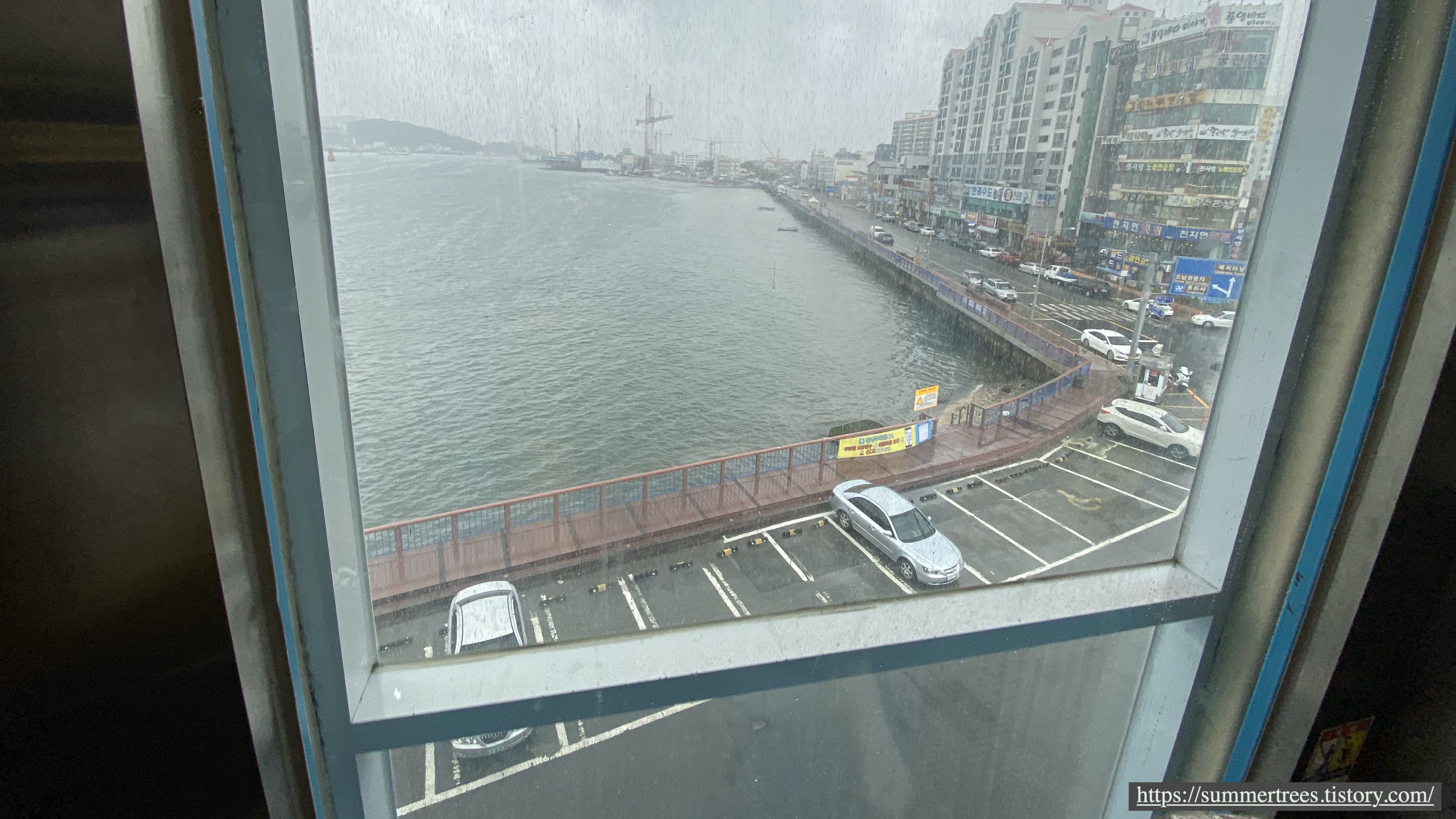 엘리베이터에서부터 통영운하를 바라볼 수 있다.