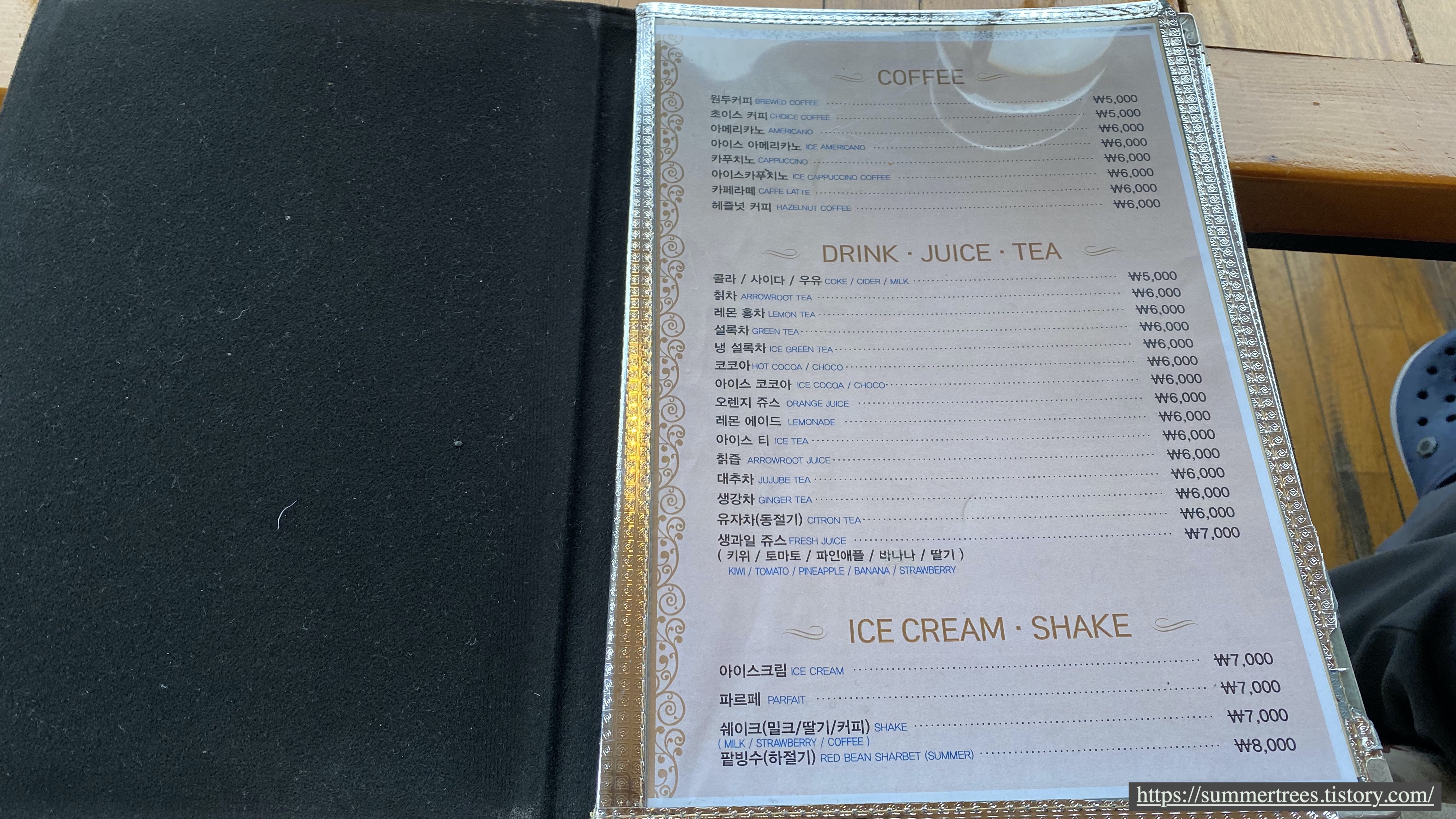 명당자리가 딱 한 테이블 있는데 두 사람이 창밖을 같이 바라볼 수 있다.