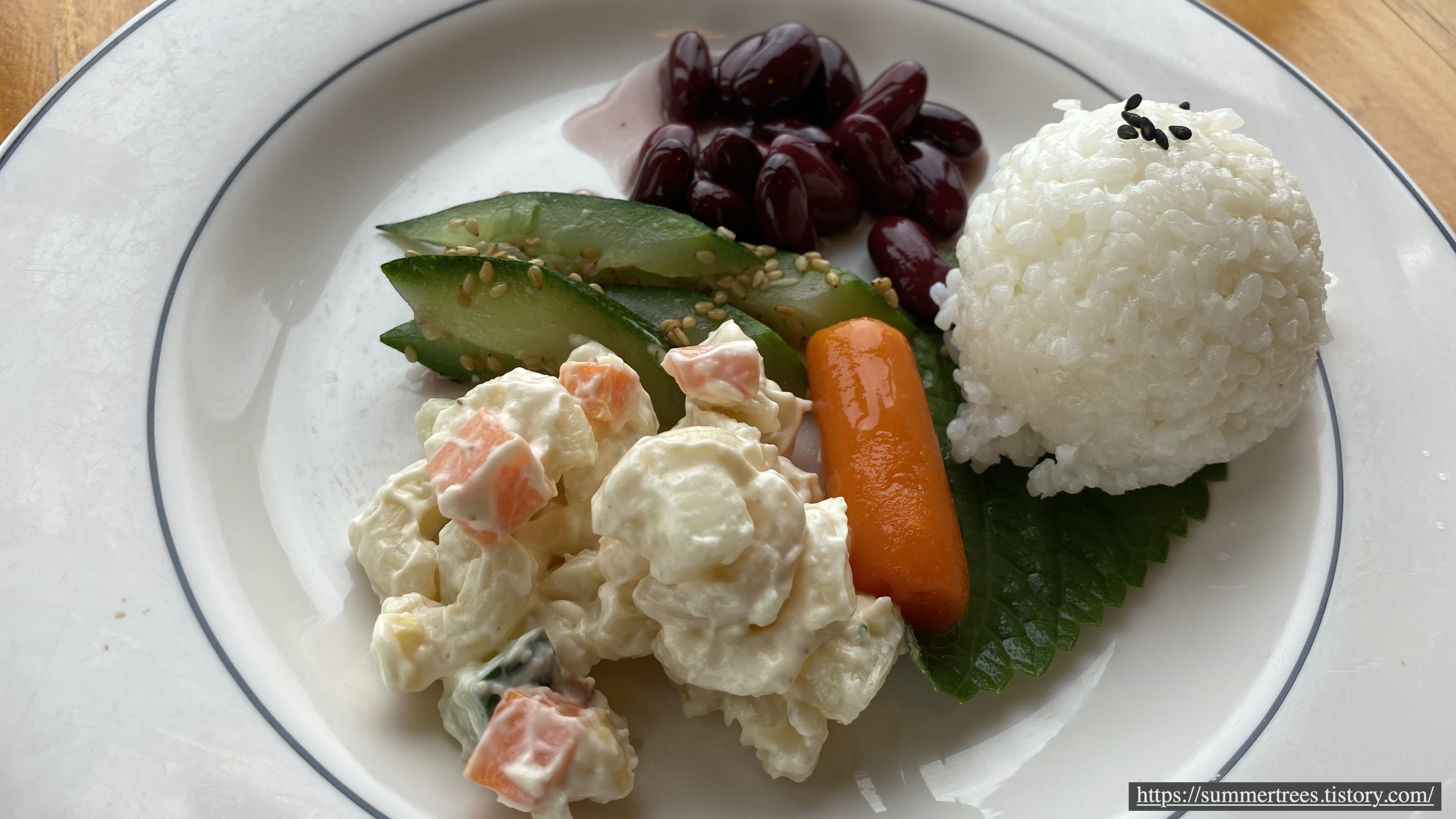 구운 감자가 같이 나오고 야채와 밥이 따로 서빙된다.