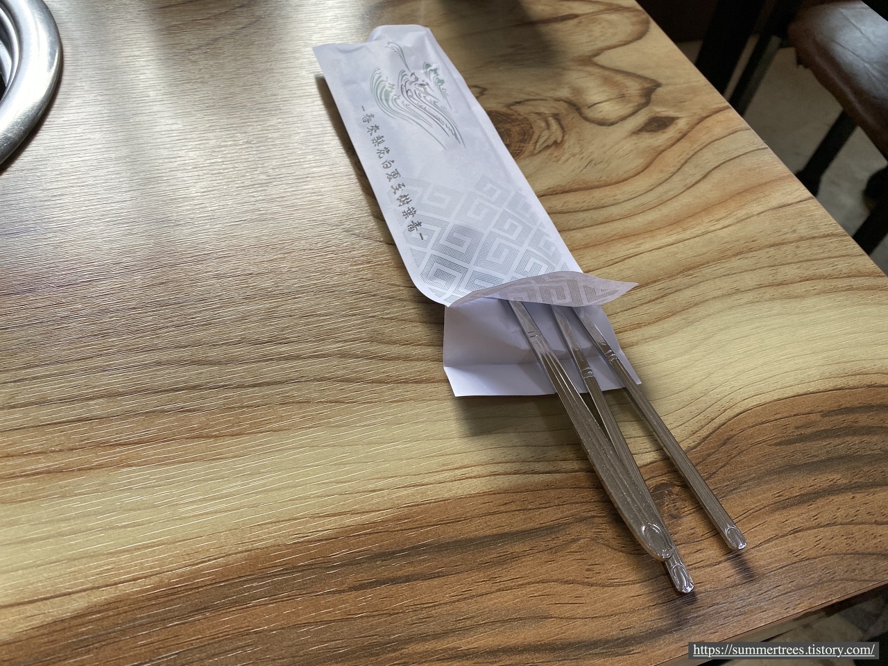 코로나시대에 맞게 수저를 종이포장해서 내놓는 게 센스 있다.