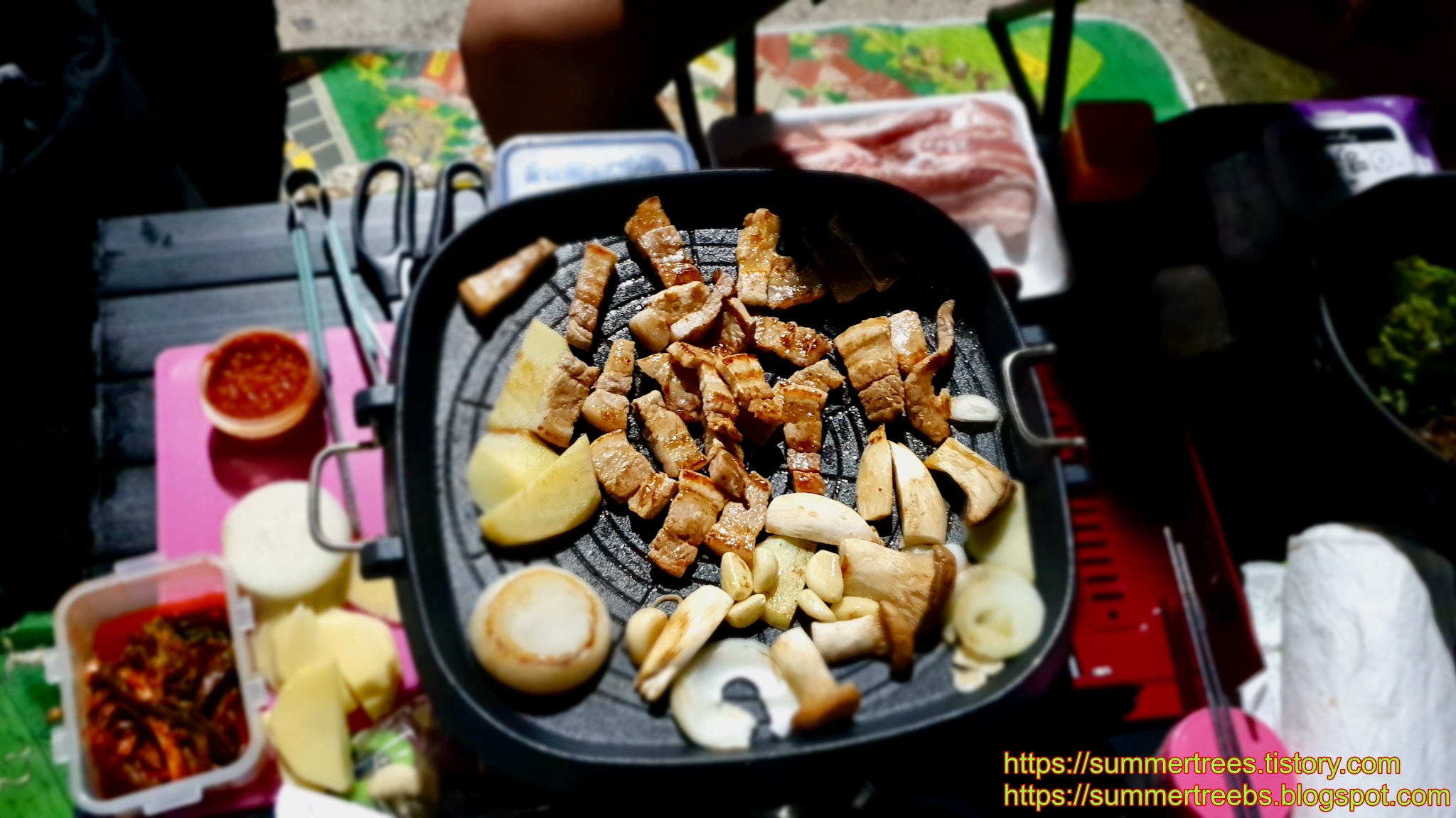 저녁에는 방파제에서 삼겹살을 구워 먹었다.