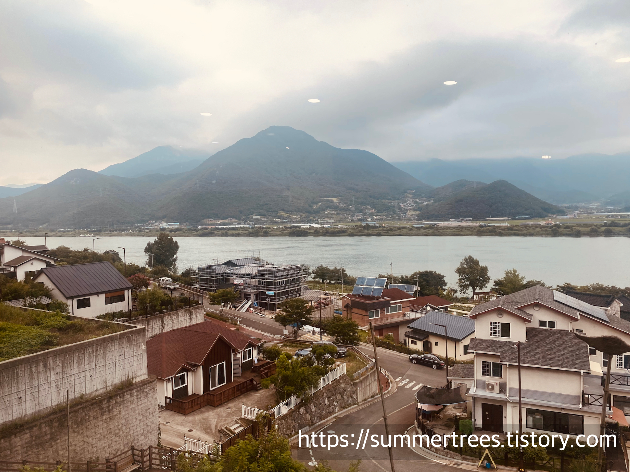 전망은 낙동강을 근사하게 바라볼 수 있을 정도로 좋다.