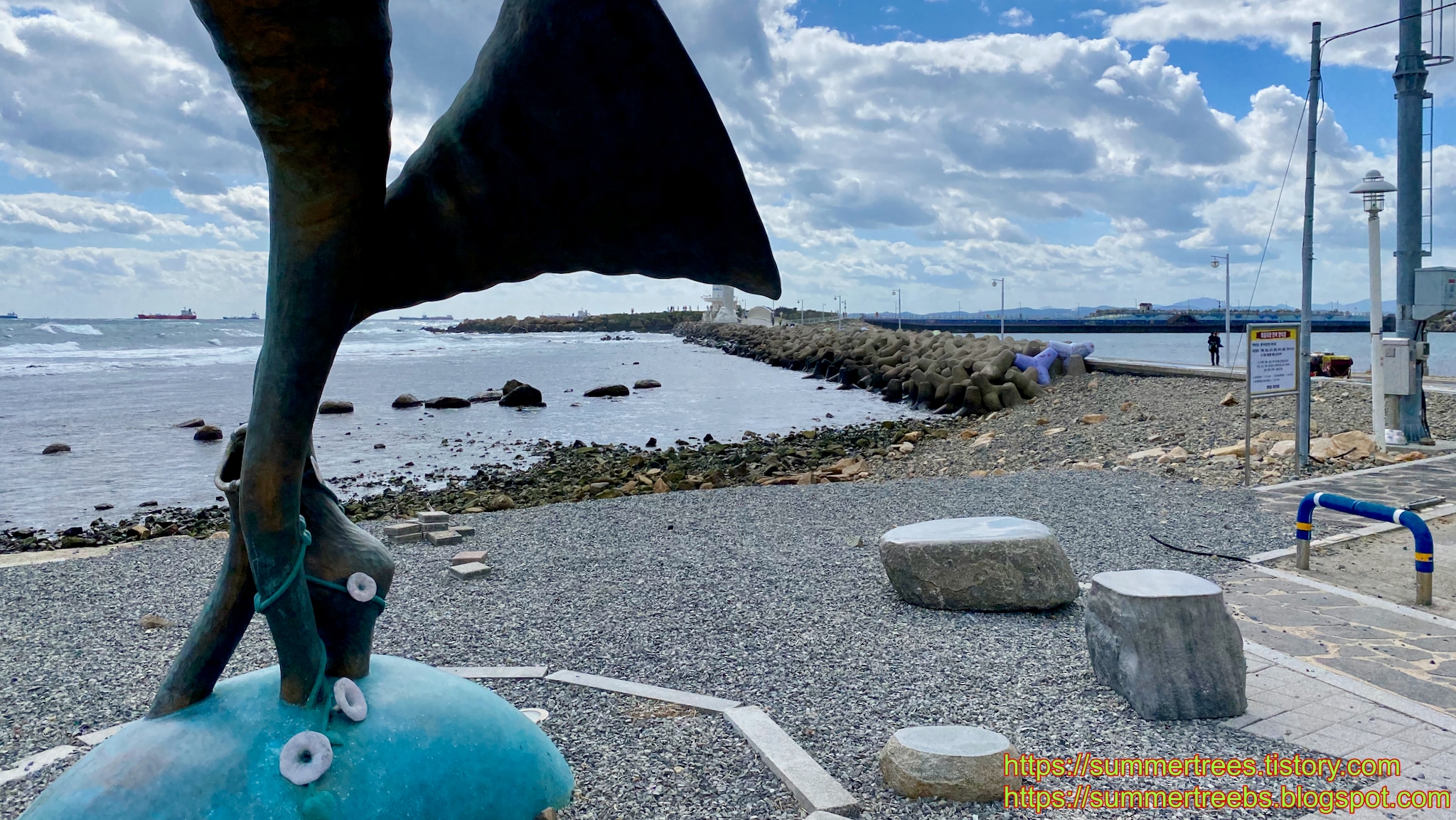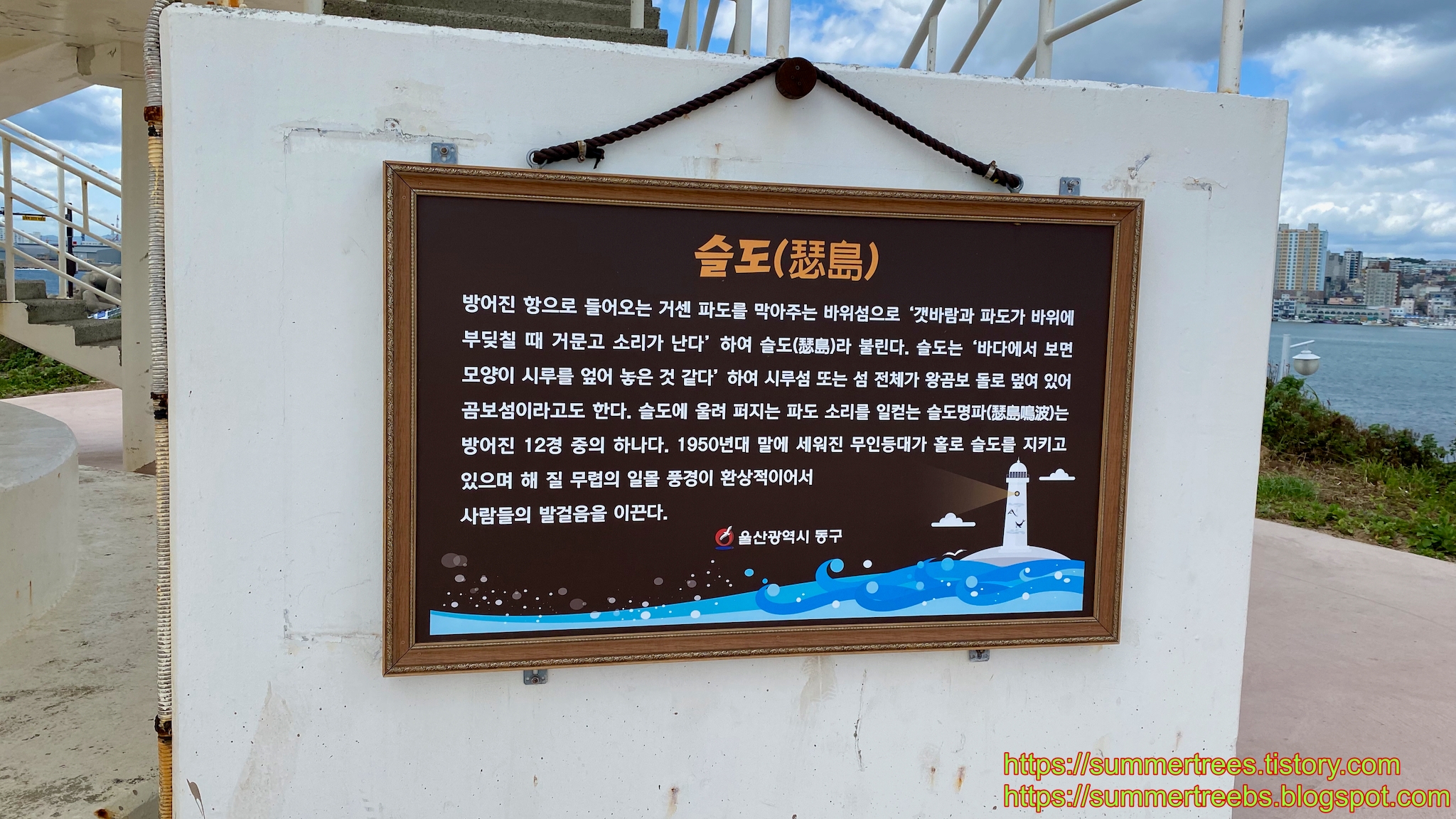 슬도는 울산 방어진항 옆의 작은 동진항과 이어져 있는 암초같은 바위섬인데, 방파제로 육지와 연결되어 있다.