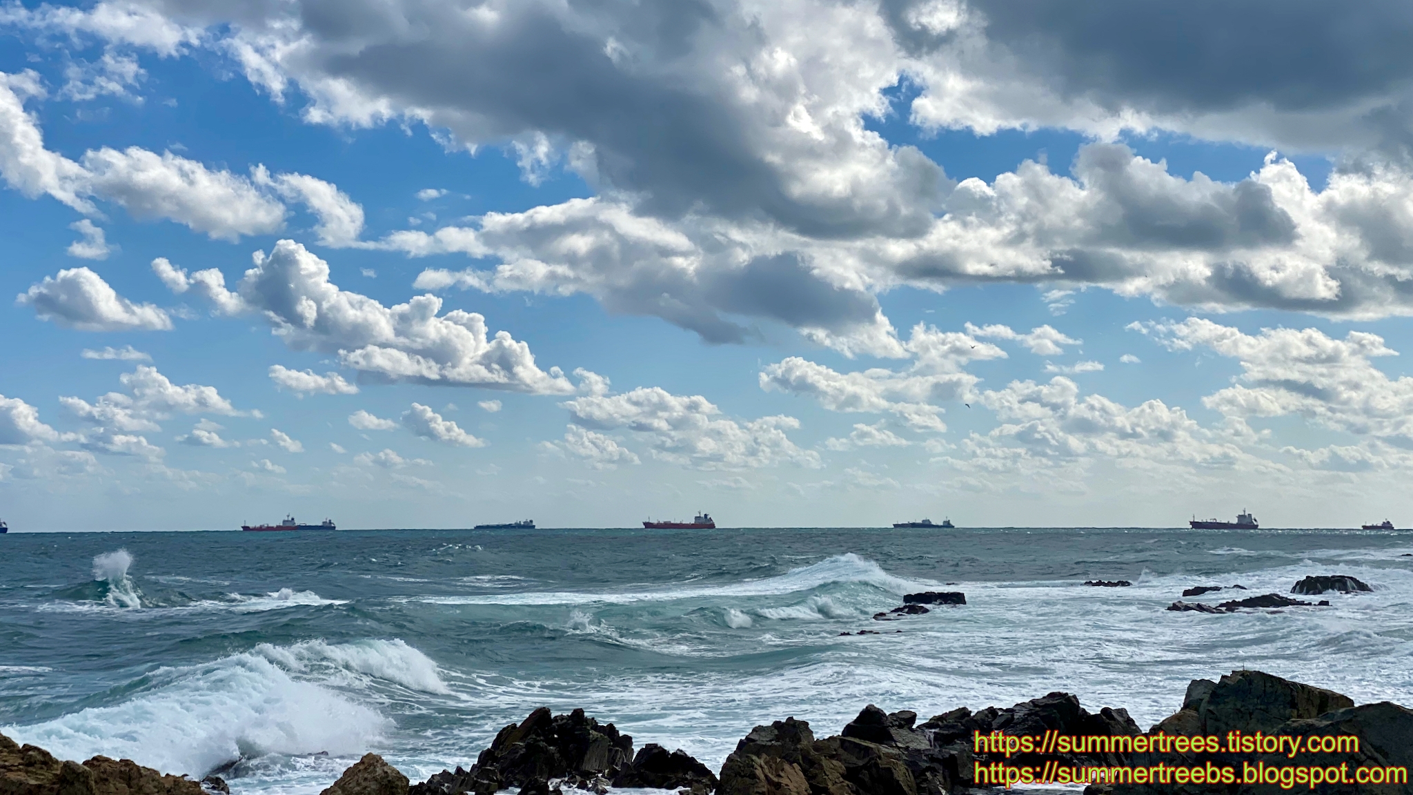 오후엔 햇볕이 좋아 구름과 파도가 더 예뻤다.