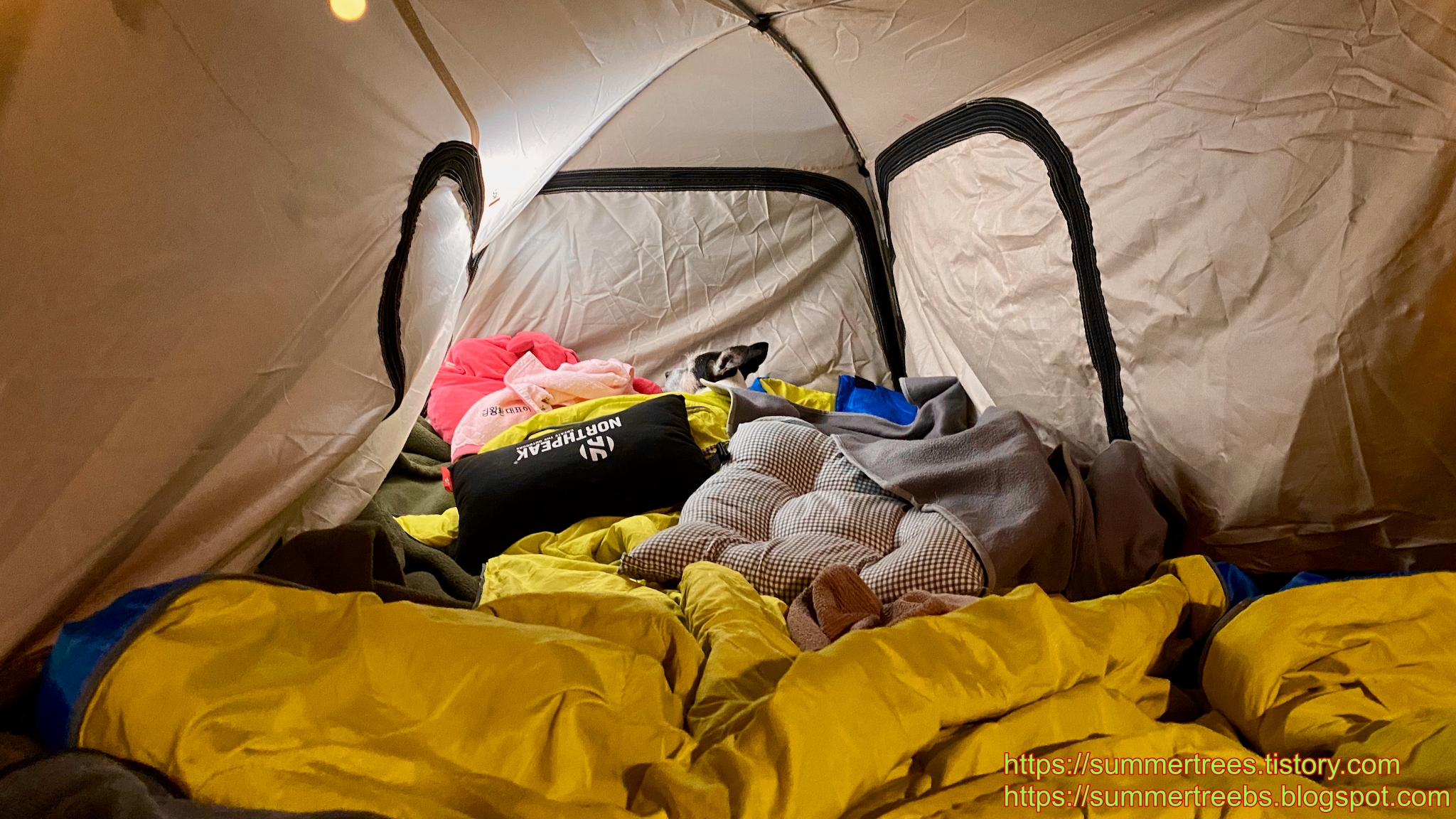 밤에 추울까봐 이너텐트를 치다 술김에 폴대를 부러뜨려 버렸다.