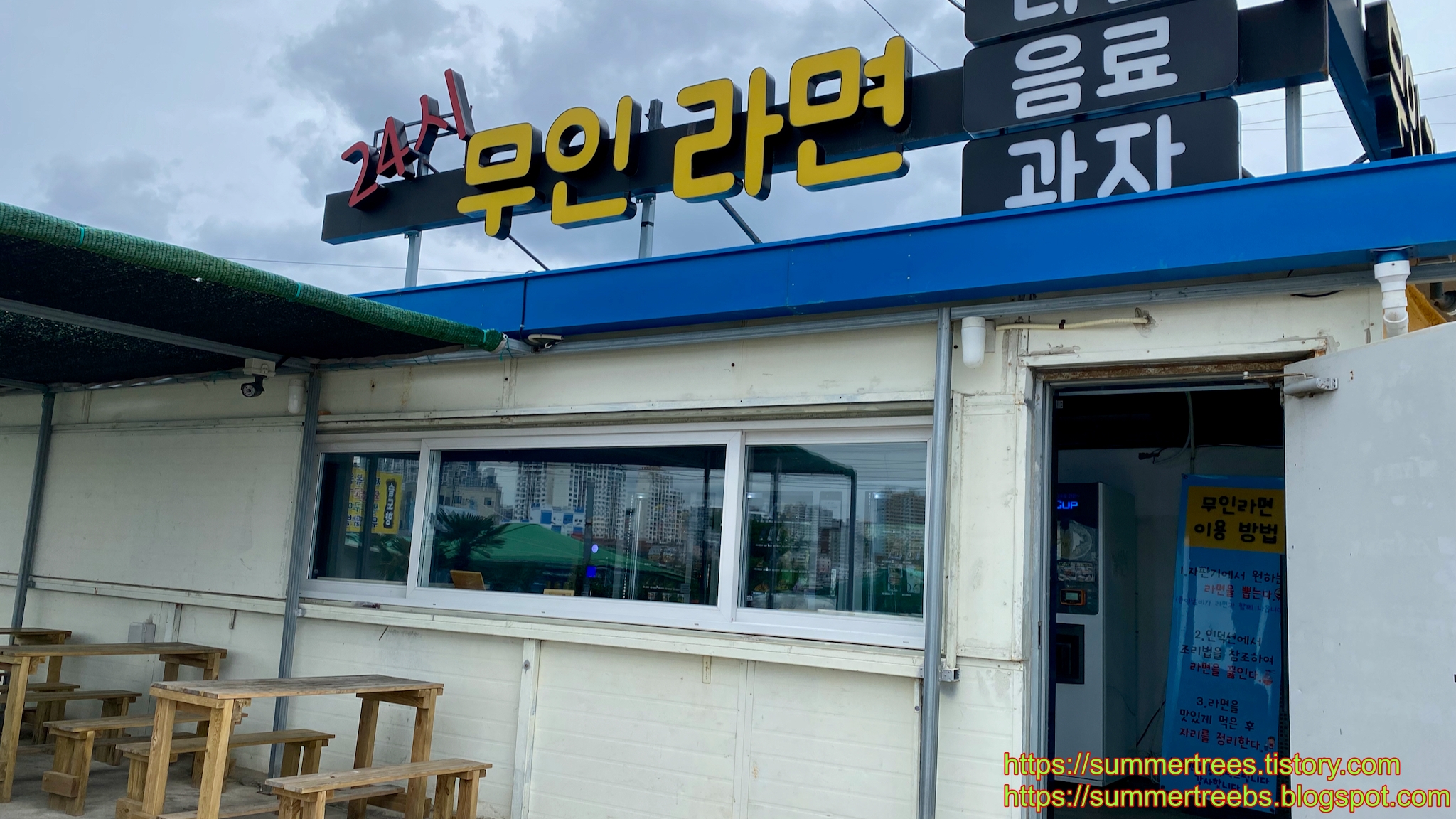 주차장 바로 앞에 널찍한 테라스가 있는 무인라면집이 있는데, 아침을 간단히 해결할 수 있어 편리했다.