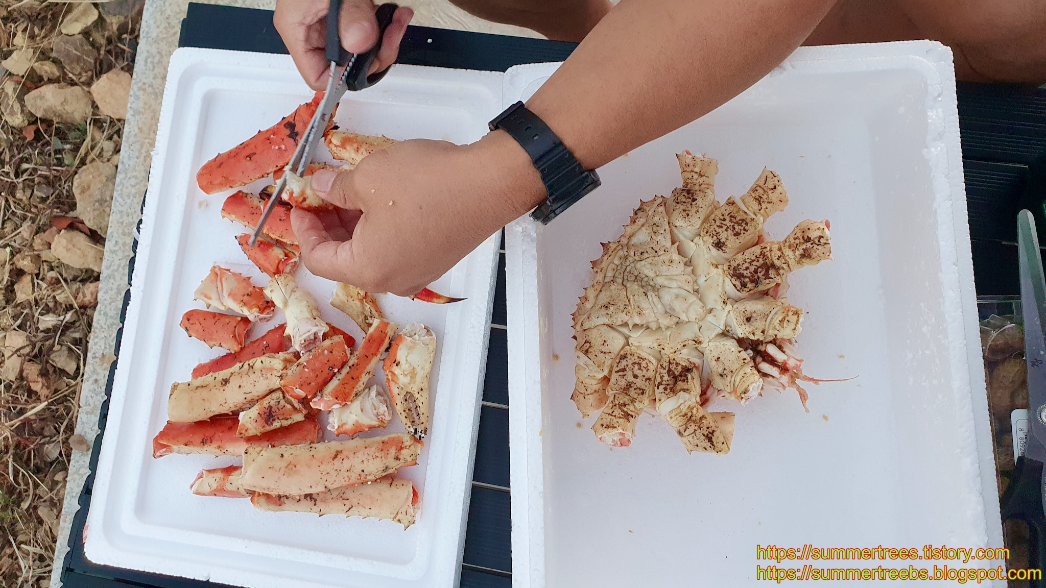 집에서 쪄 온 킹크랩으로 저녁 식사
