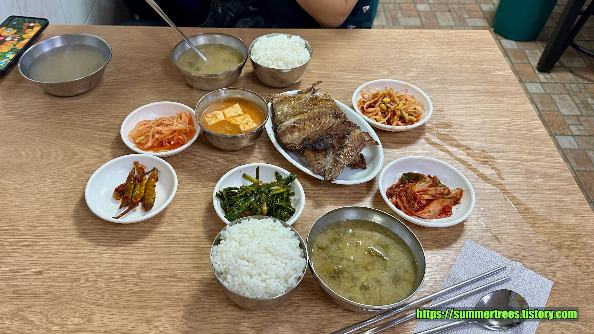 23/8/14일 현재는 무한리필 불가하다는 글은 여전히 남아있지만 기본량이 다른 식당과 비교가 되지 않게 많다. 아래 두 점 접시사진은 이제 유효하지 않다. 고등어 가격이 폭등했을 때 잠시 그랬다.