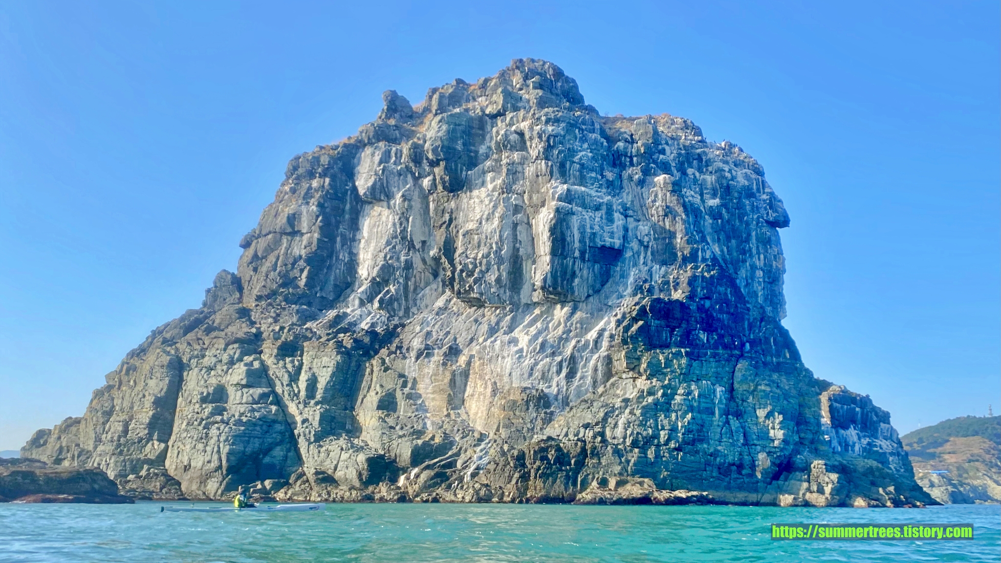 두 섬이 가깝지만 바위의 색깔이 달라 신기하다.