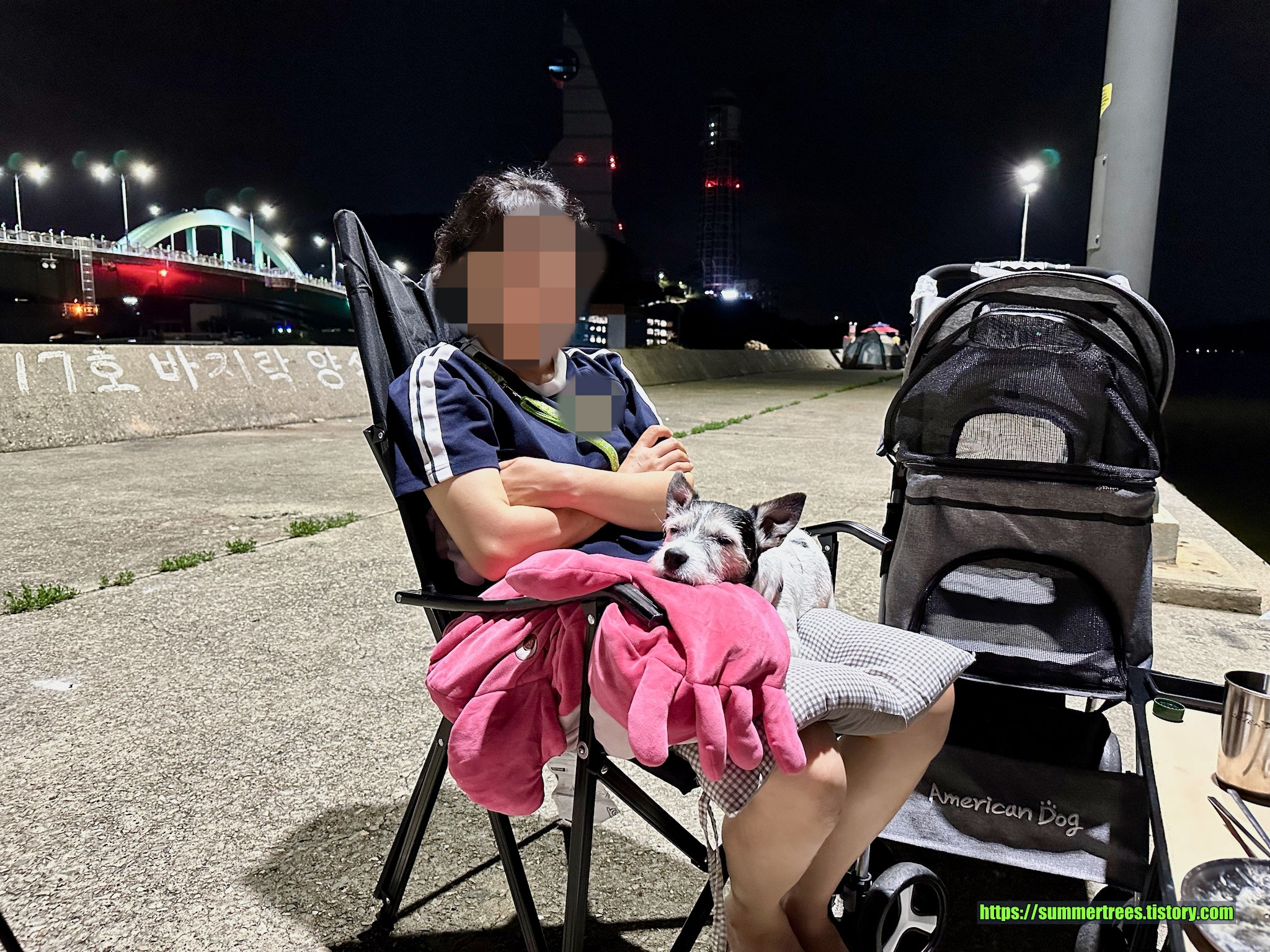 강아지 유모차 덕에 편했는데, 마야는 그래도 무릎 위가 편한 모양.
