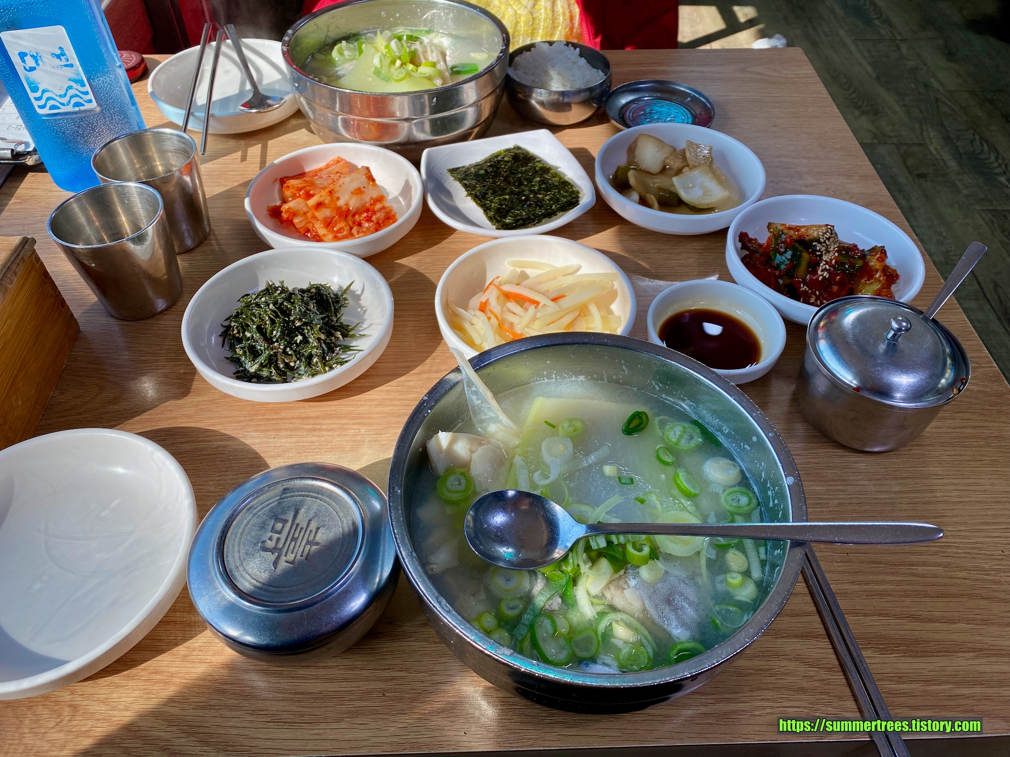설렁탕집은 깍두기가 흥행을 좌우하듯이, 강한 양념이 없는 대구탕과 어울리는 반찬을 잘 내어야 맛있다란 생각이 들기 마련. 여기는 무난한 반찬들이라 달맞이 고개 뷰를 감상하면서 먹는 재미가 있다.