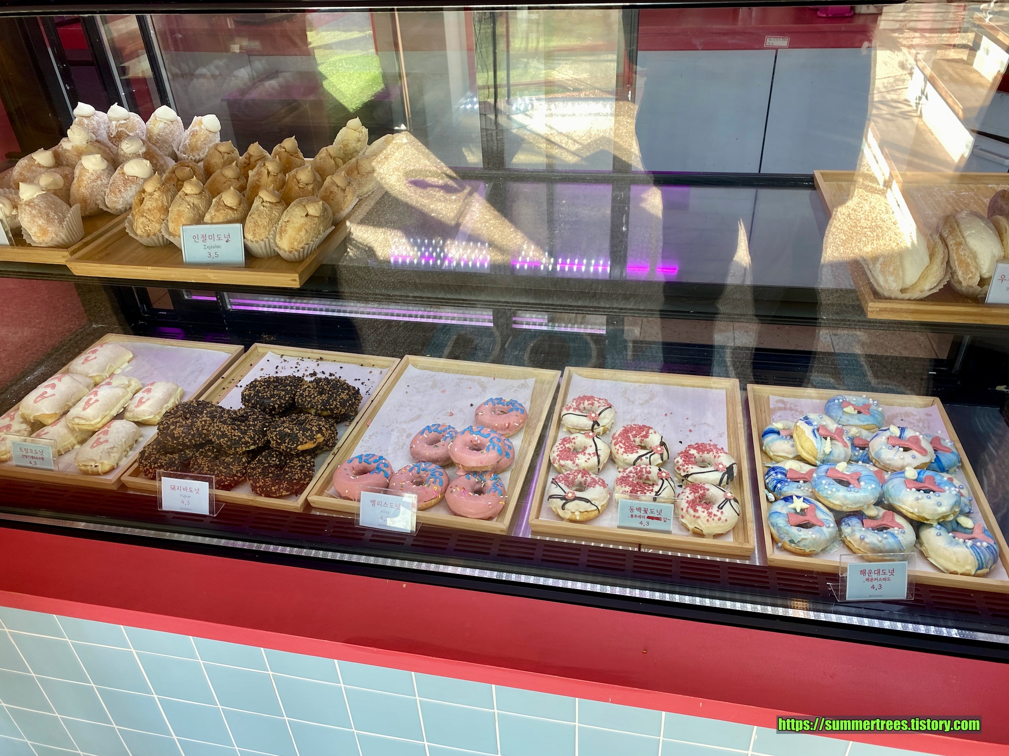 다양한 도넛이 있고 야외 테이블까지 있어 반려견과 함께 청사포항을 바라보며 달콤한 맛을 즐기기 좋다.