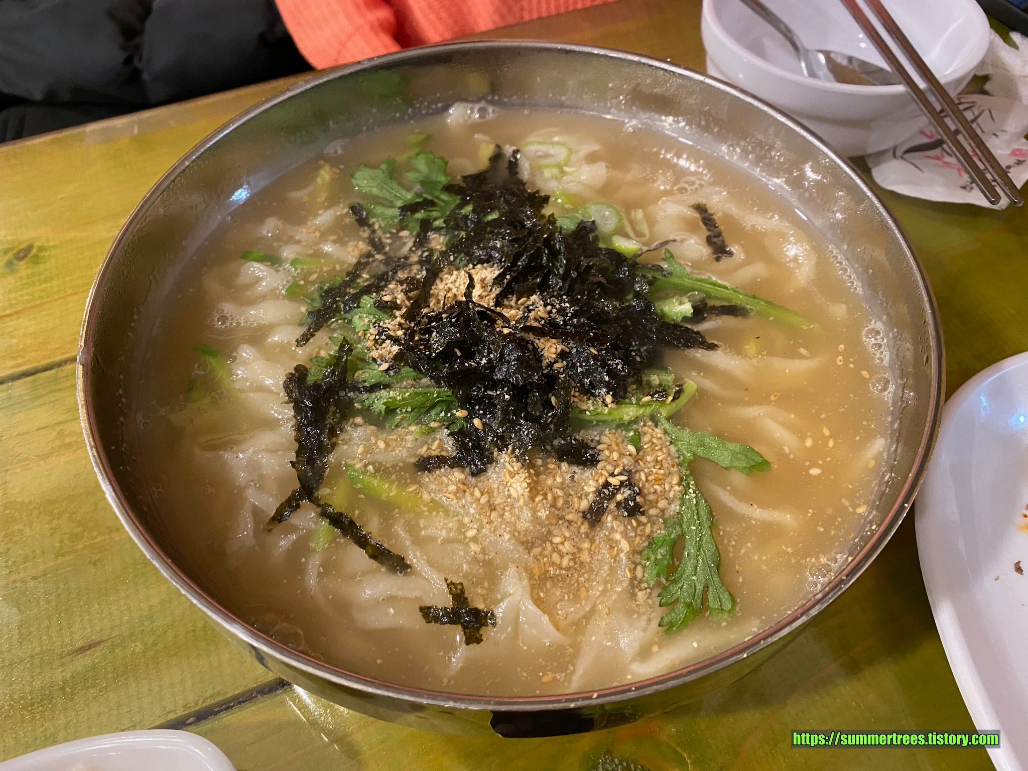그런데 손칼국수의 육수가 건새우베이스 같은데 아주 맛있다. 기본적으로 음식을 맛있게 만들 줄 아는 사람들이다.