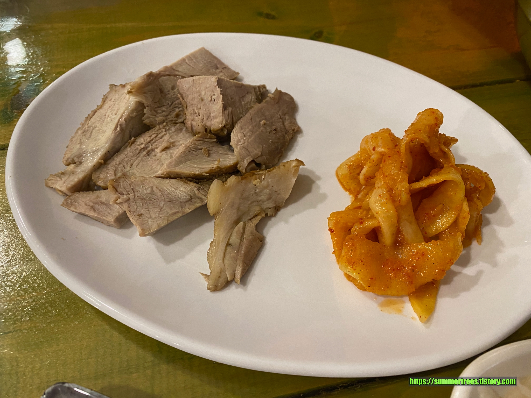 맛보기수육을 시켰다. 기본으로 나오는 수육의 2 배 정도 양이다.