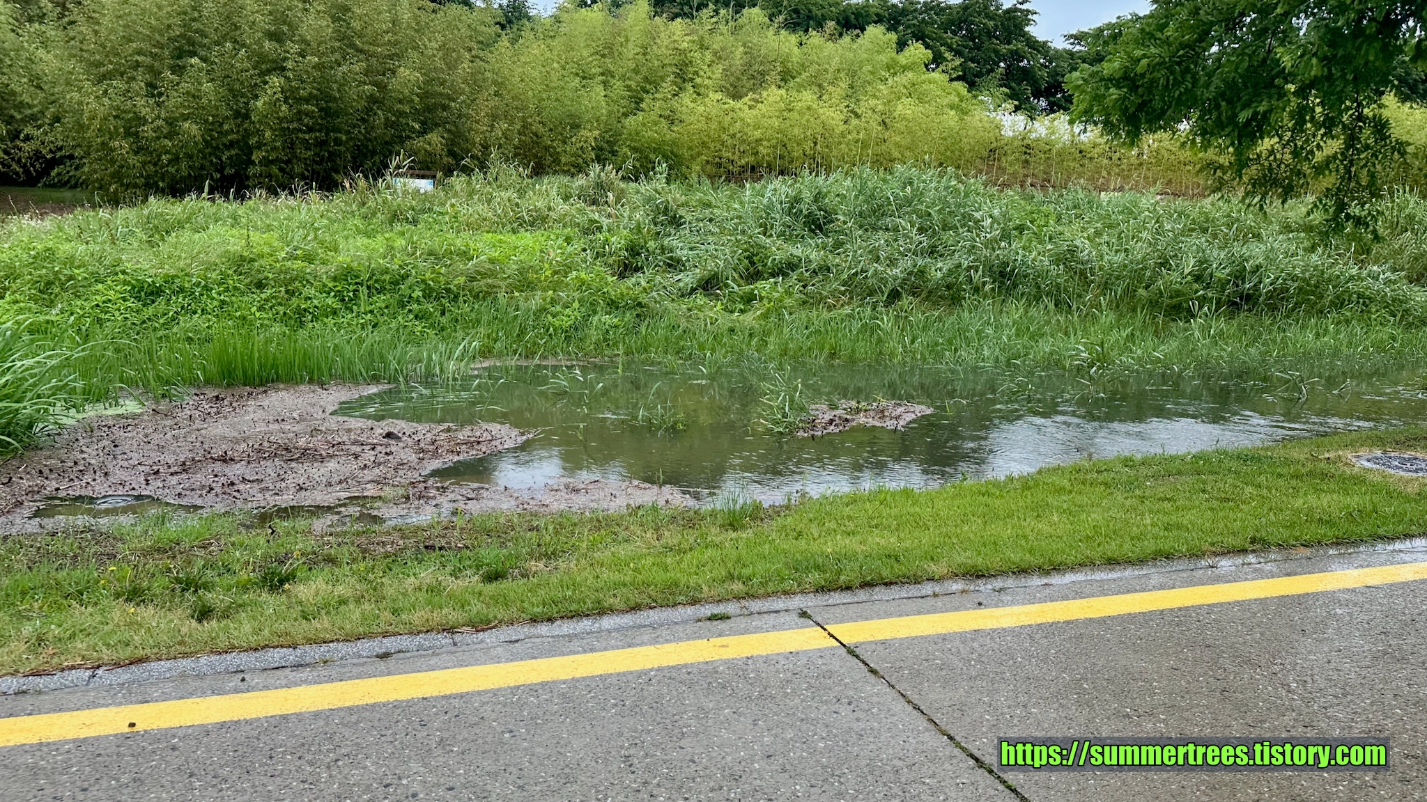 도로 양쪽의 개울에 물이 들어찬 것은 처음 봤다.