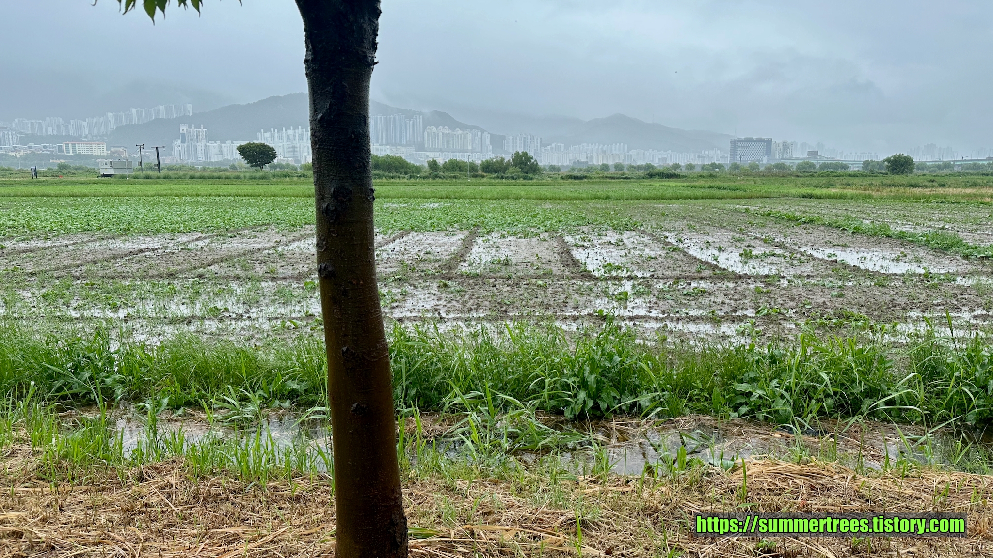 뉴스에서 부산에 100년 만에 큰 비가 내렸다고 했다. 밤새 내려서 실감을 못했는데 대저공원을 가서 물에 잠긴 공원을 보니 실감이 났다.