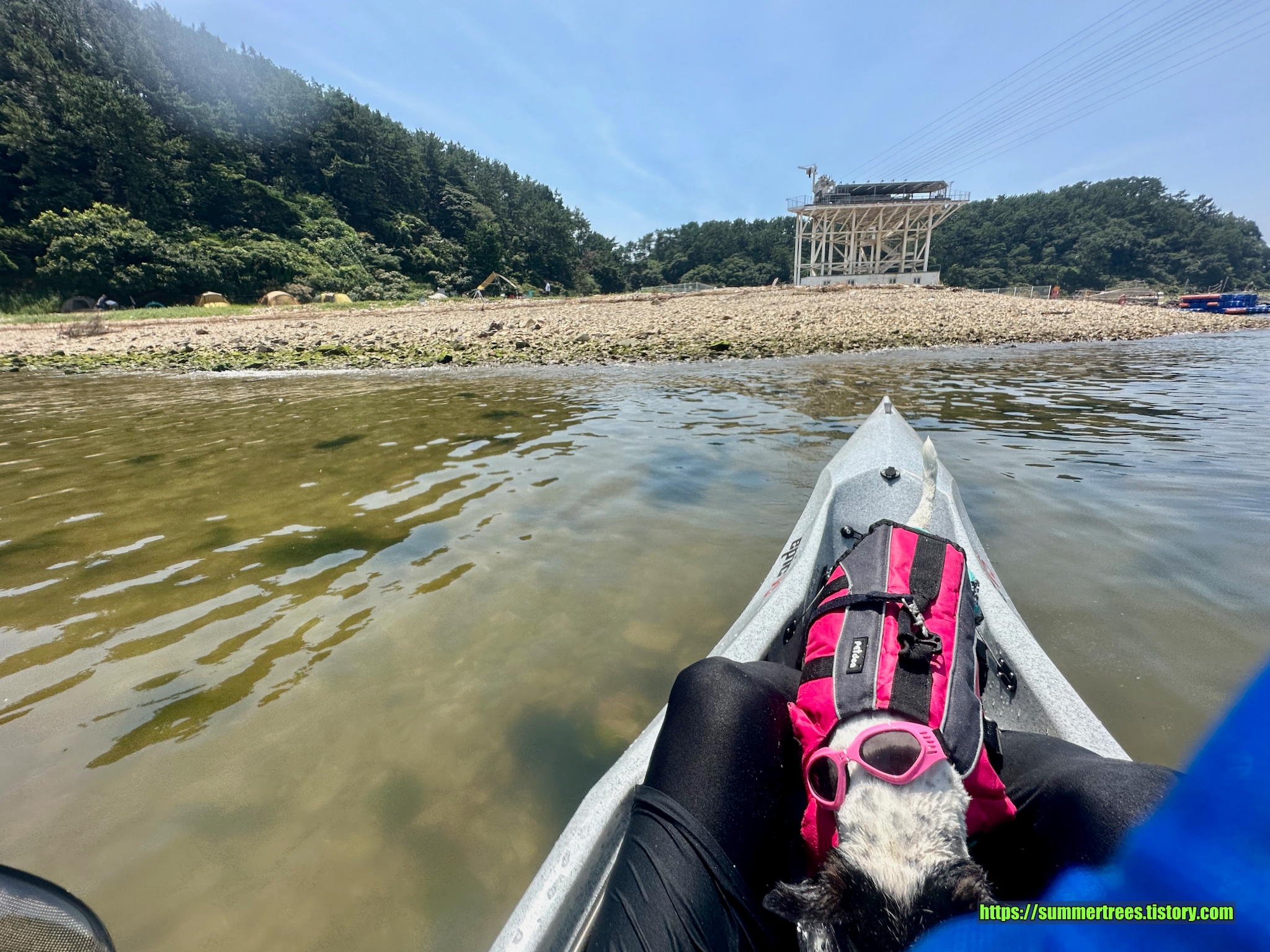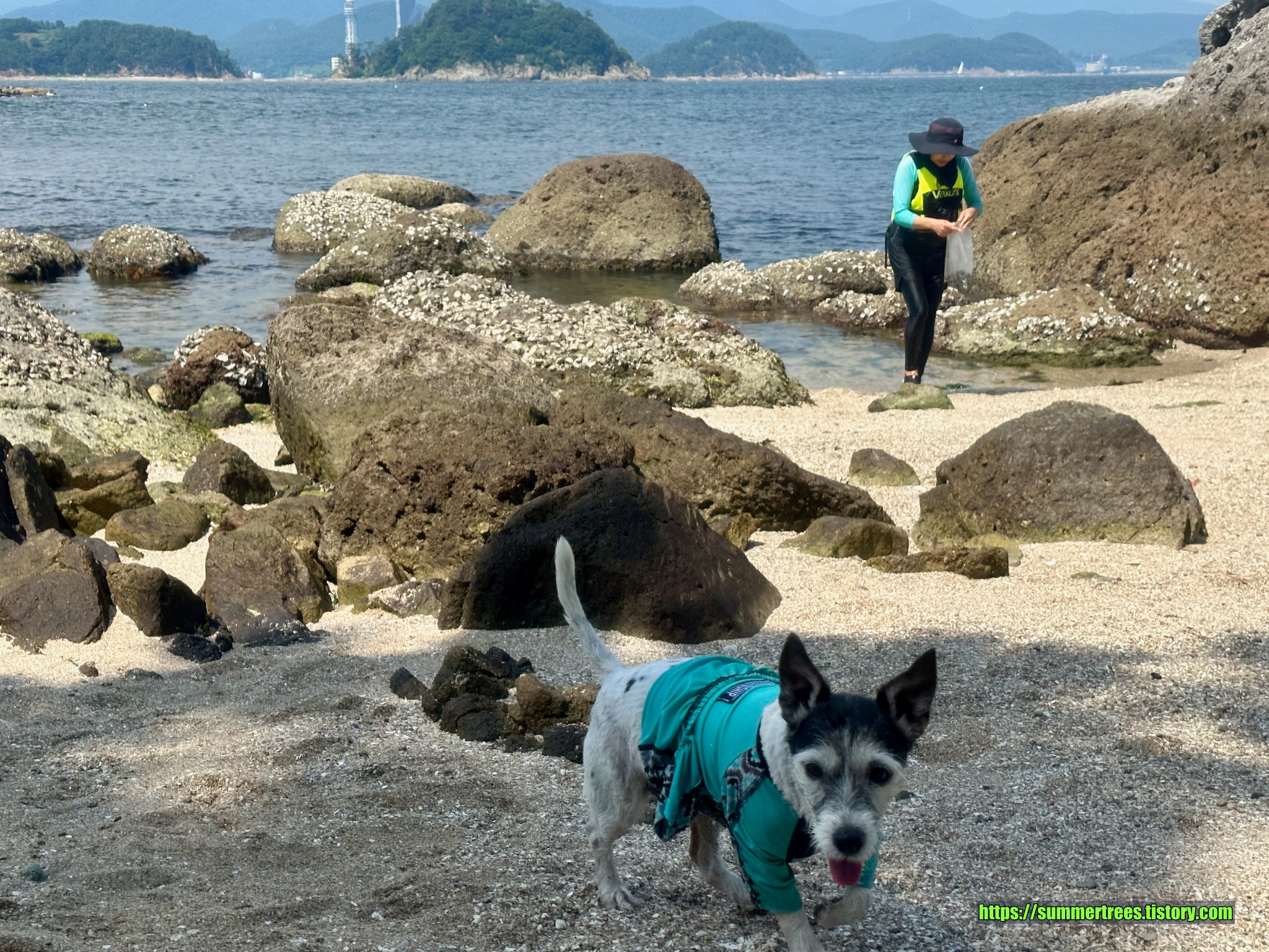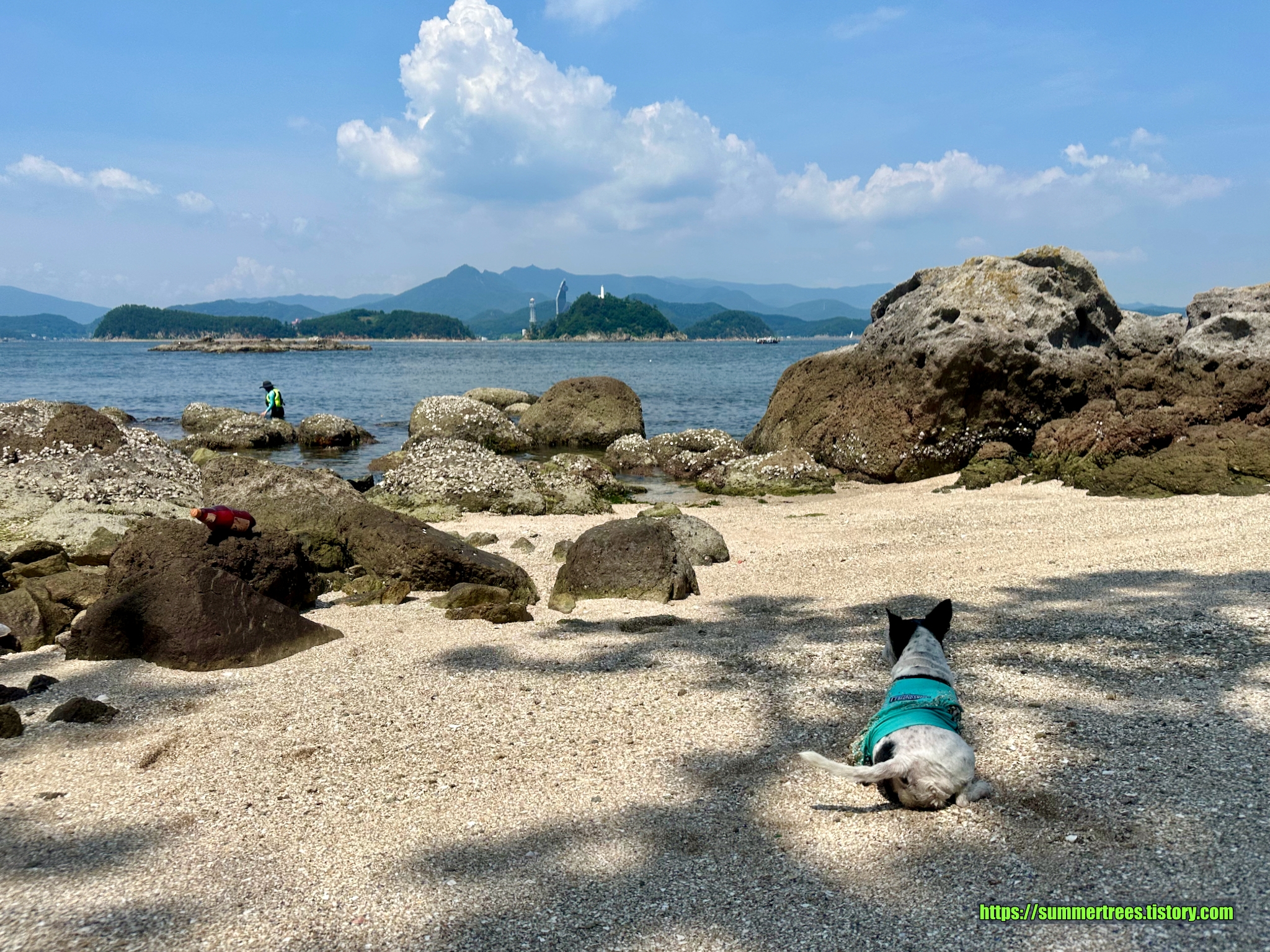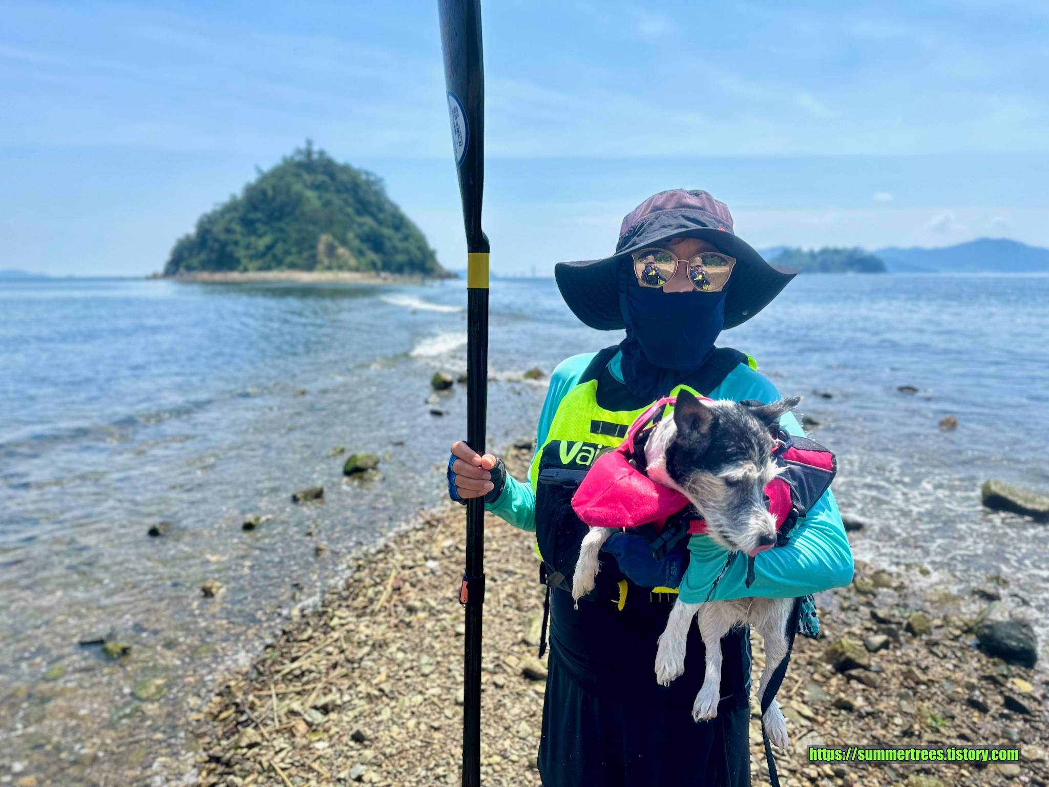 명동항을 출발 후 소쿠리섬까지 가서 소쿠리섬 소쿠리랑 인사. 소쿠리는 물에 트라우마가 있어 수영을 싫어한댄다.