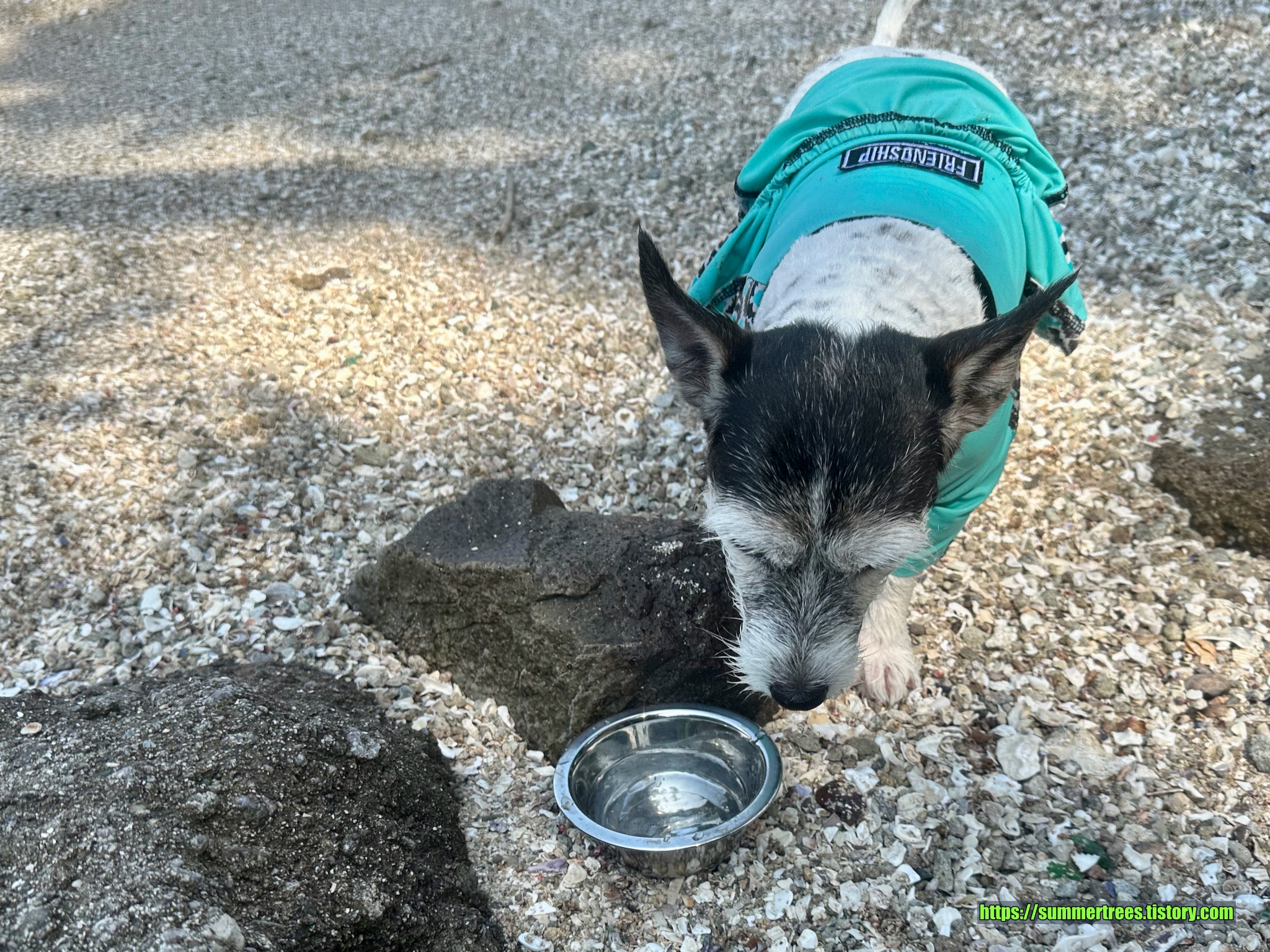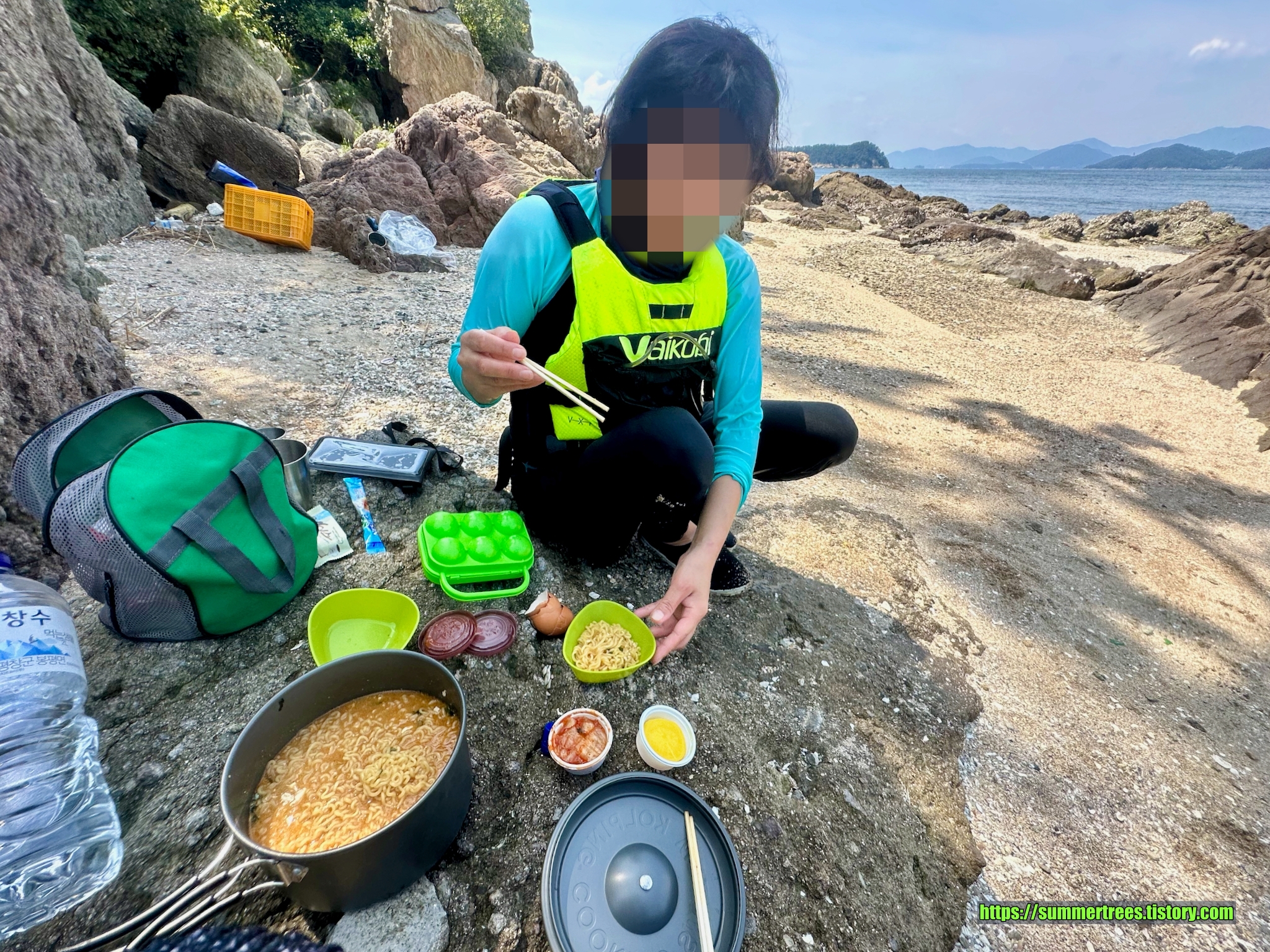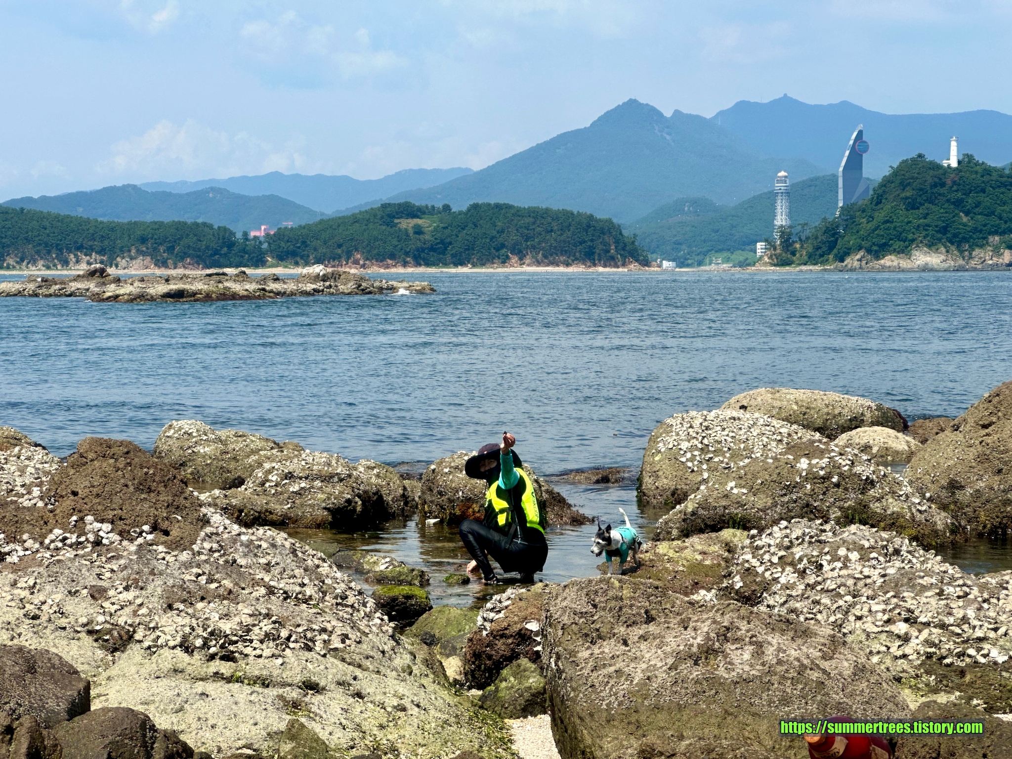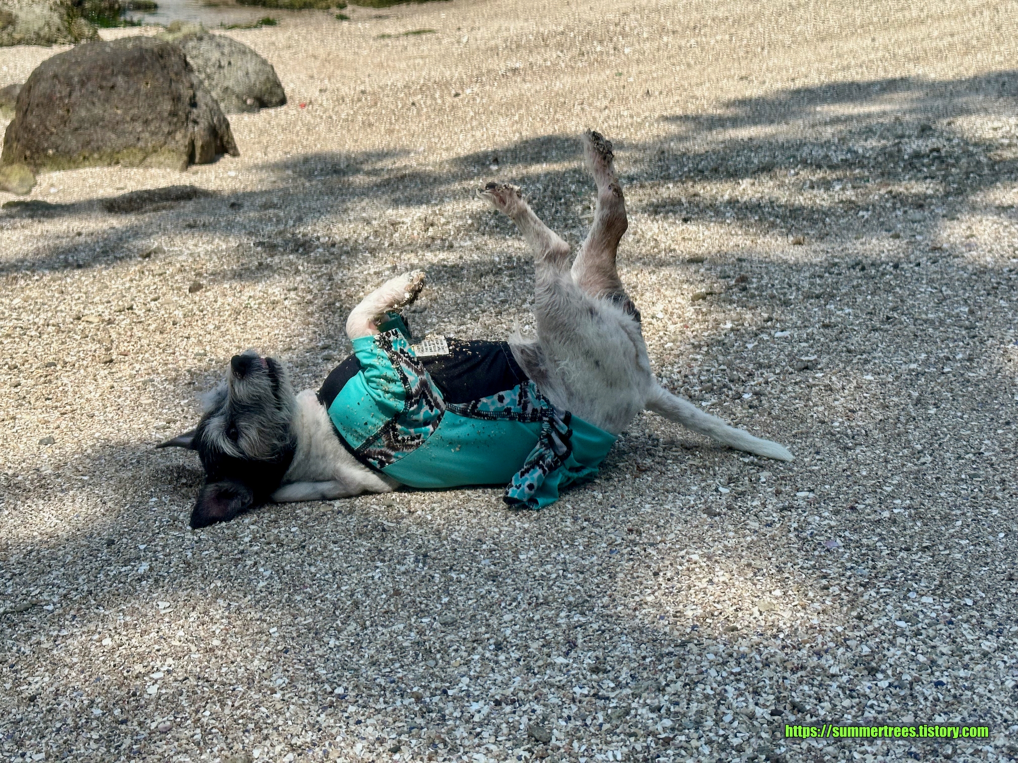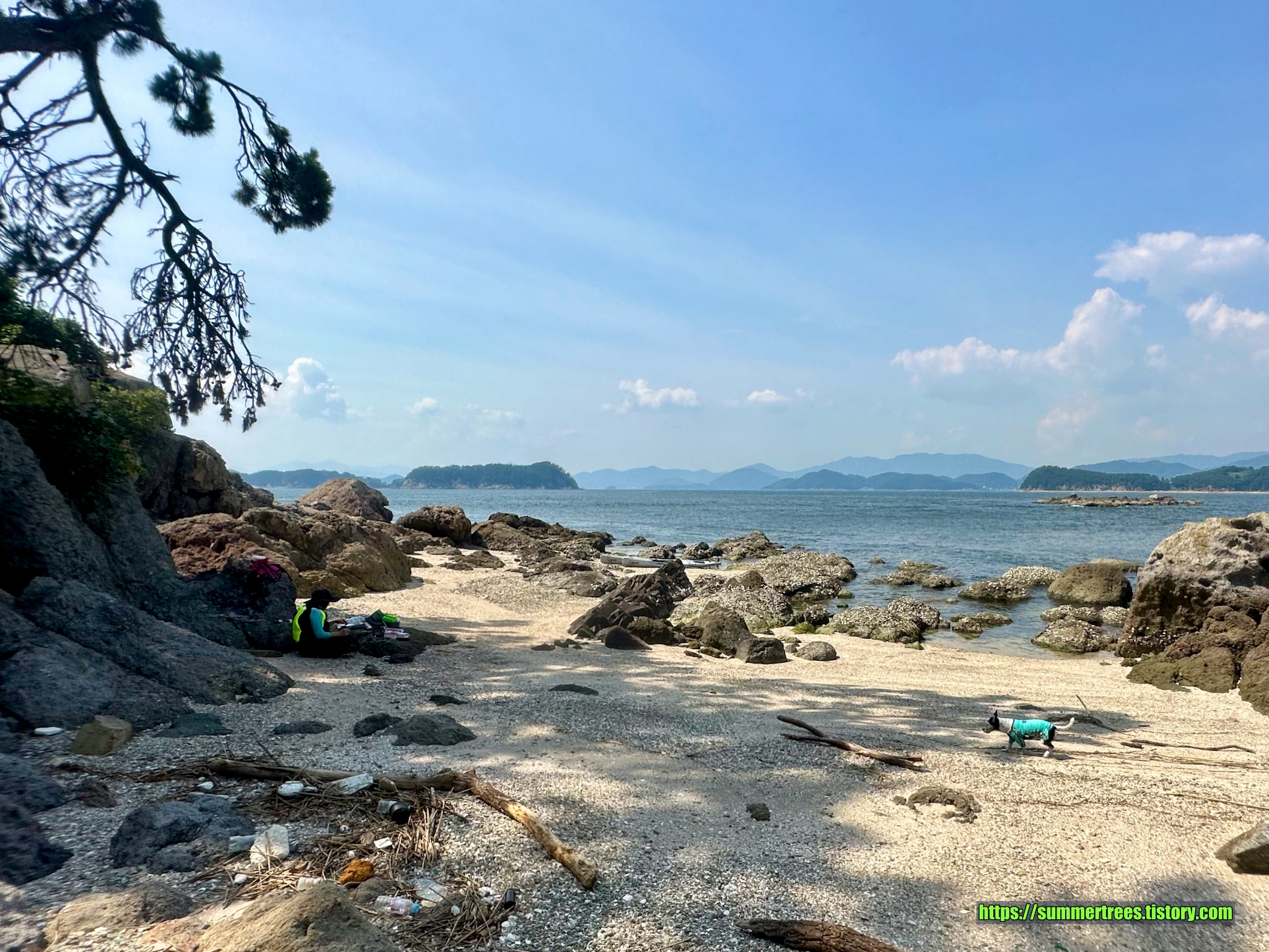 명동항을 출발 후 소쿠리섬까지 가서 소쿠리섬 소쿠리랑 인사. 소쿠리는 물에 트라우마가 있어 수영을 싫어한댄다.