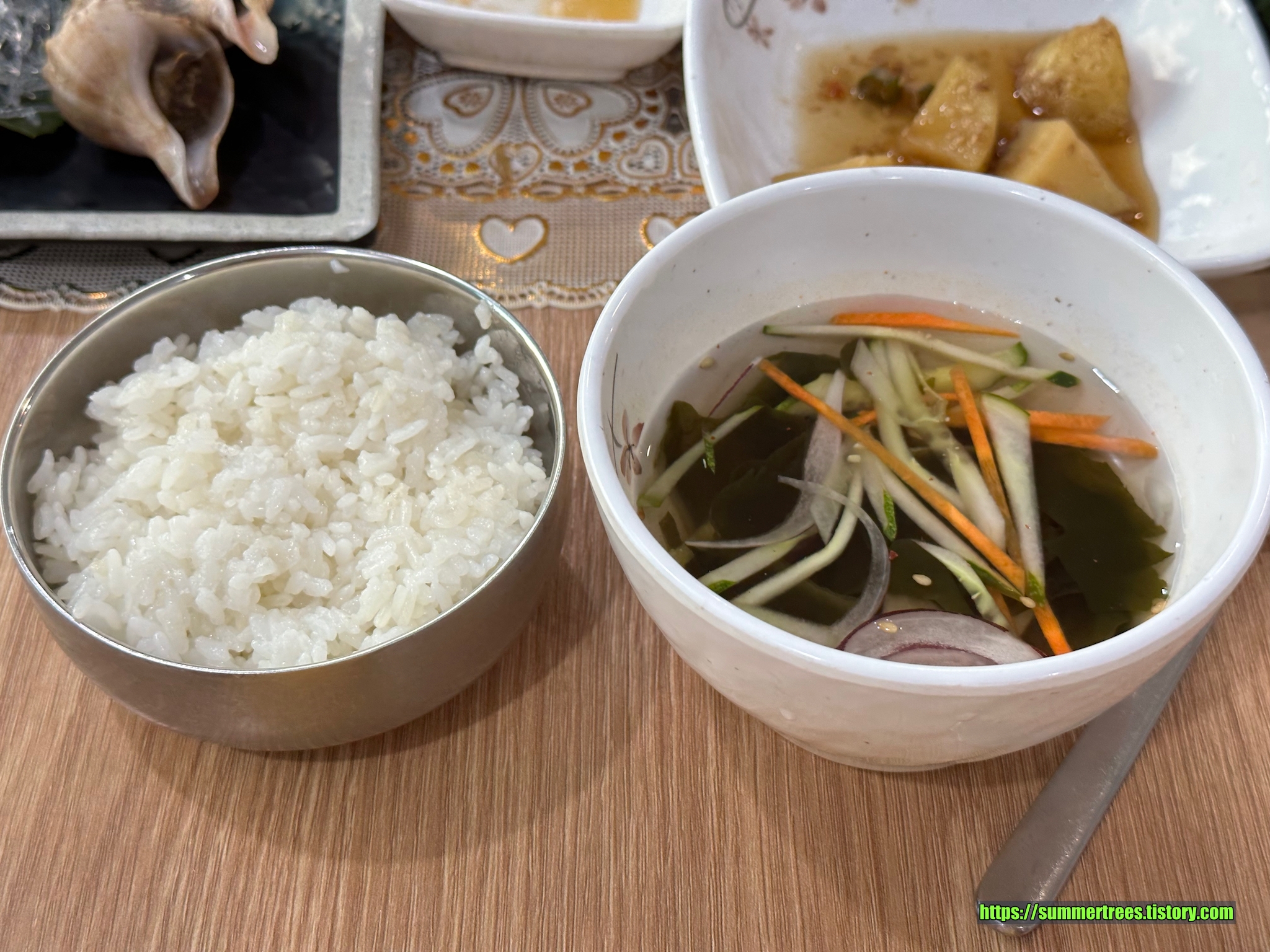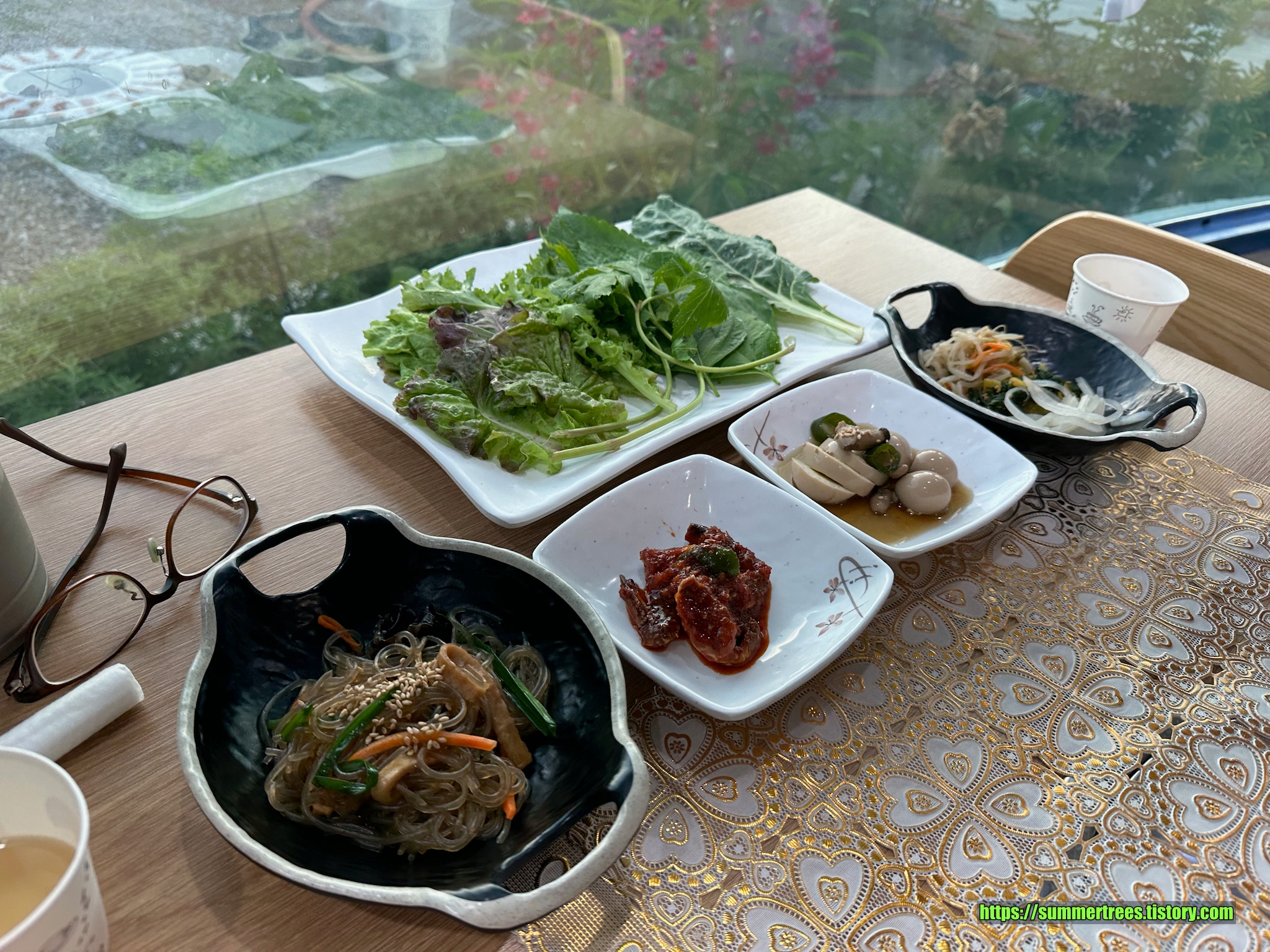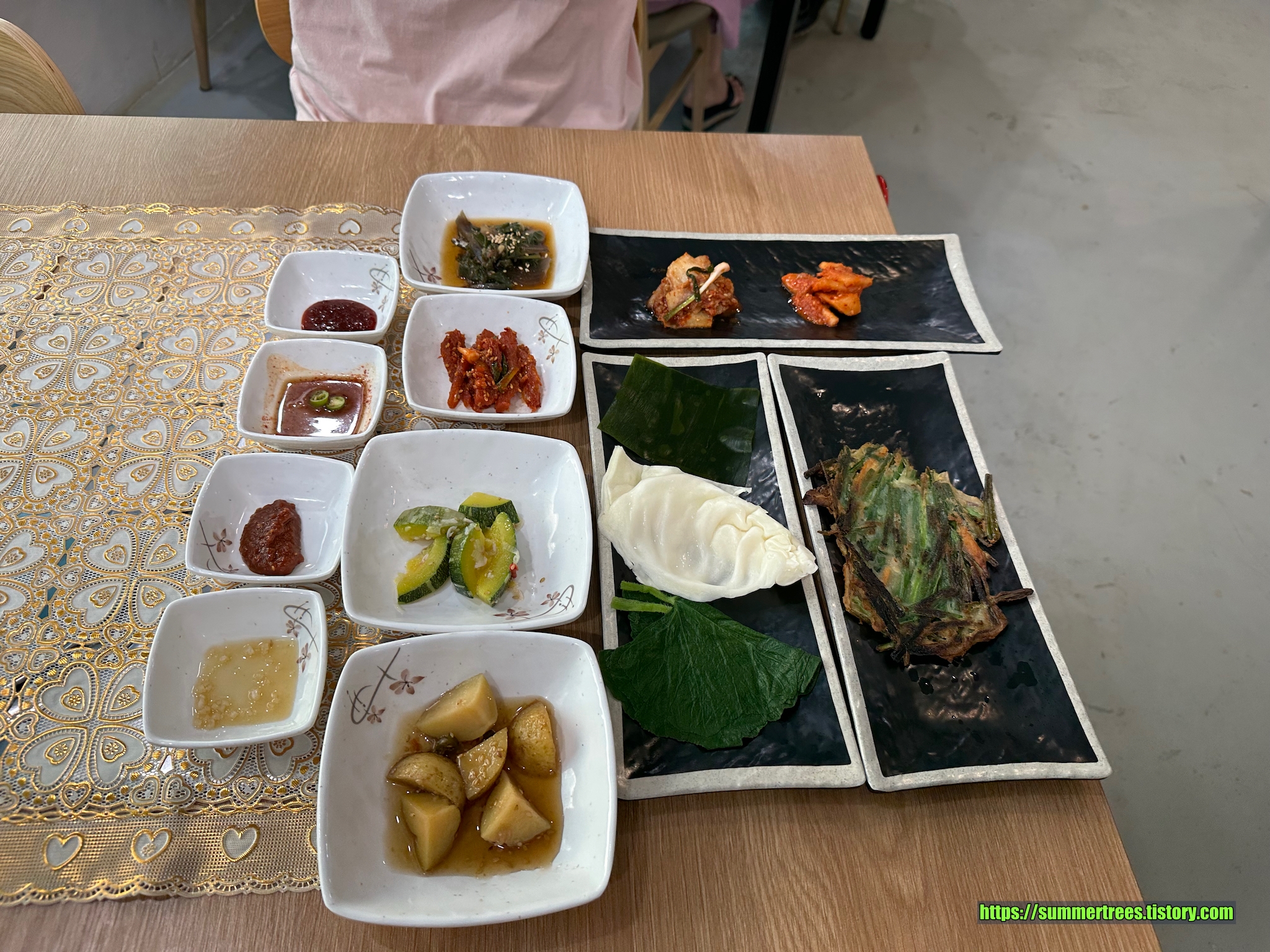 콩나물과 배추, 무우나물이 같이 나오는 나물반찬도 꽤 맛있었다. 세 가지 나물의 어울림이 좋았다.