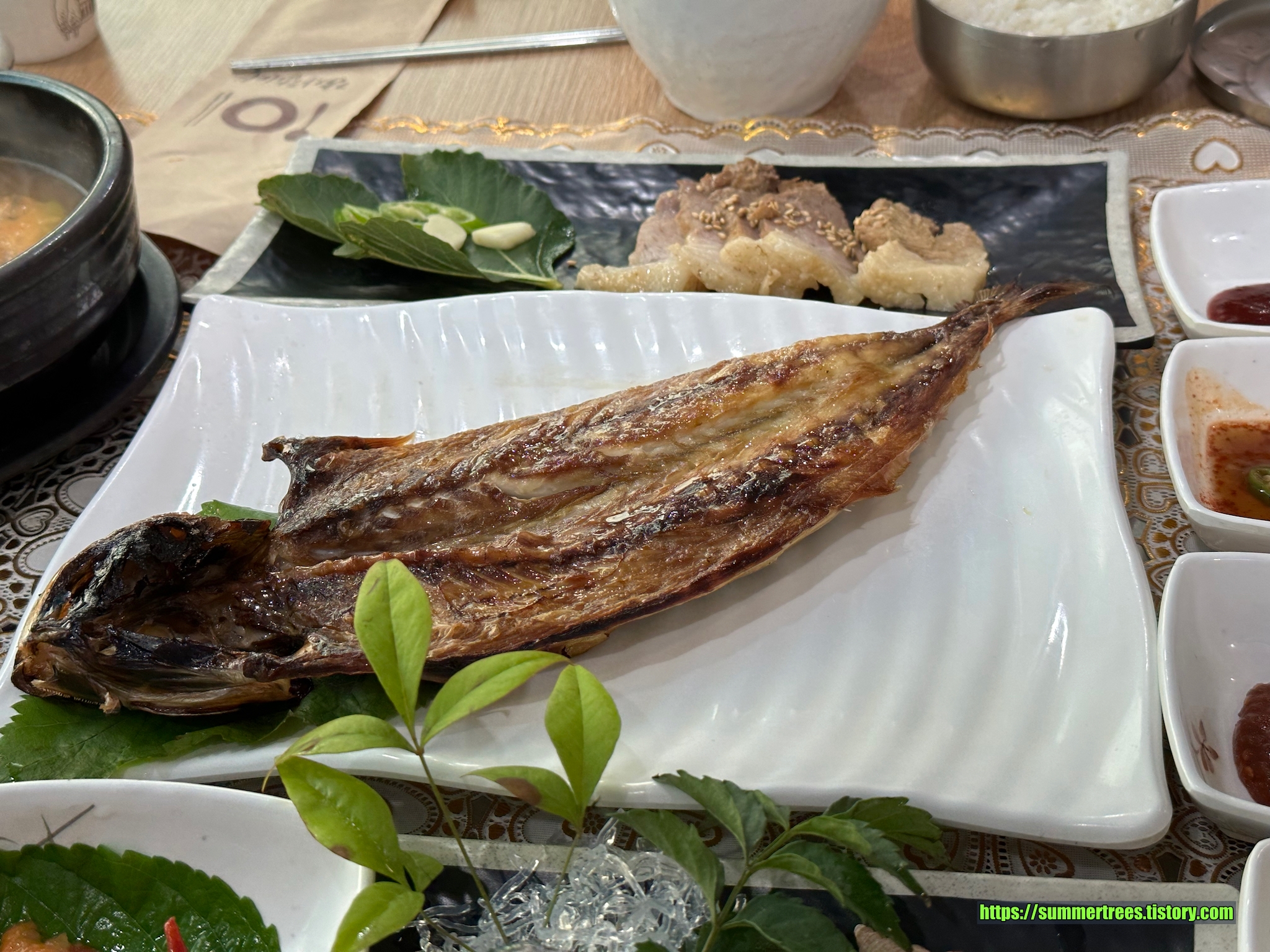 인상적인 음식은 고등어구이였는데, 내가 가 본 고등어구이 전문점보다 더 잘 구워진 듯 느꼈다. 그릴에서 구워져 나오는데 고깃살이 질기지 않으면서 설익지도 않게 딱 적당하게 구워져 나오고 간도 비린내 없이 먹기 좋게 딱 맞춰져있다. 그래서 나온 음식 중 최고가 고등어구이라고 생각한다.