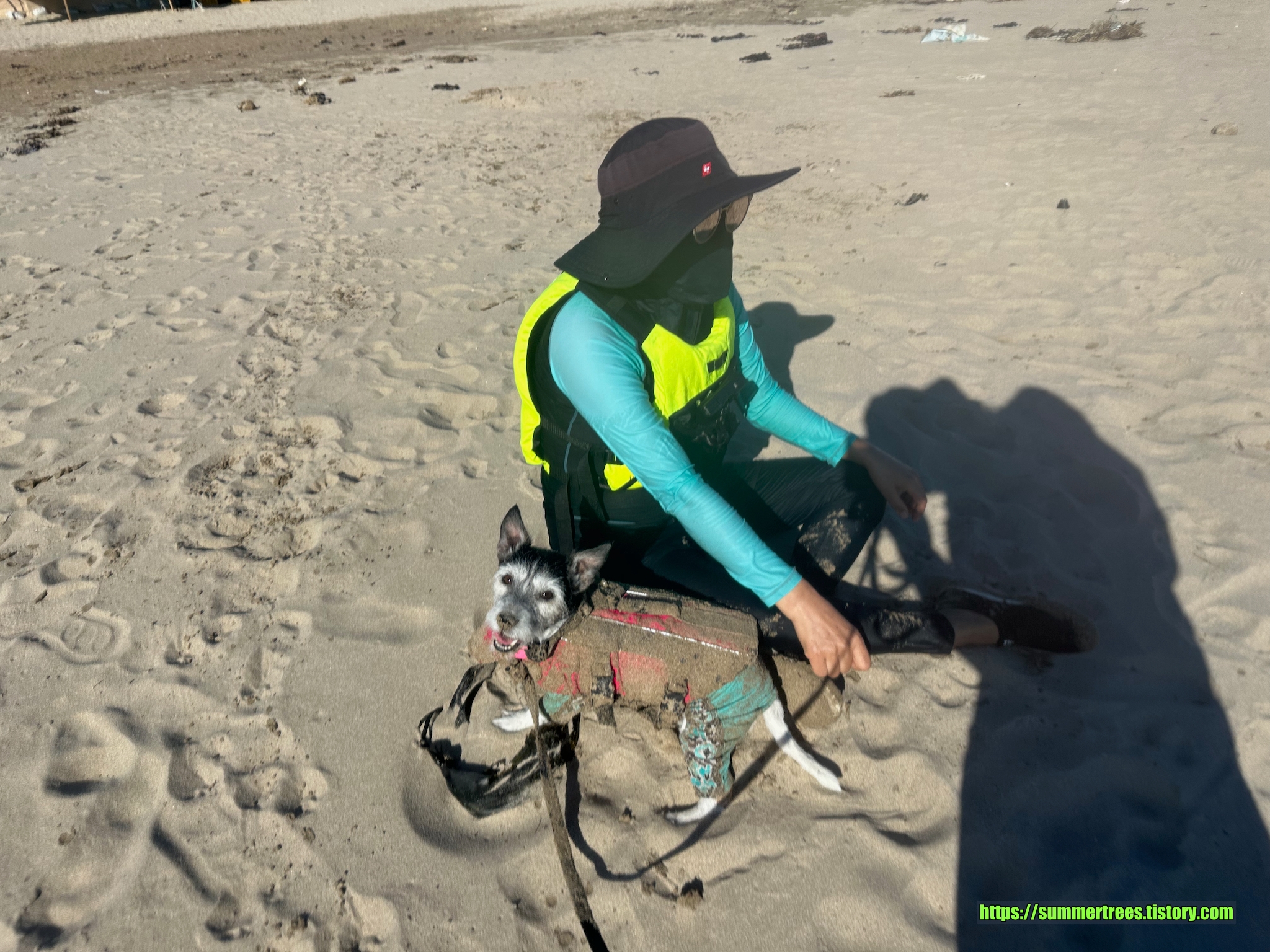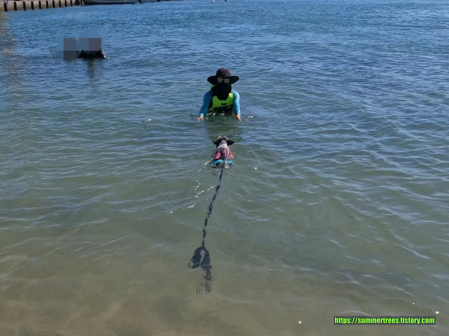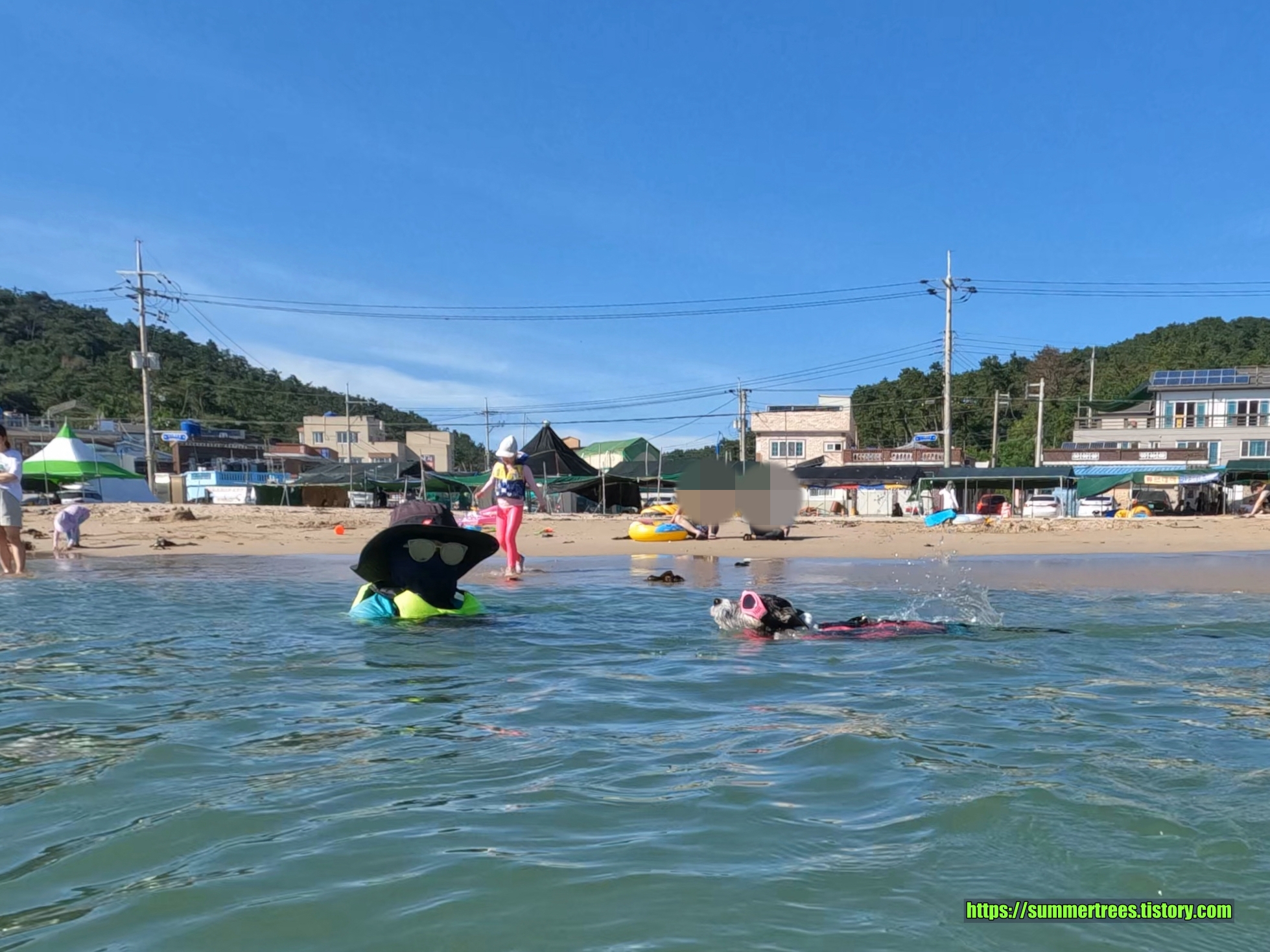 대개 공영해수욕장에서는 반려견 출입금지라서 마야와 함께 해수욕이 불가한데, 여기는 공식적인 해수욕장이 아니라서 마야와 함께 바다에 들어갈 수 있었다. 요즘은 반려견이 많이 늘었으니 공영해수욕장에서도 모래사장 한켠은 반려견용으로 지정을 해줬으면 하는 아쉬움이 있다.