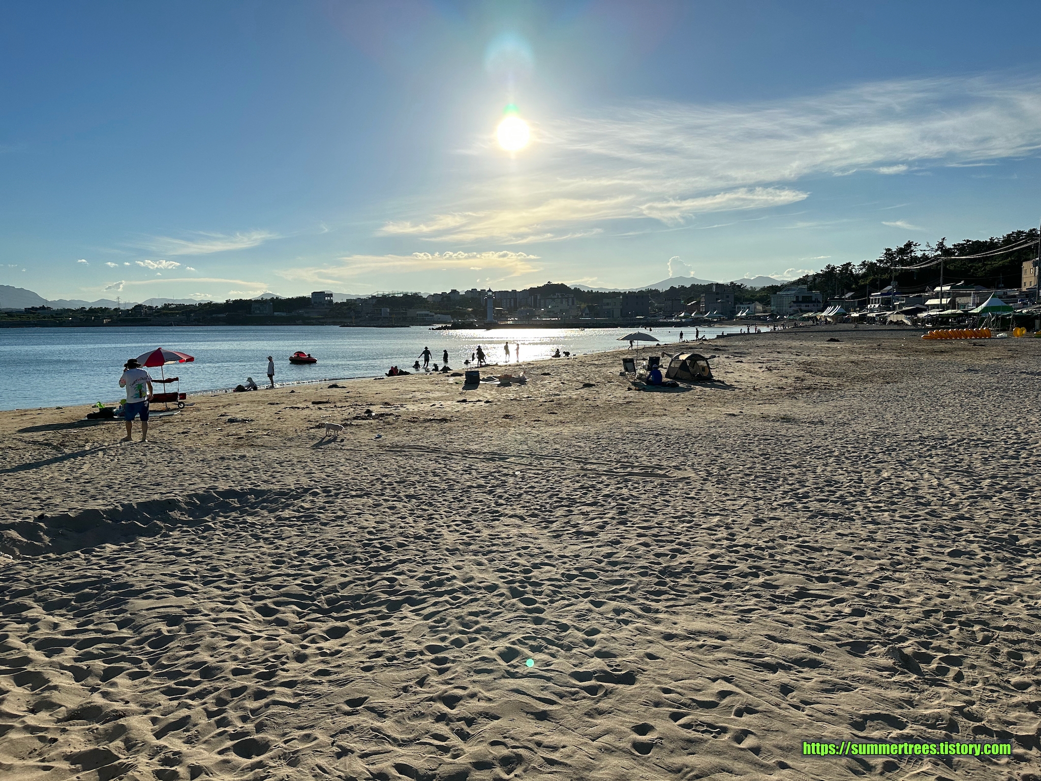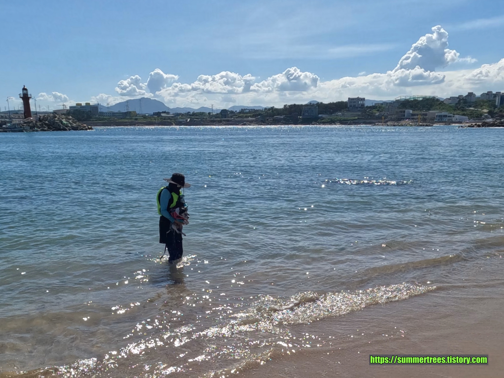 8/6일 현재 아직 남해바다에 비해 바닷물이 찬 편이긴 하지만 해수욕을 하지 못할 정도는 아니었다.