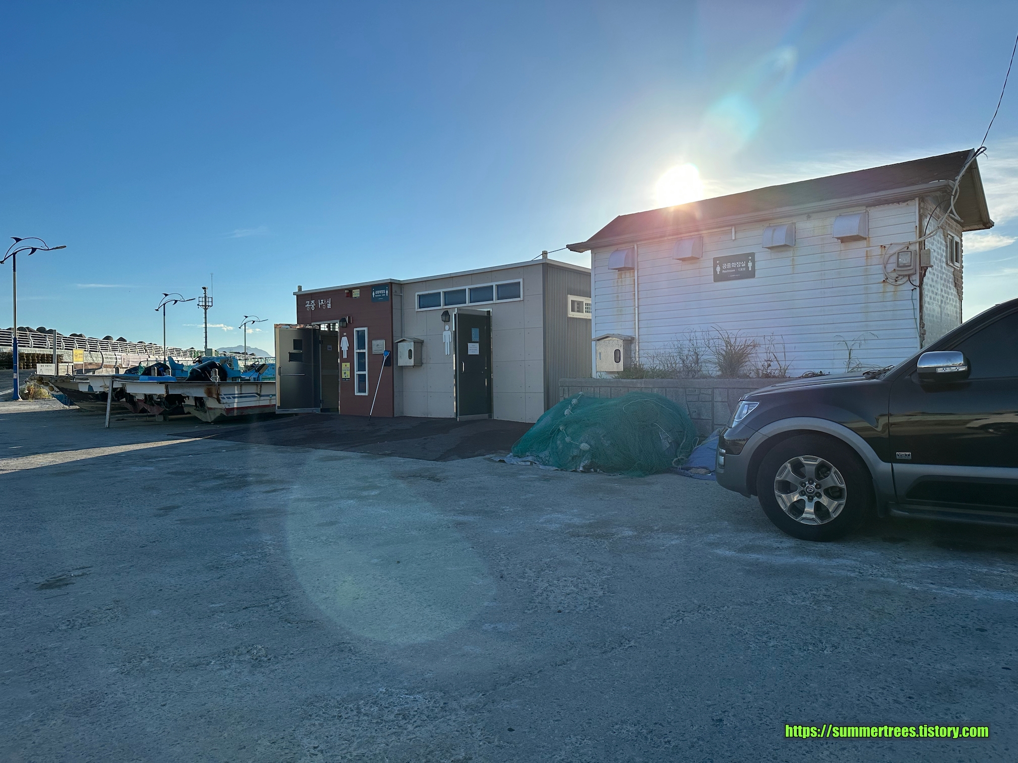 여기 오기 전 해변주차장은 마을사람들이 차지하고 평상대여를 해야만 주차를 할 수 있다고 하는데, 해변과 가까운 곳은 그럴 수 밖에 없고 해변과 조금 떨어진 곳에는 주차를 할 수 있는 몇몇 공간과 화장실이 있다. 그래서 우리는 그곳에 주차를 했다. 우리는 패들러들이므로 기본적으로 물과 펌프를 들고 다녀서 아무 데서나 즉석에서 해수욕 후 샤워를 할 수 있다. 바닷물을 씻어내는 데 그리 많은 물이 필요하지는 않다.