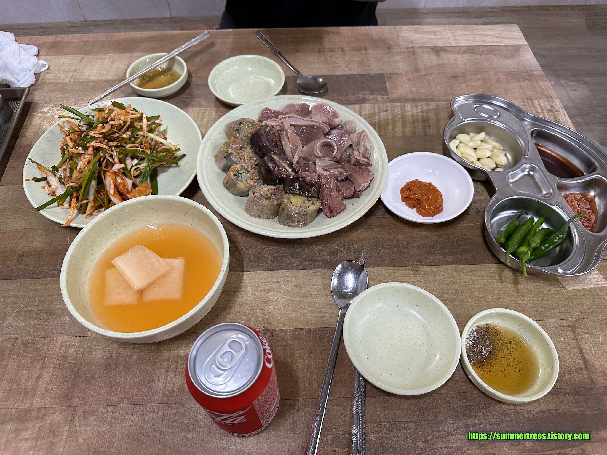 모듬순대를 시켰는데 나온 음식을 본 순간 술안주라고 생각했다. 국밥을 시킬 걸 잘못 시켰나하는 생각이 들었다. 그래서 국밥을 추가할 수 밖에 없었다.