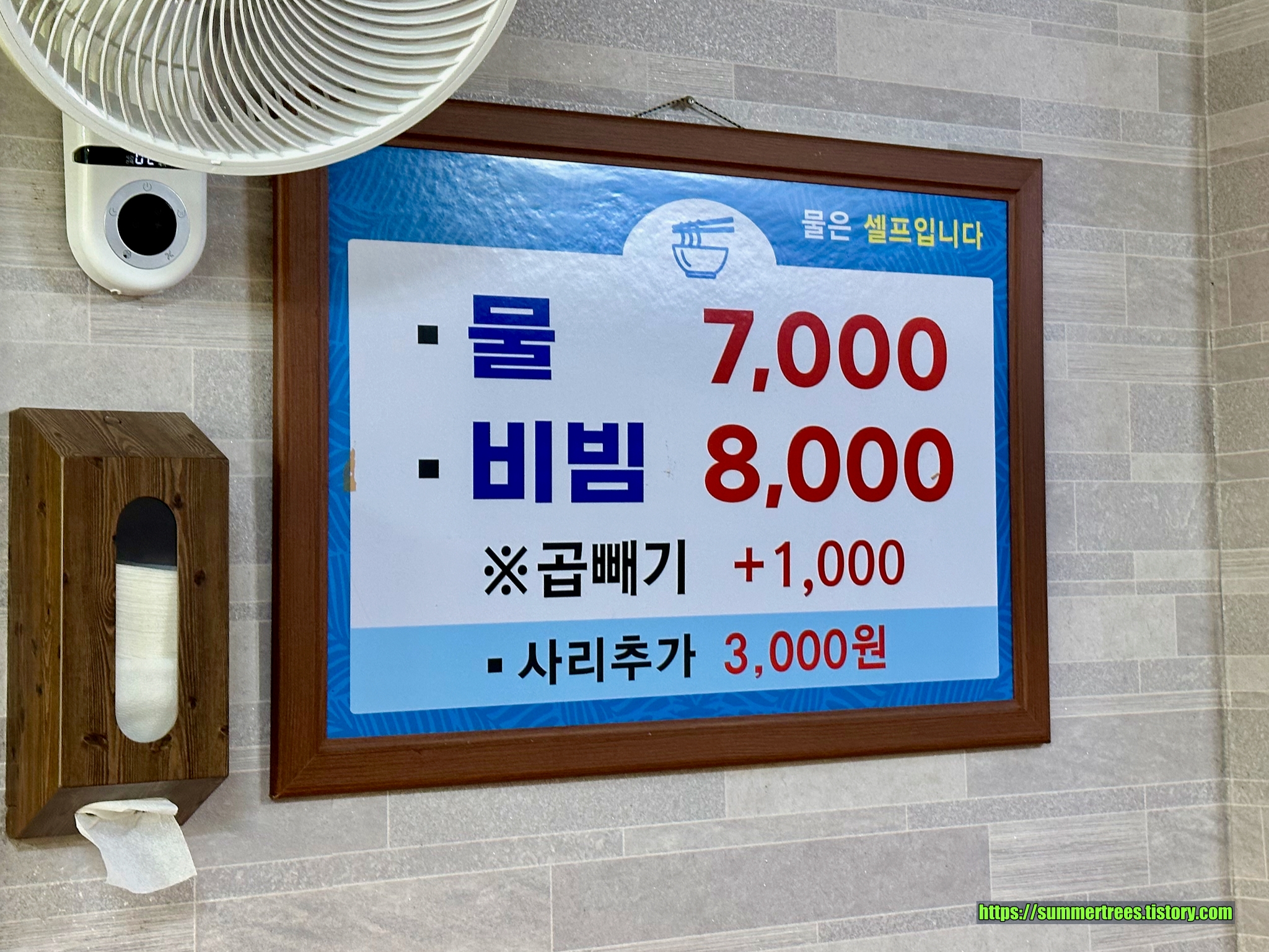 물과 비빔 두 가지를 모두 주문해서 먹어봤는데, 역시 밀면은 물이다.