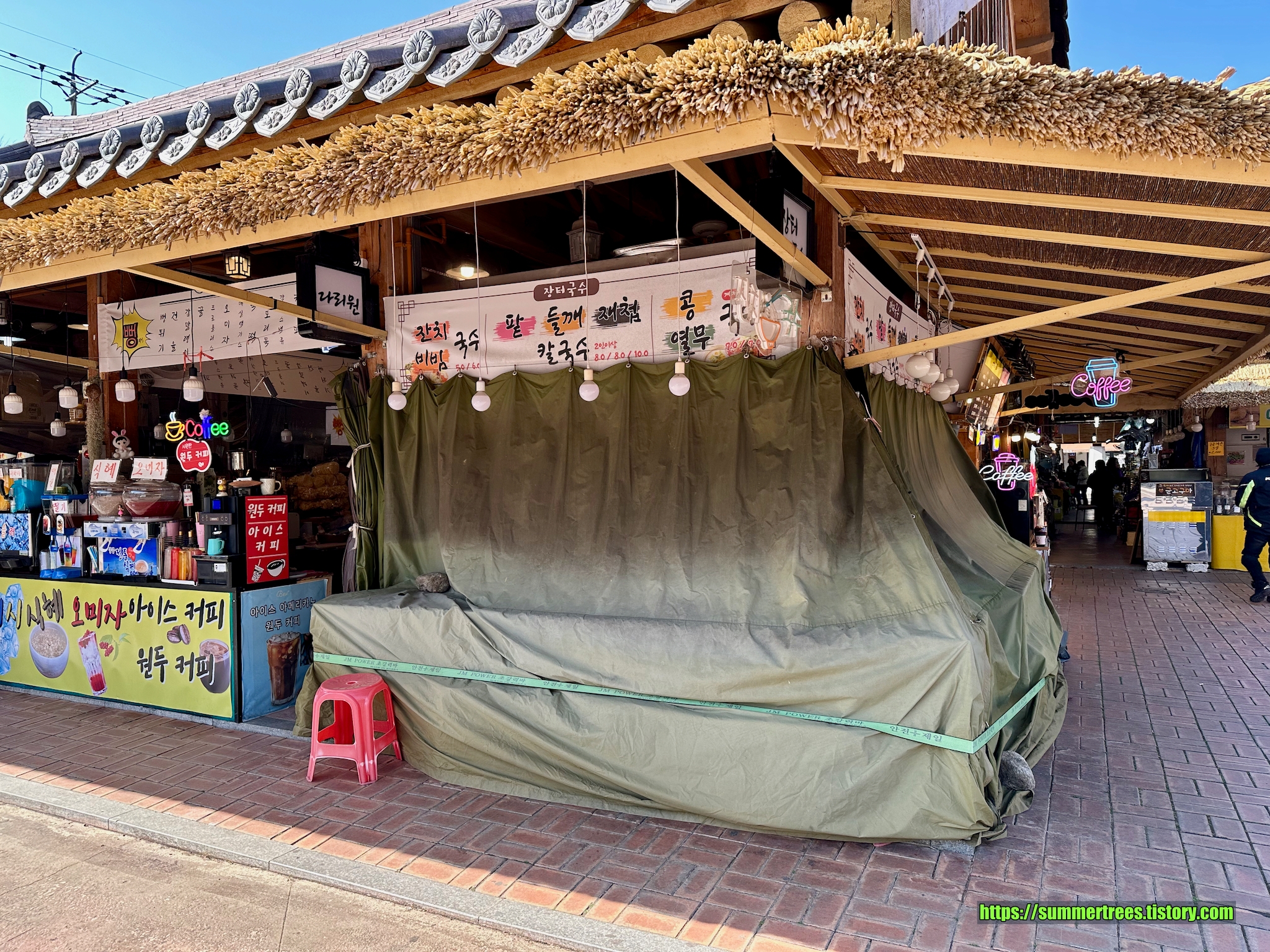 조샌집에서 어탕국수와 함께 소주 두 병을 다 못 마심.