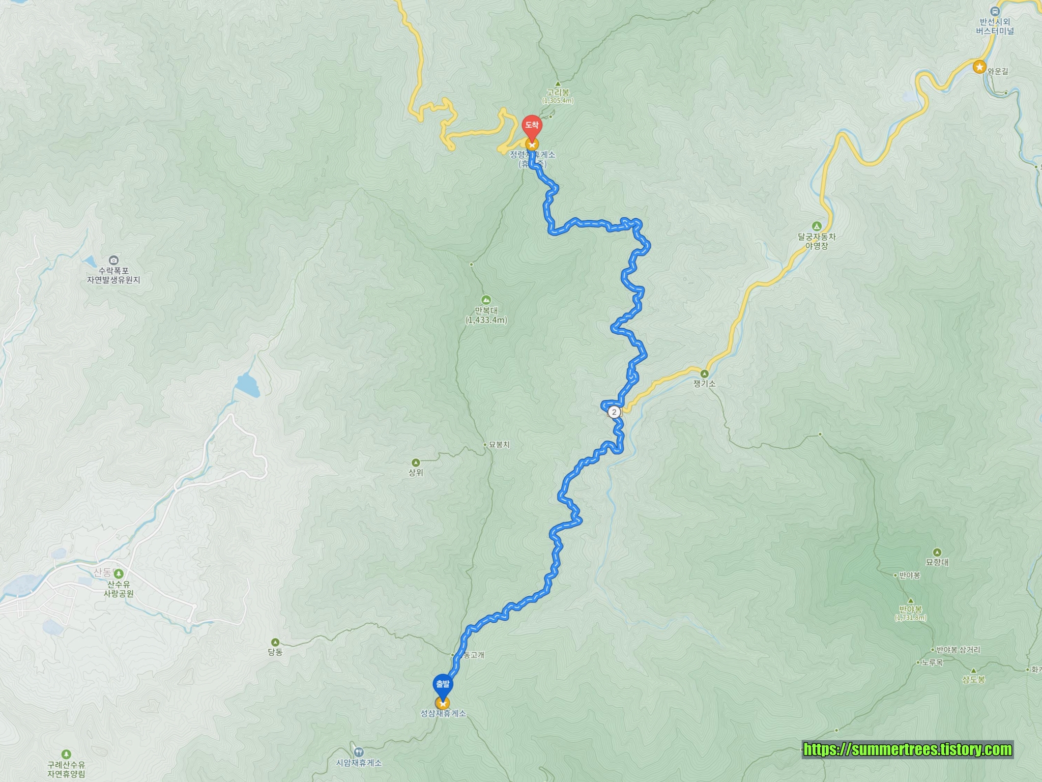 천은사삼거리에서 고기삼거리까지 28.1 km의 코스. 시암재 코스의 첫번째 포인트. 산 아래 마을과 건너편 산들을 조망할 수 있다. 성삼재 성삼재에서 노고단을 직접 올려다 볼 수 있고 지리산을